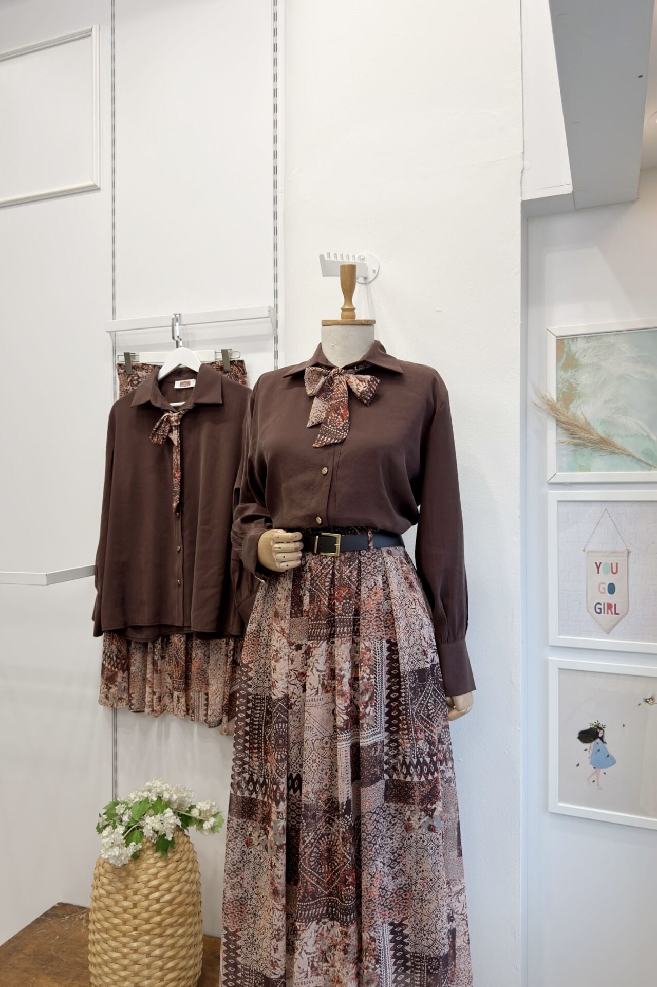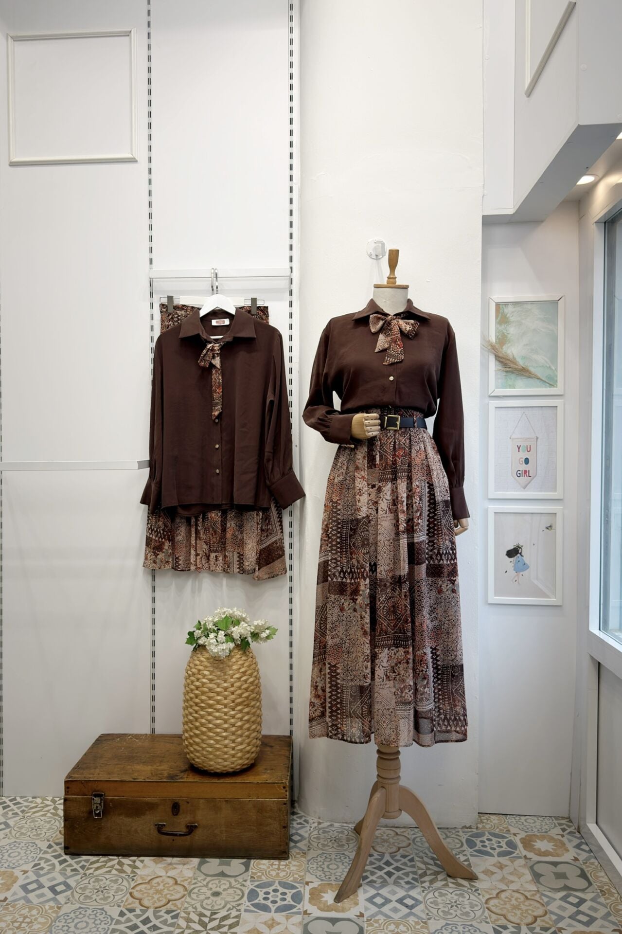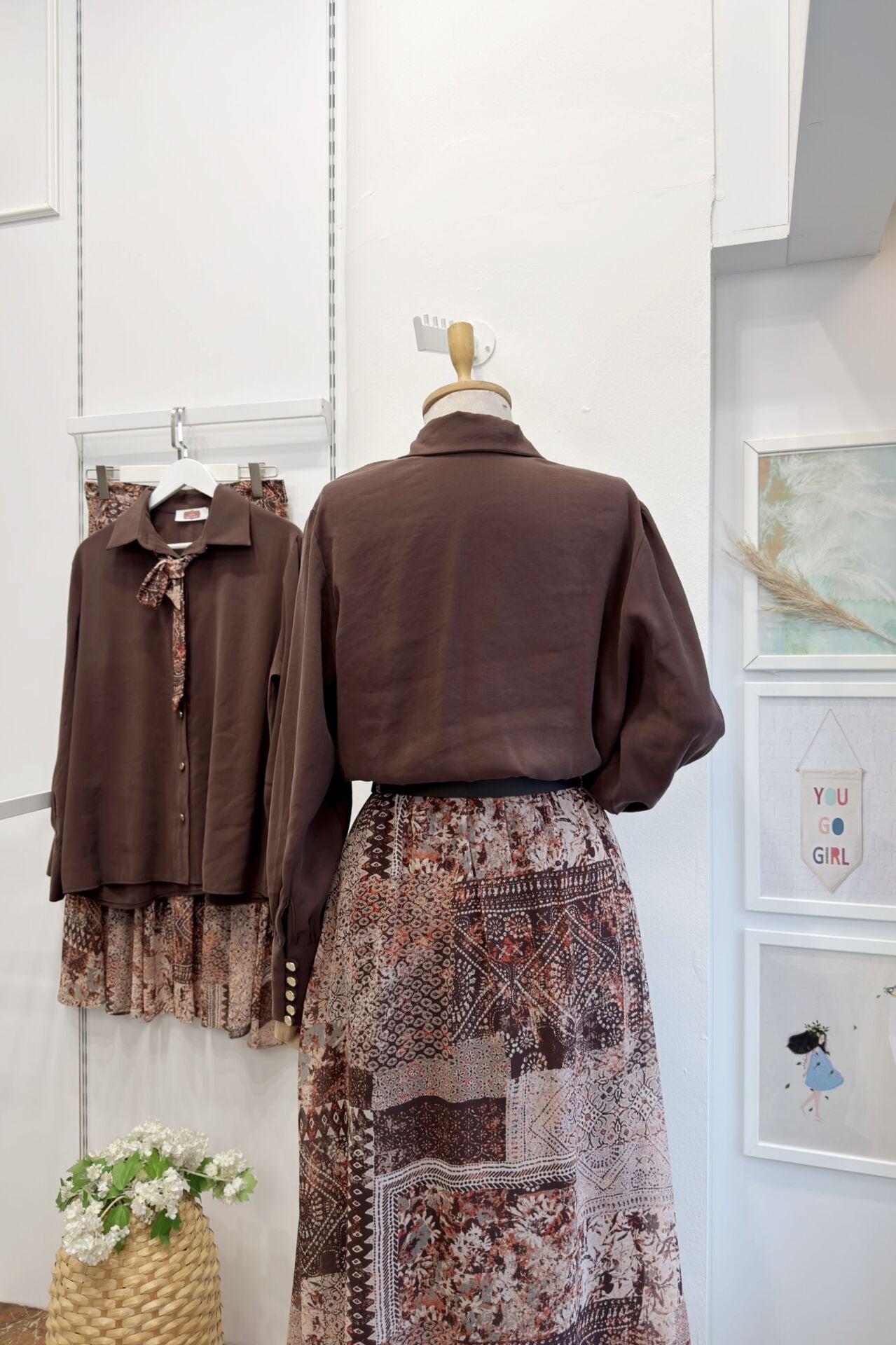 Kahverengi Desenli Şifon Etekli Chermine Takım