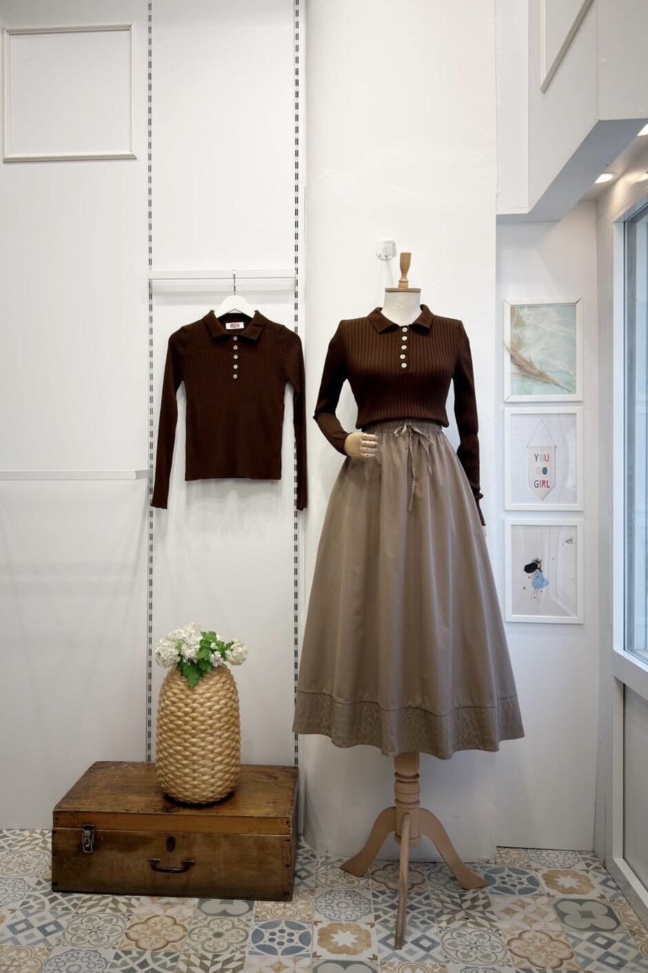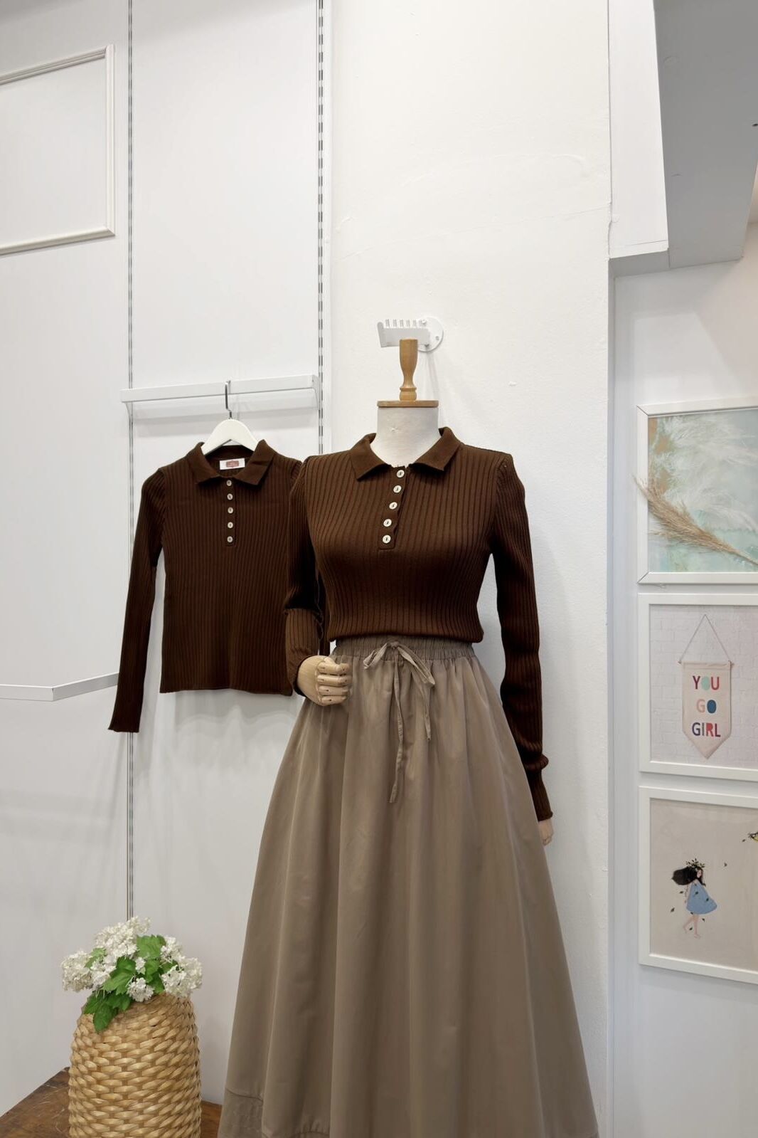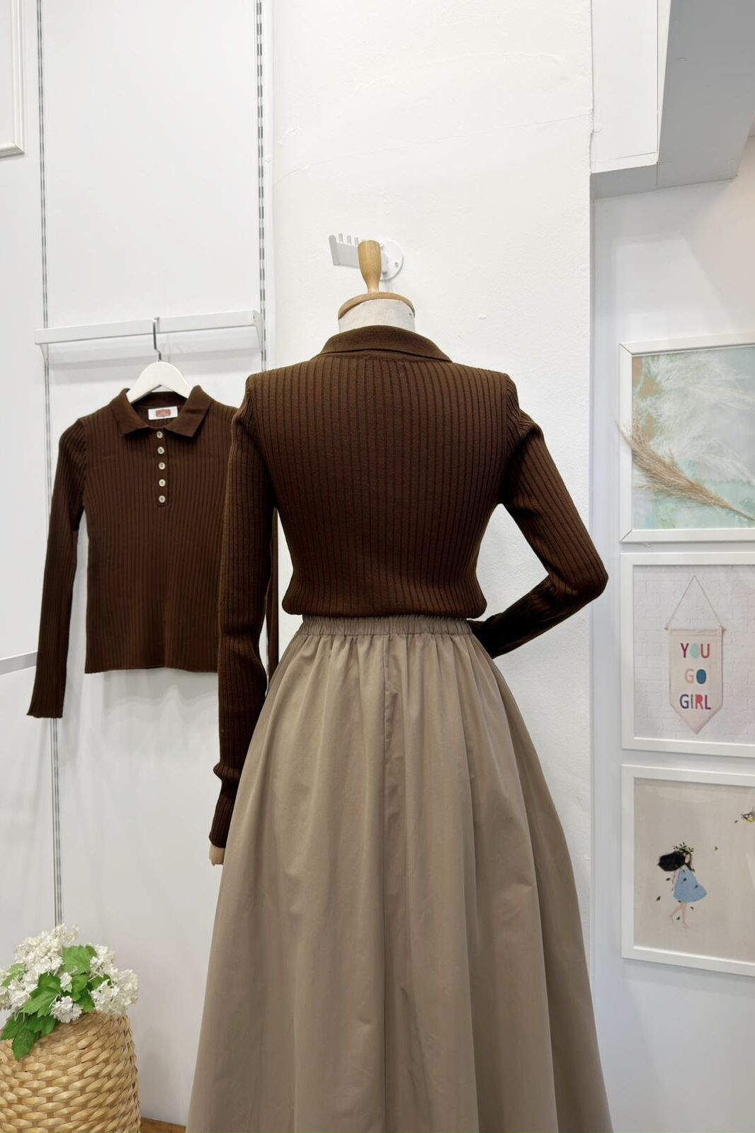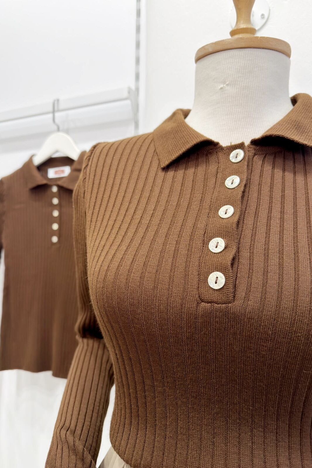 Kahverengi Düğme Detaylı Isabelle Triko Bluz