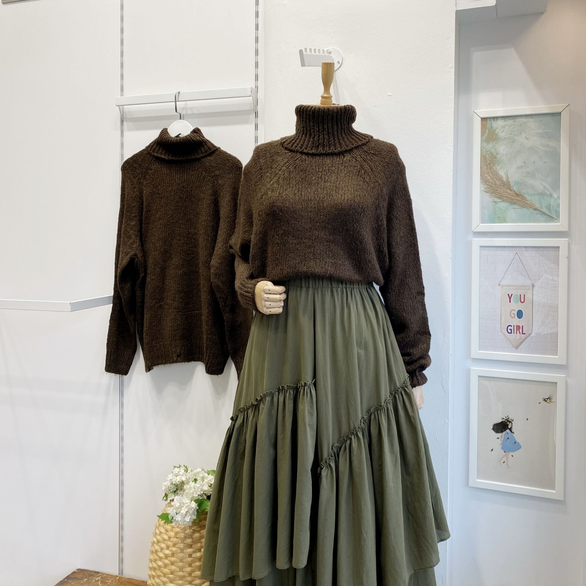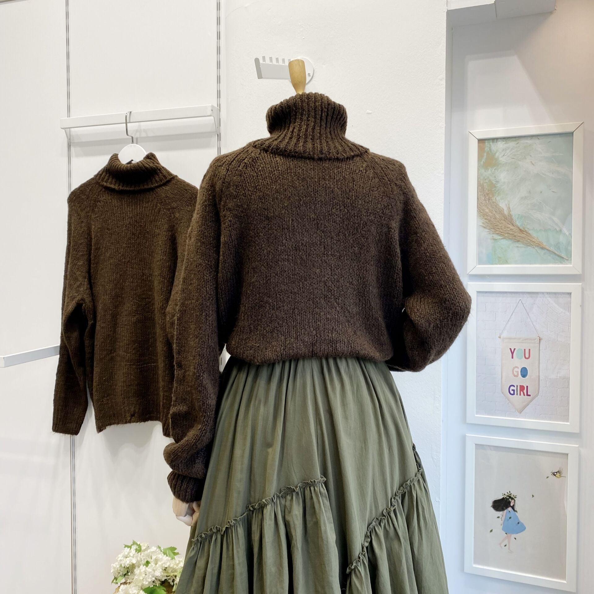 Kahverengi Dusty Balıkçı Yaka Kazak