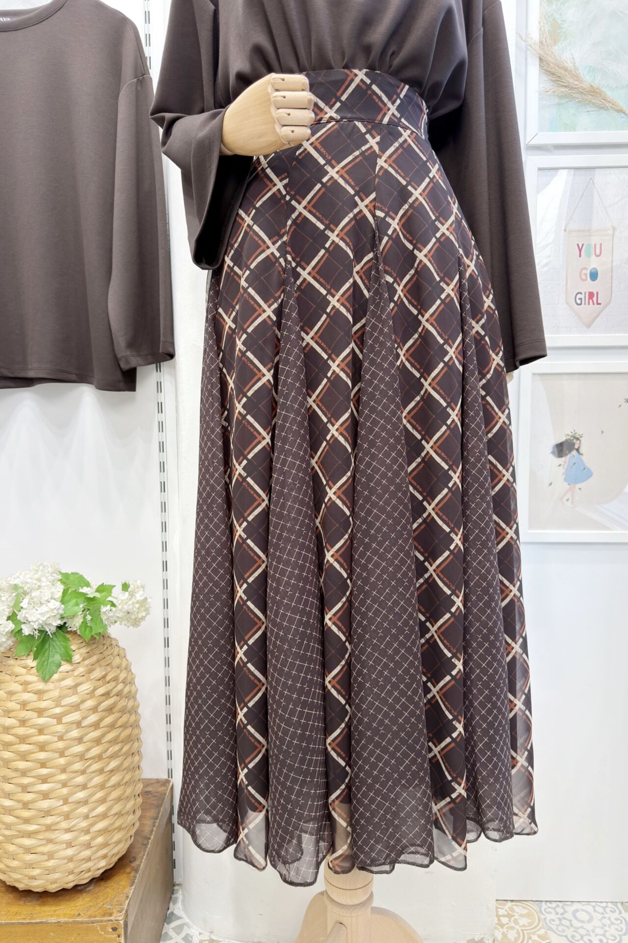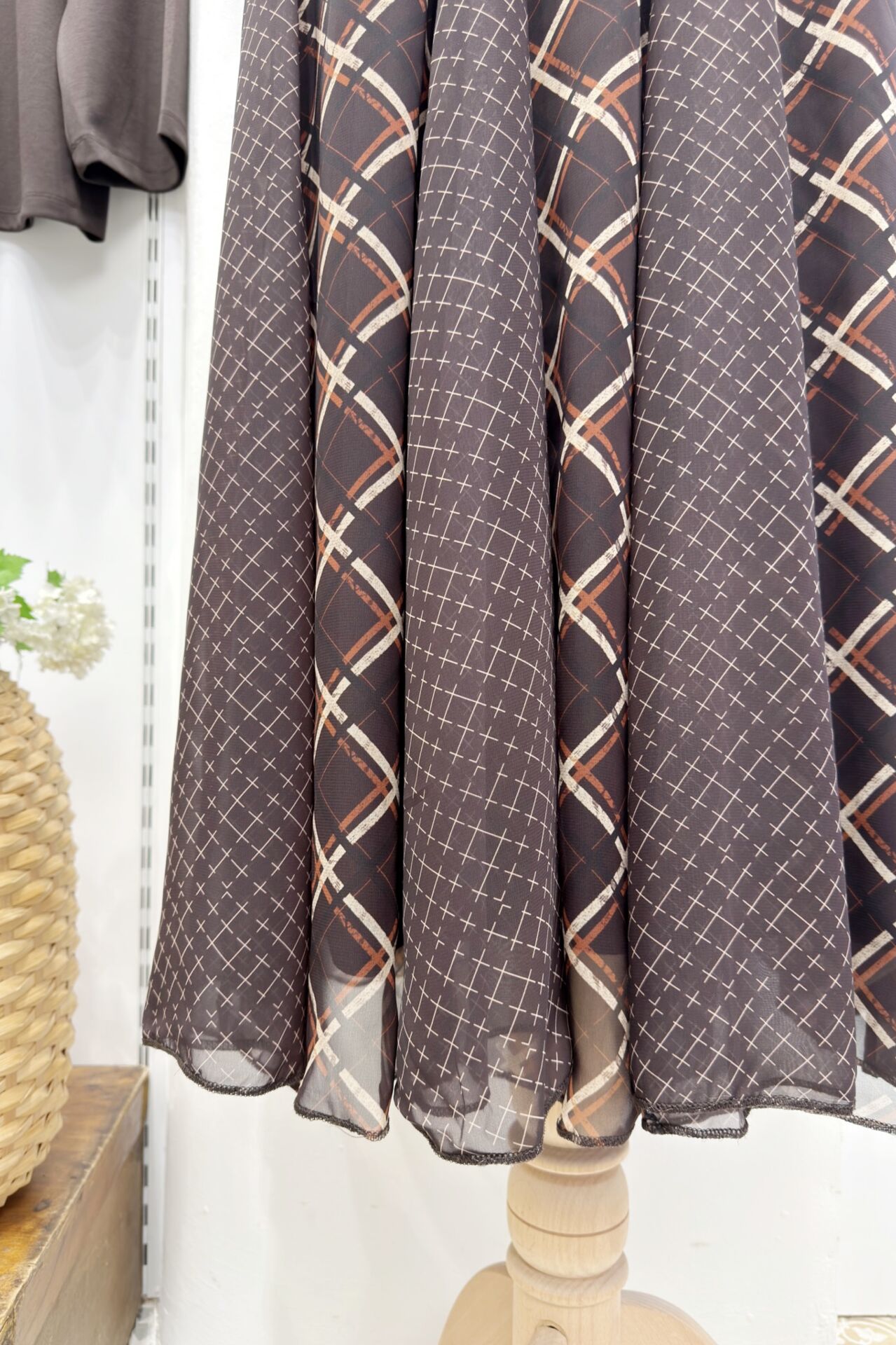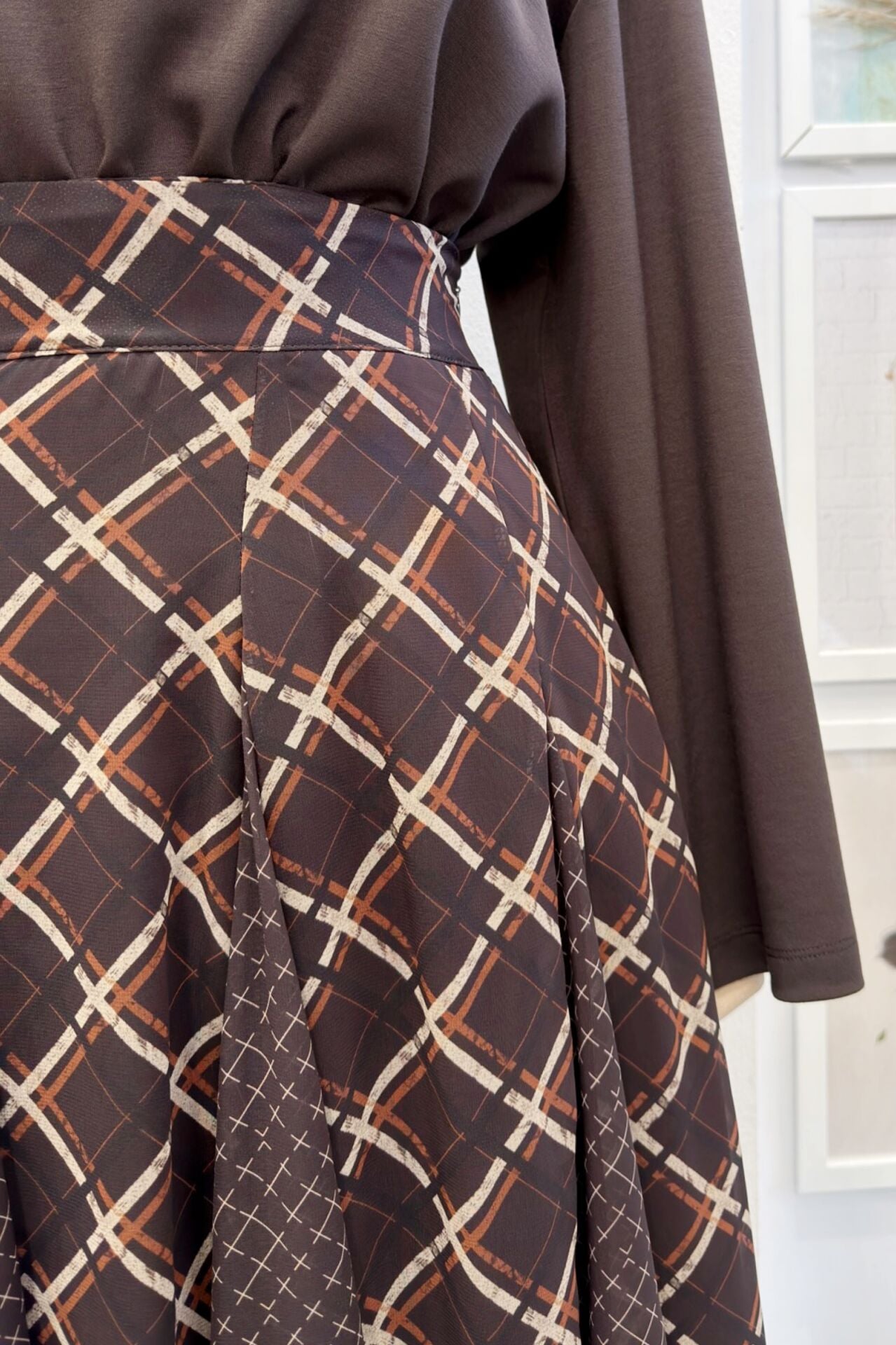 Kahverengi Ekose Desenli Formel Şifon Etek