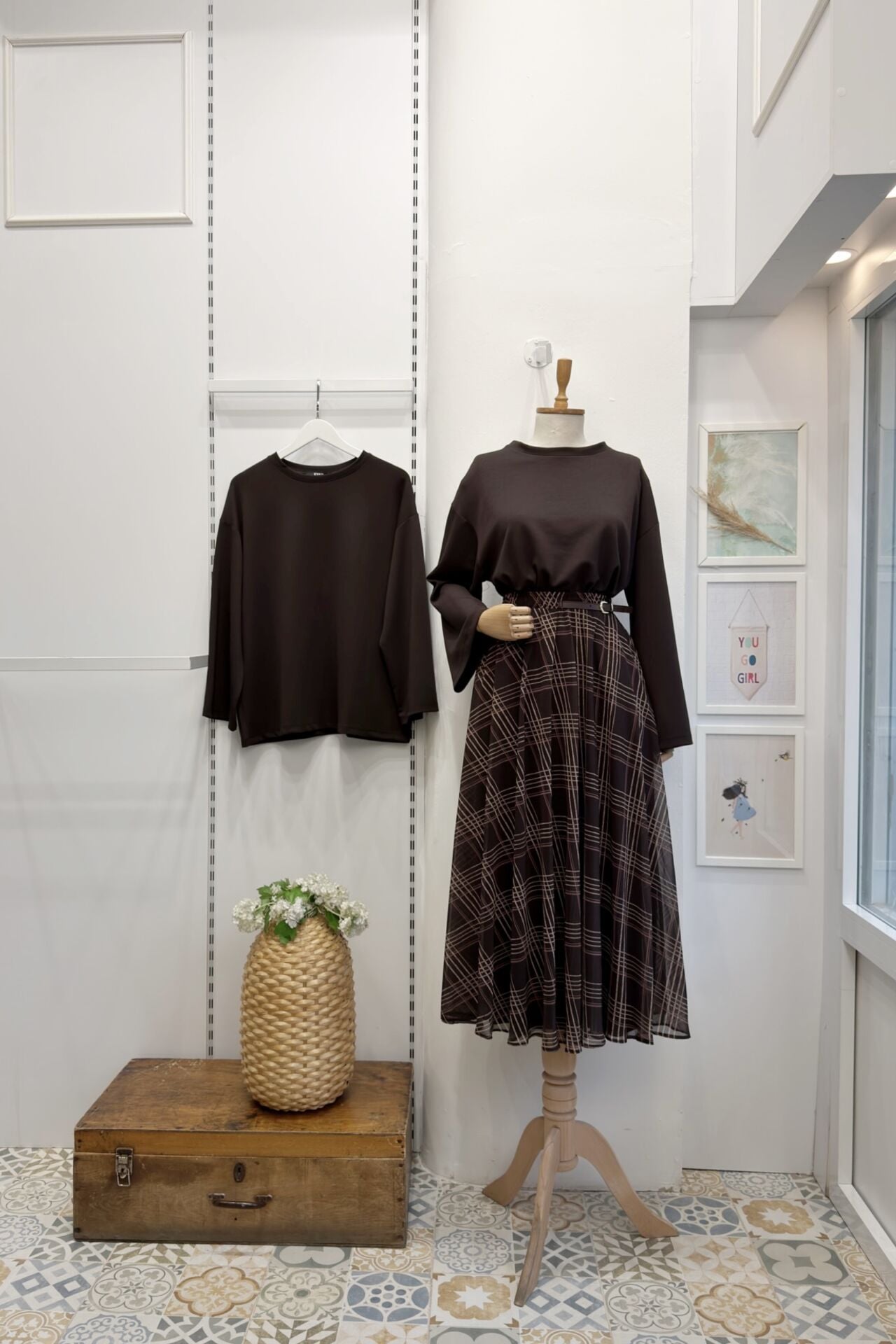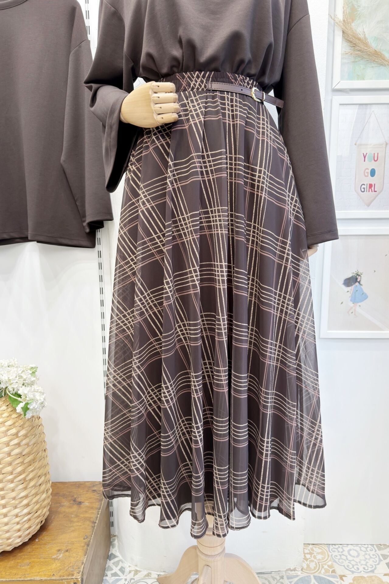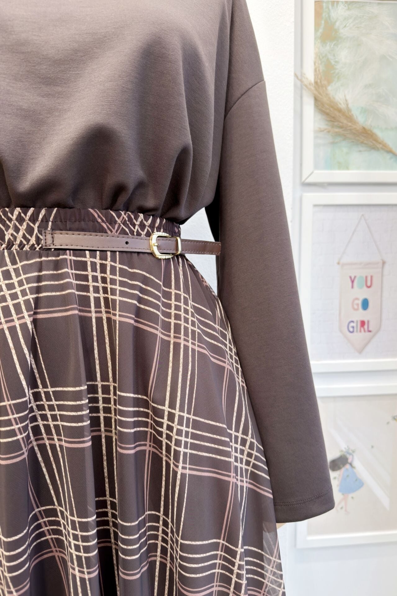 Kahverengi Ekose Desenli Zirel Şifon Etek