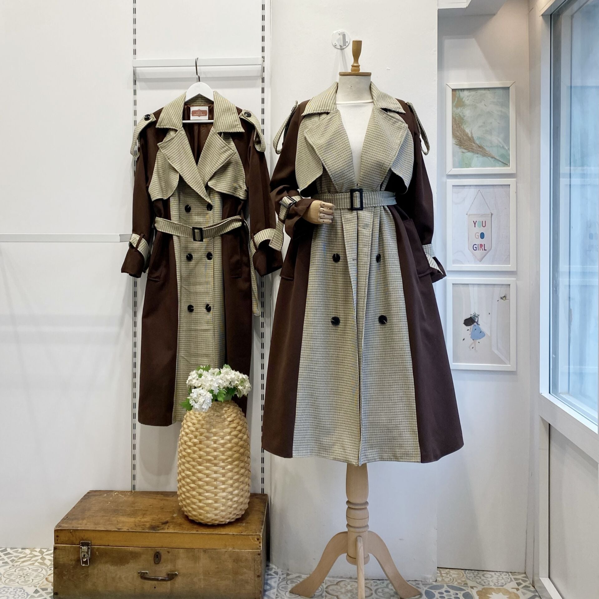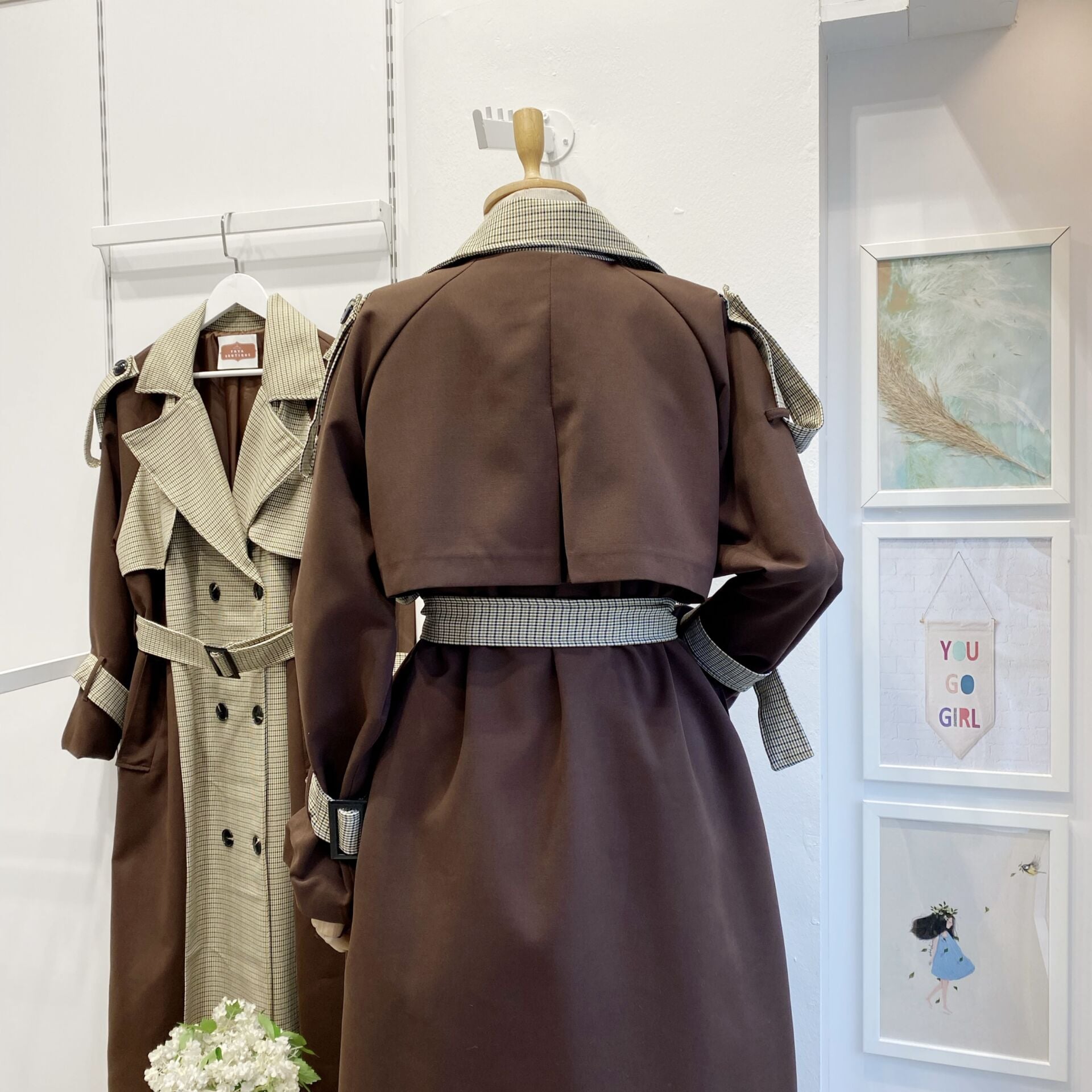 Kahverengi Ekose Detaylı Gabardin Kumaş Trençkot