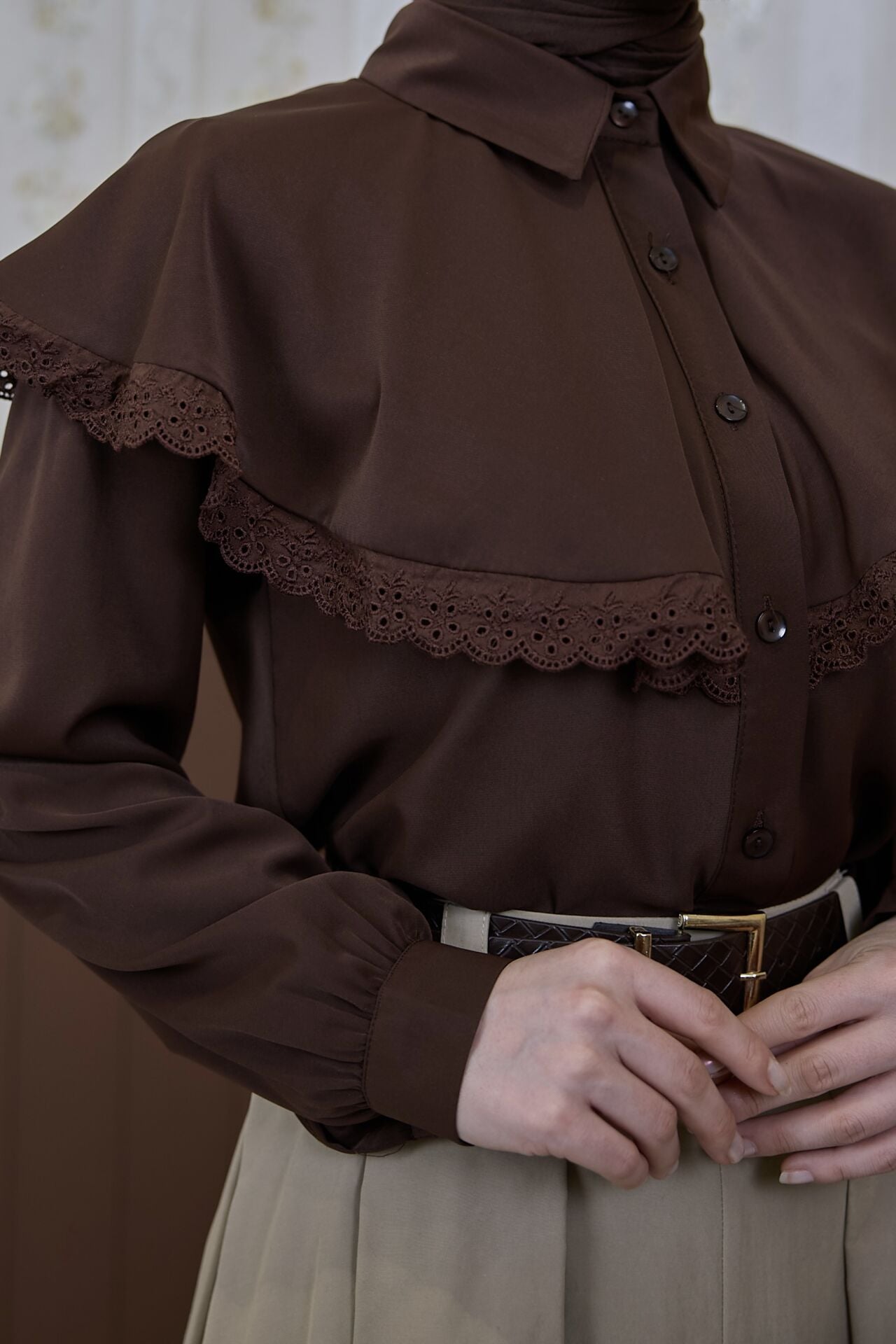 Kahverengi Fisto Şeritli Pelerin Detaylı Gömlek