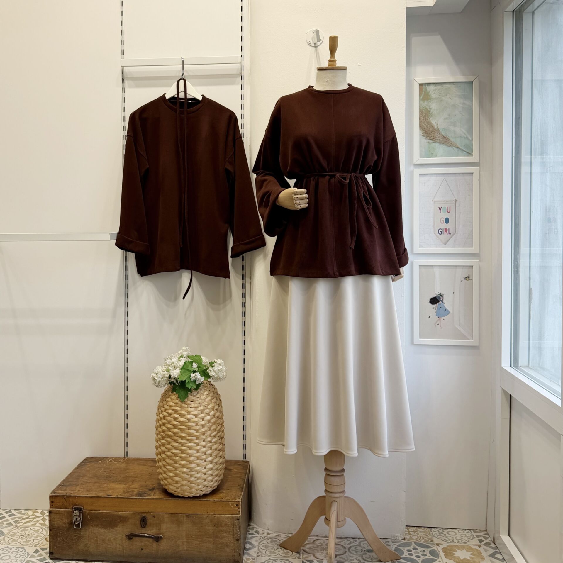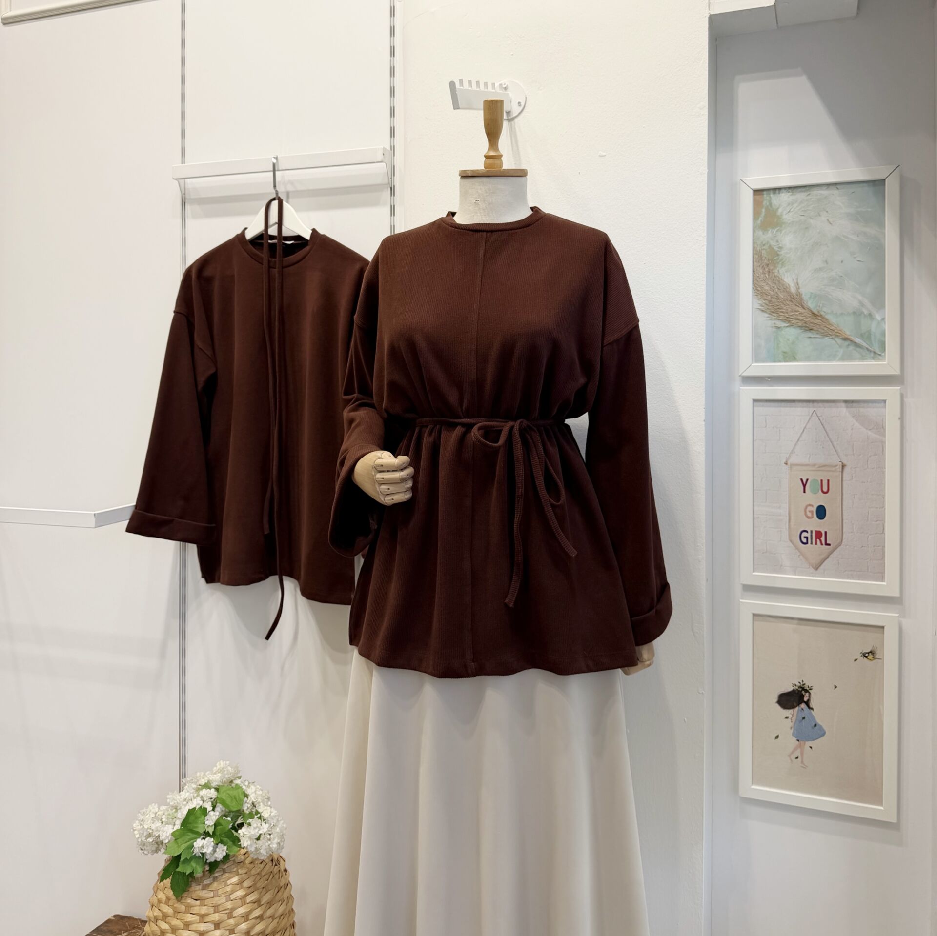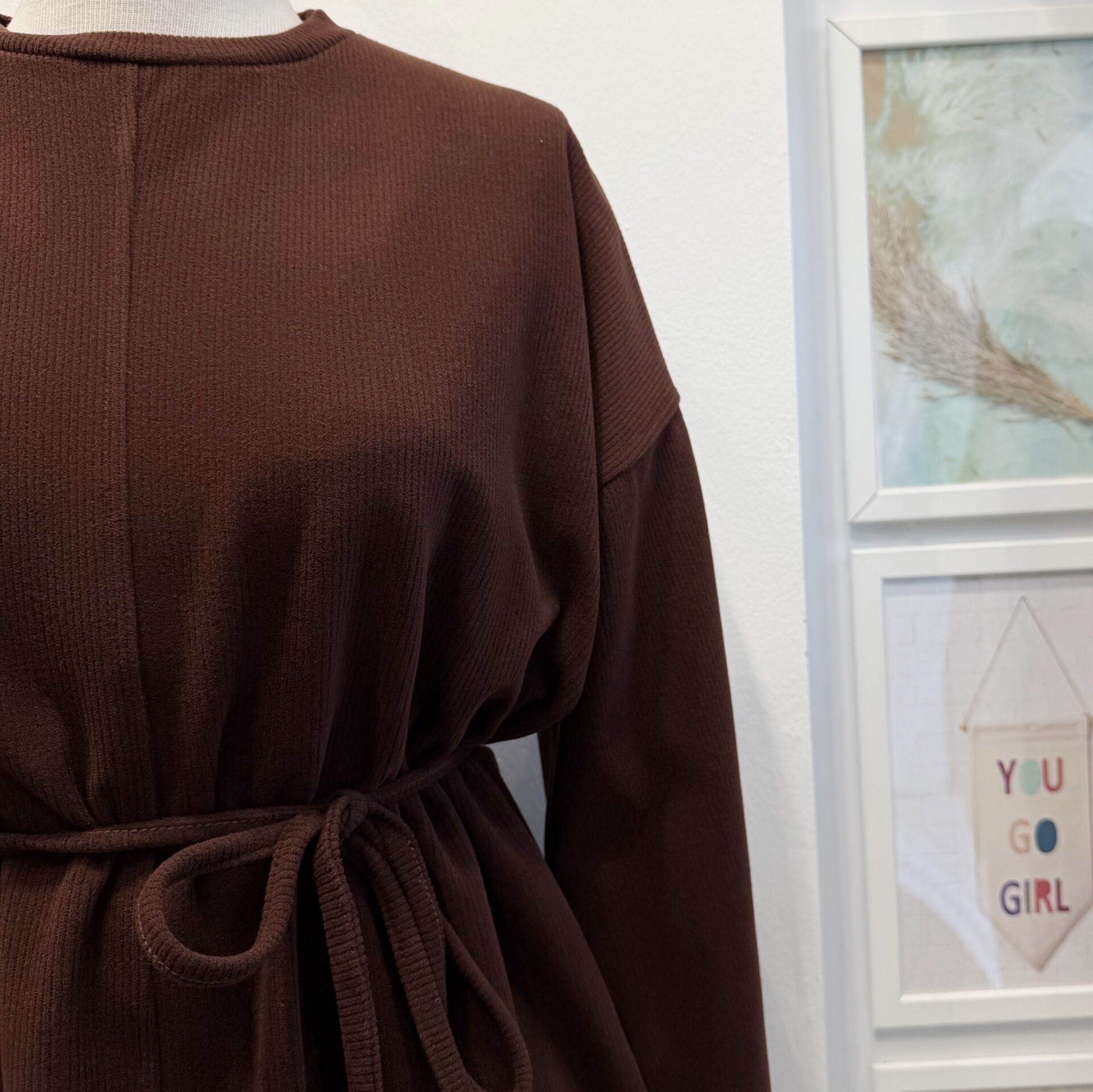 Kahverengi Fitilli Kadife Tunik