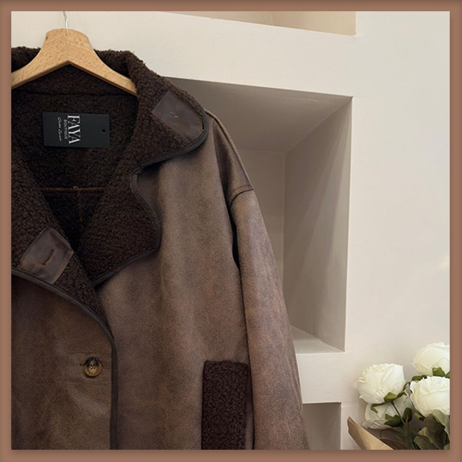 Kahverengi içi yün süet mont