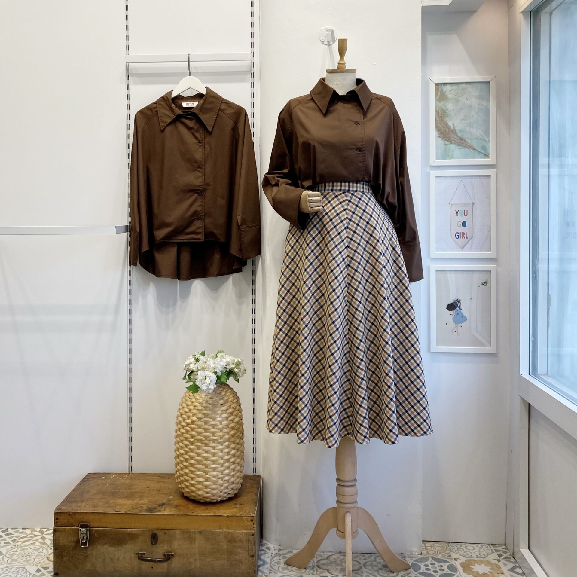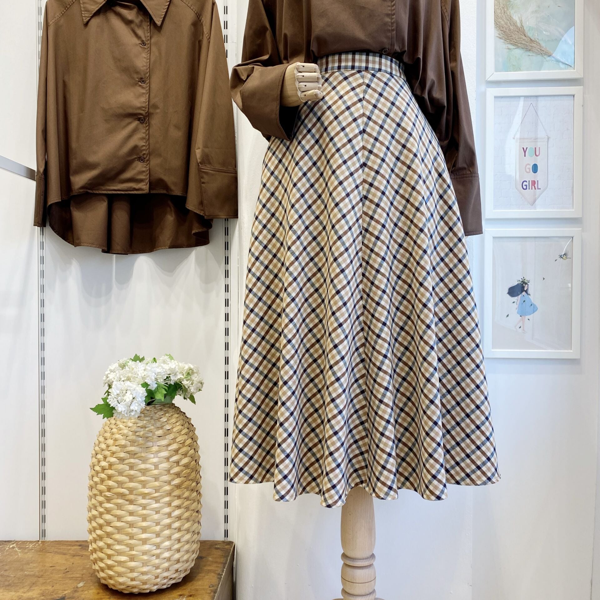 Kahverengi Jesen Kloş Model Ekoseli Etek