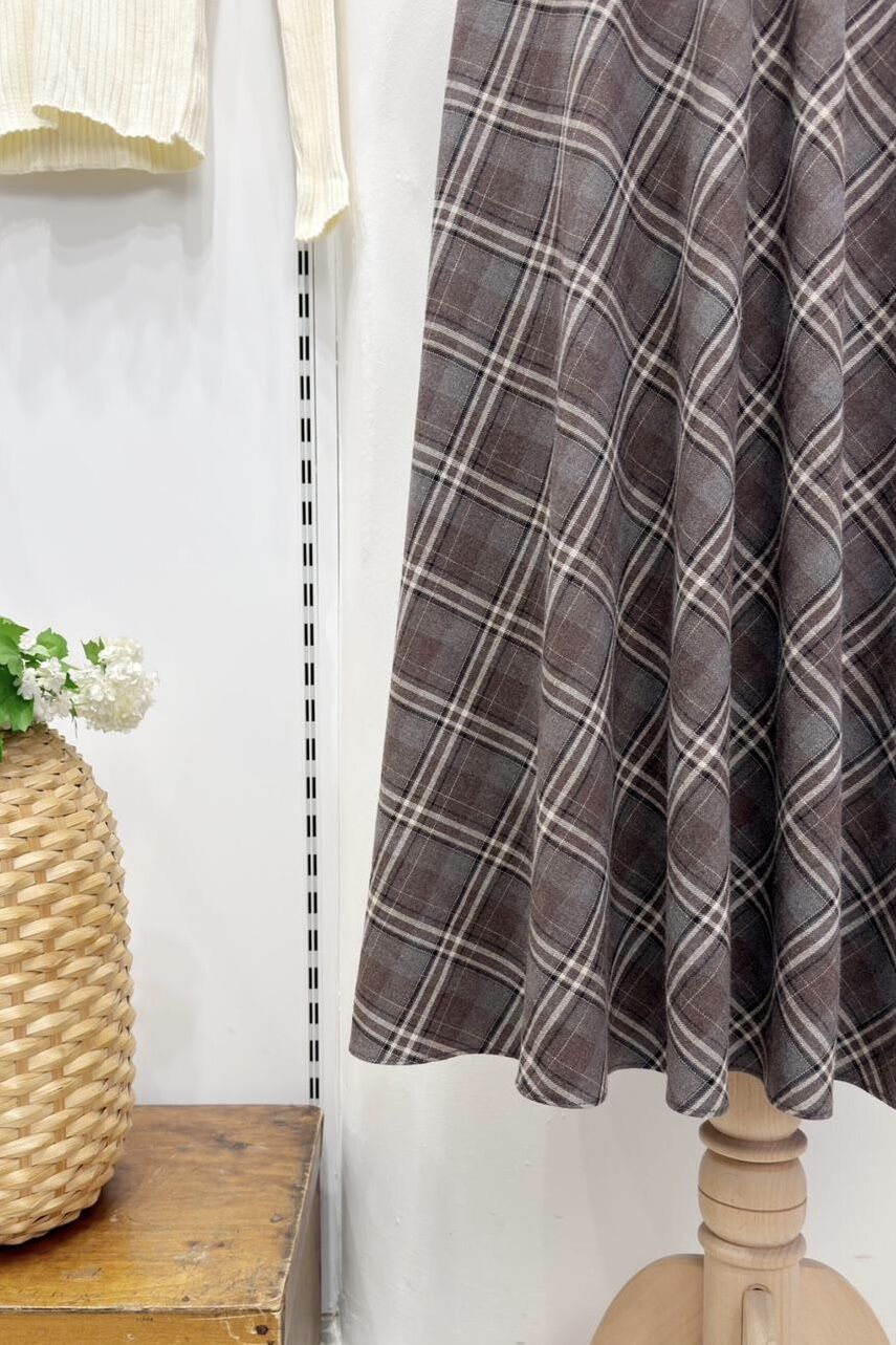 Kahverengi Kemer Detaylı Ekoseli Petalle Etek