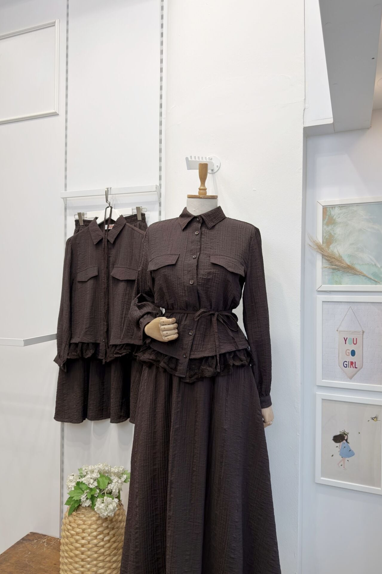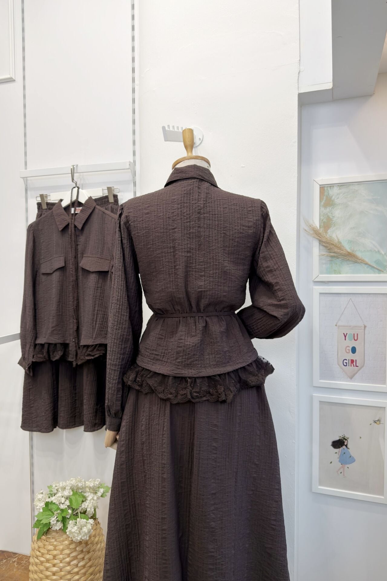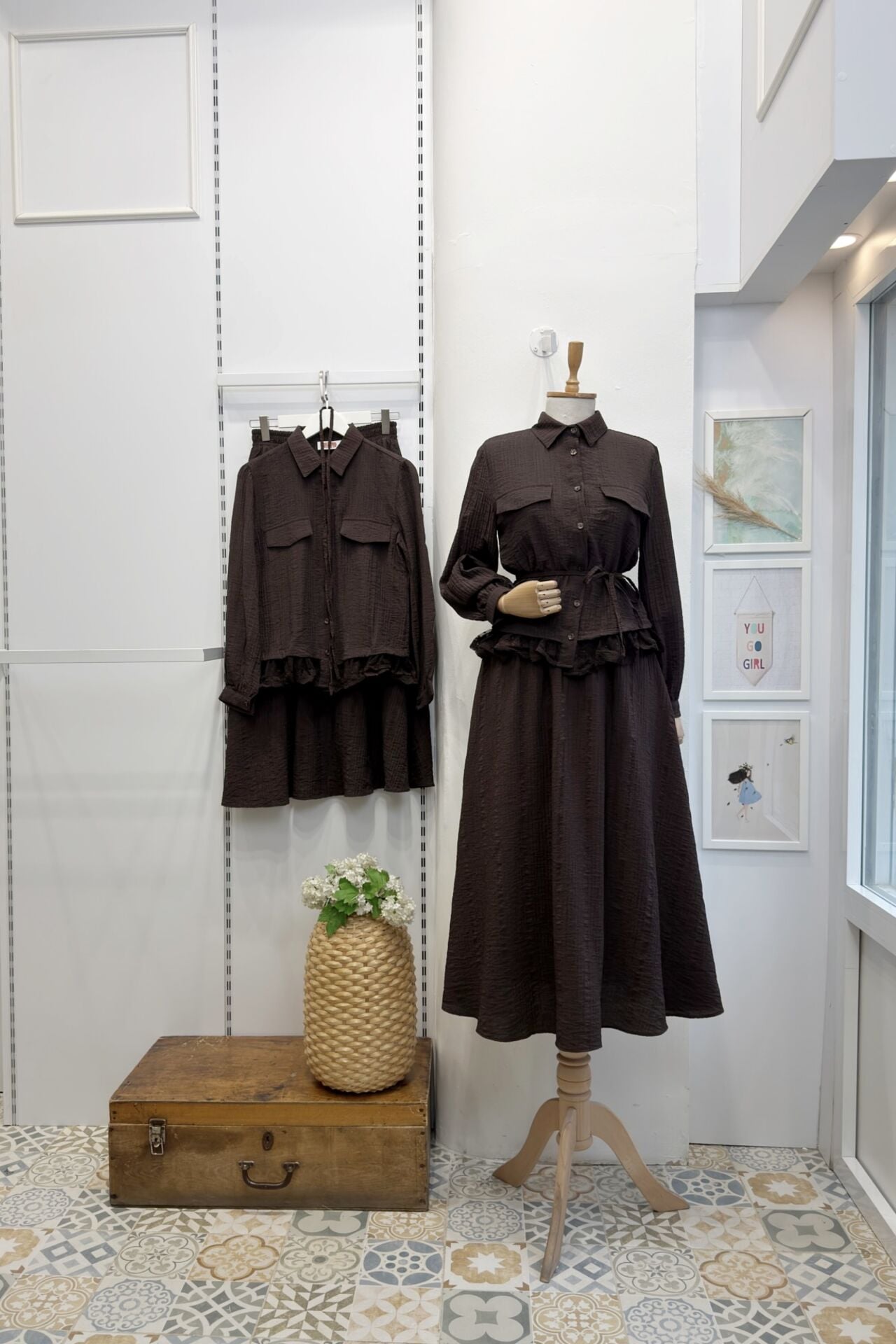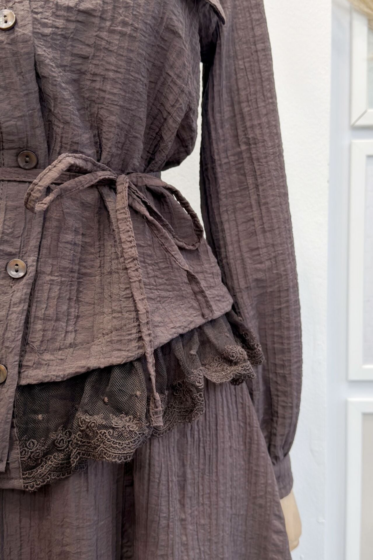 Kahverengi Kırinkıl Kumaş Dantel Detaylı Takım