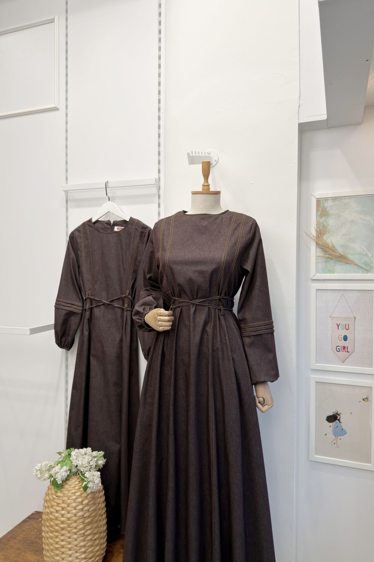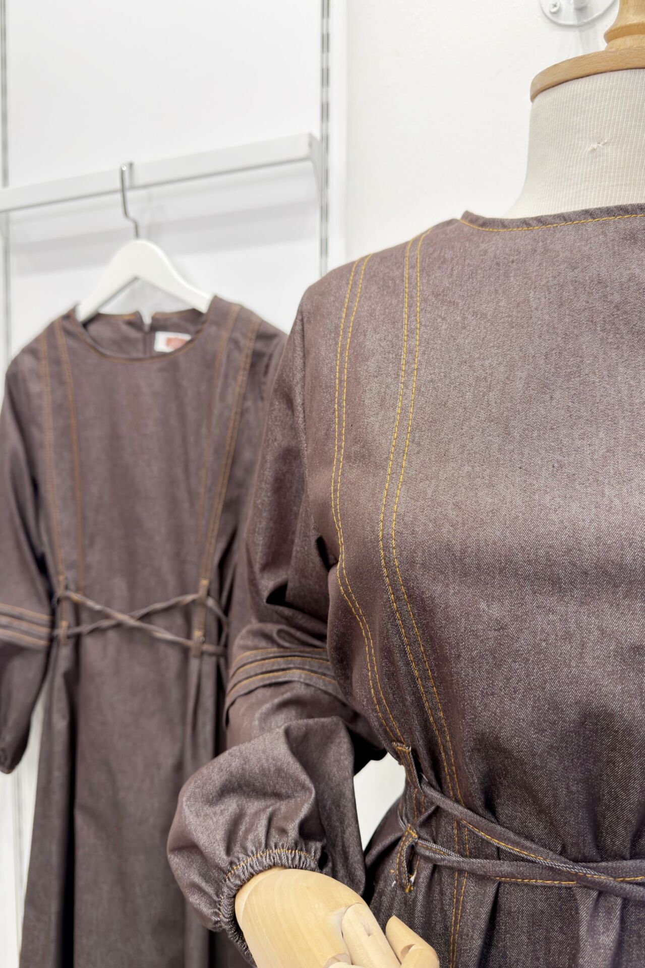 Kahverengi Kot Kumaş Alize Elbise