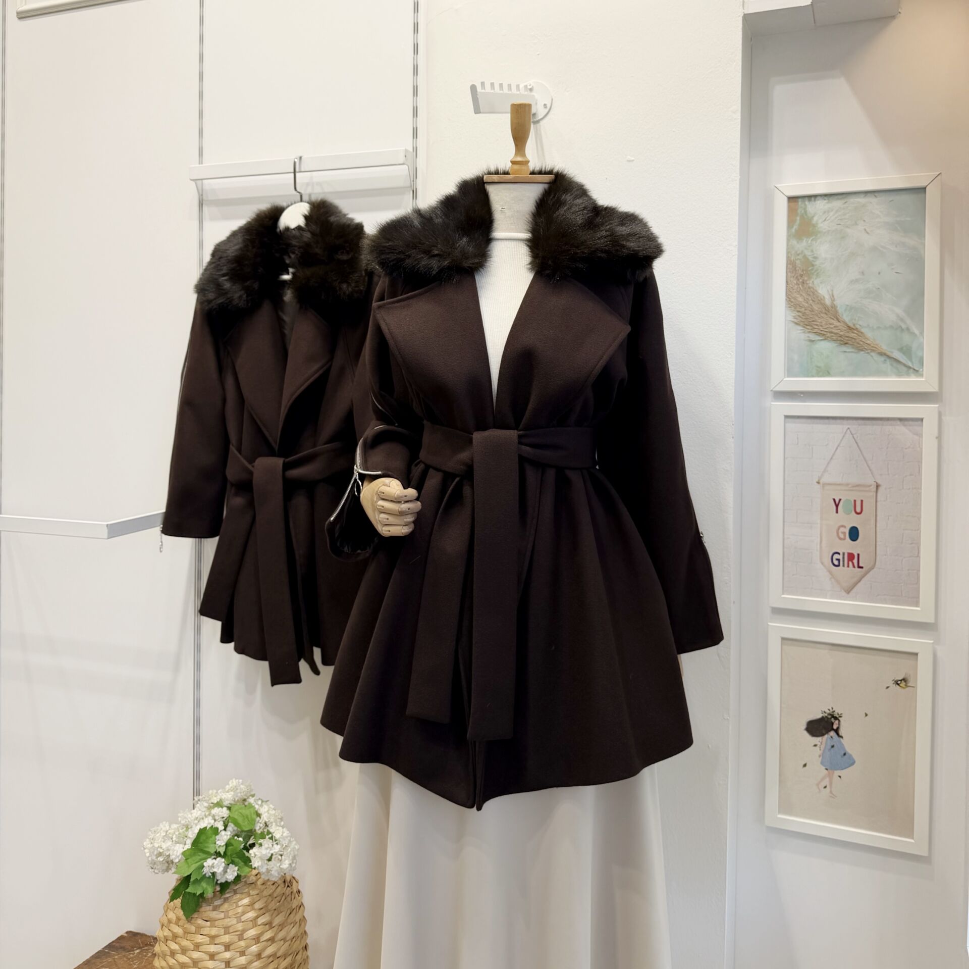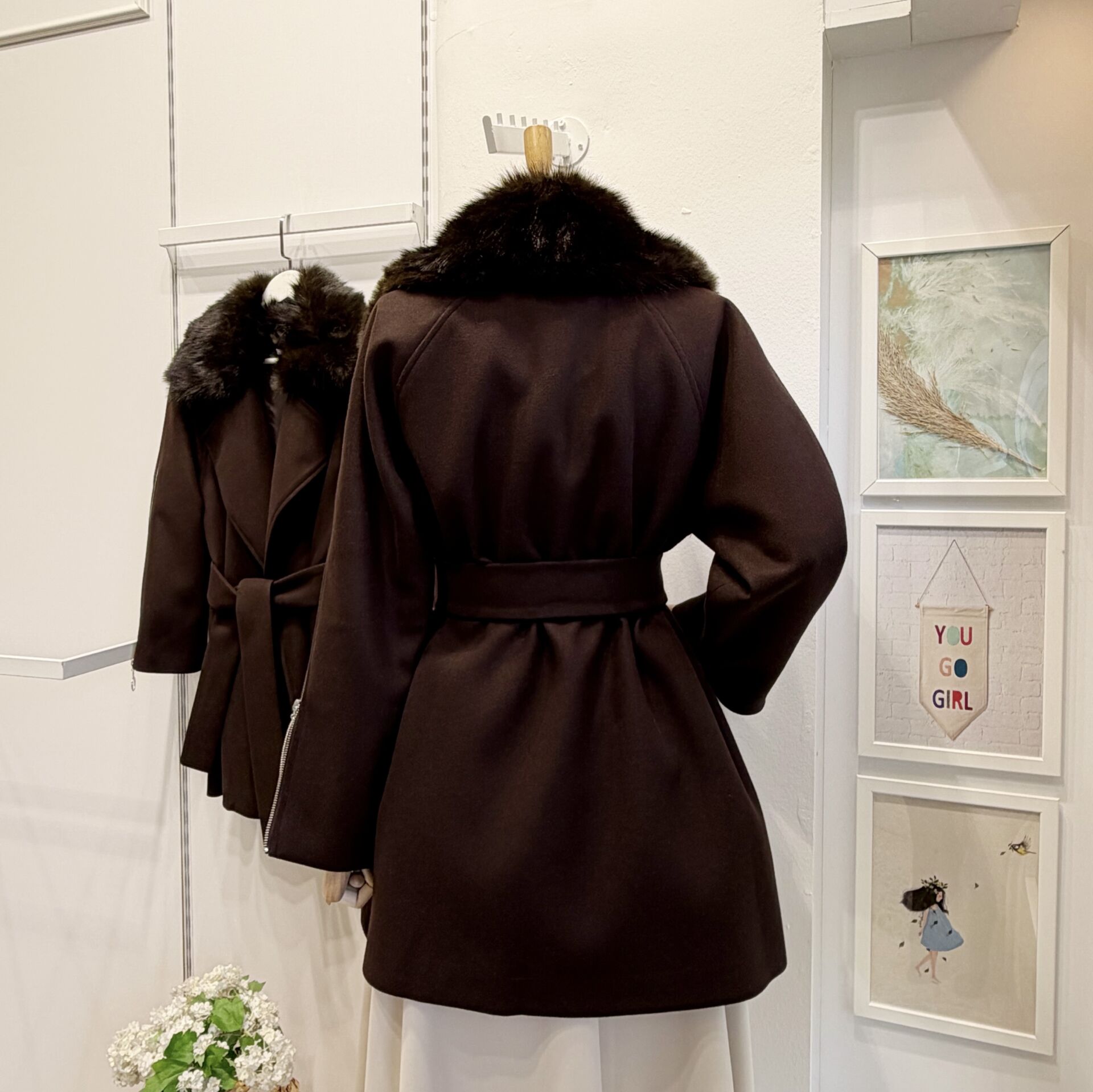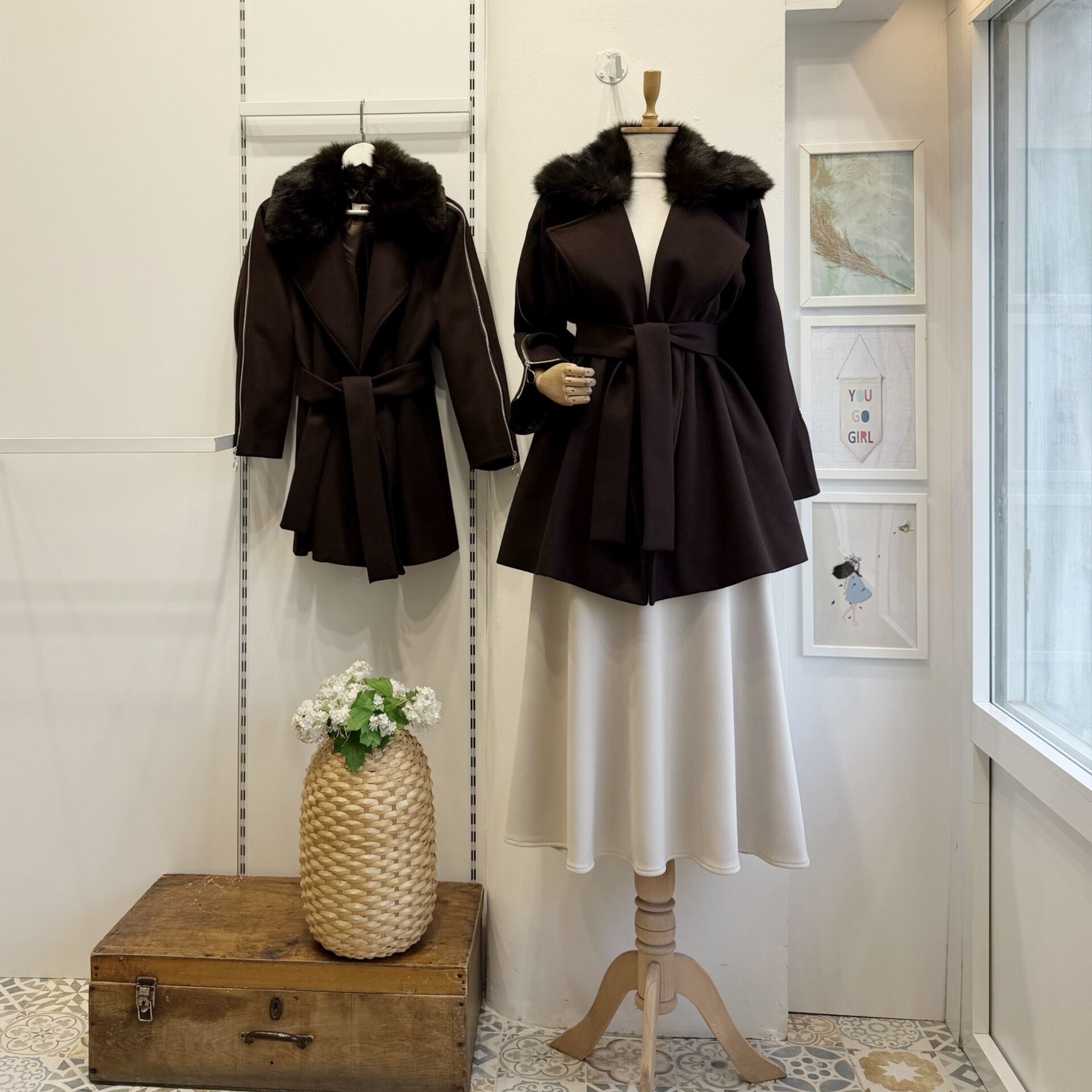 Kahverengi Kürk Yakalı Kaşe Kaban