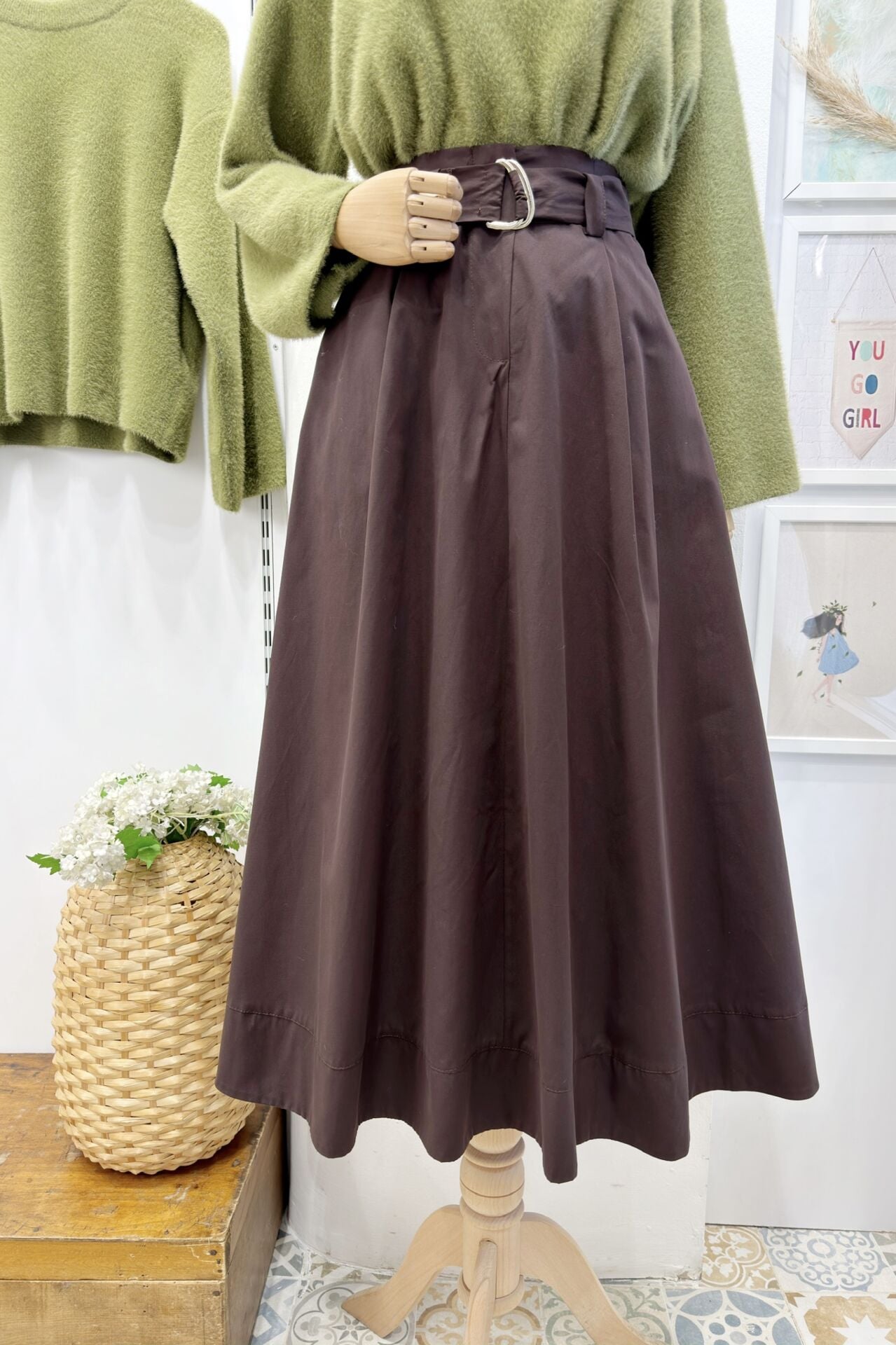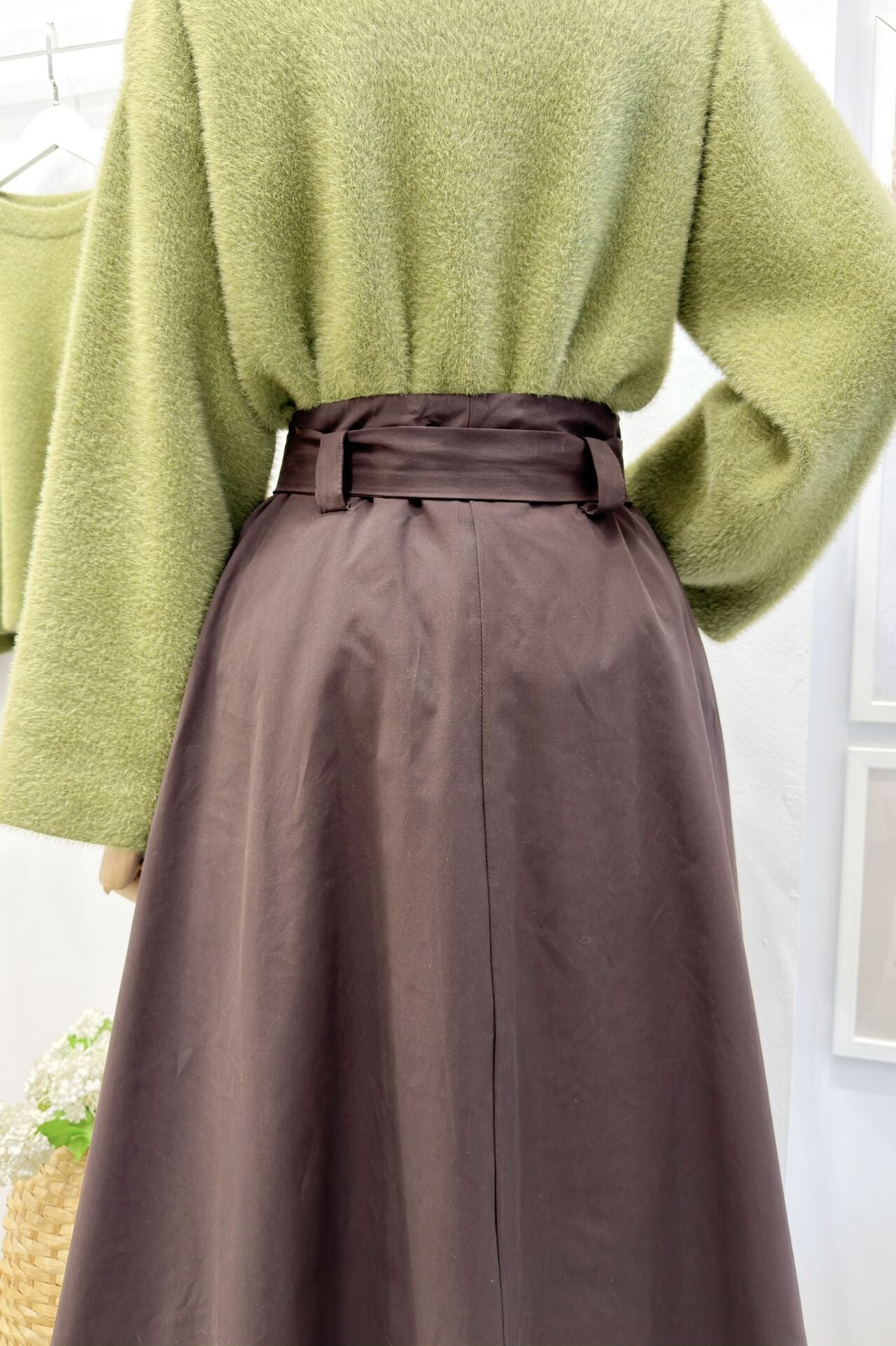 Kahverengi Kuşak Detaylı Terra Poplin Etek