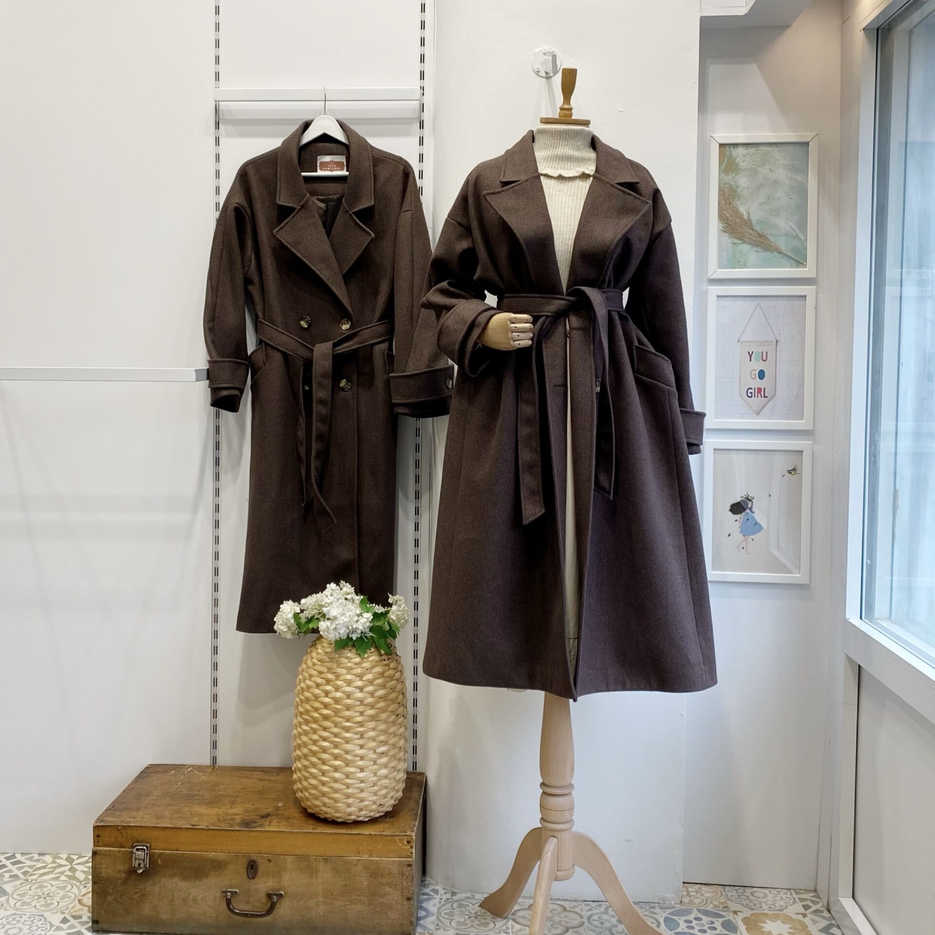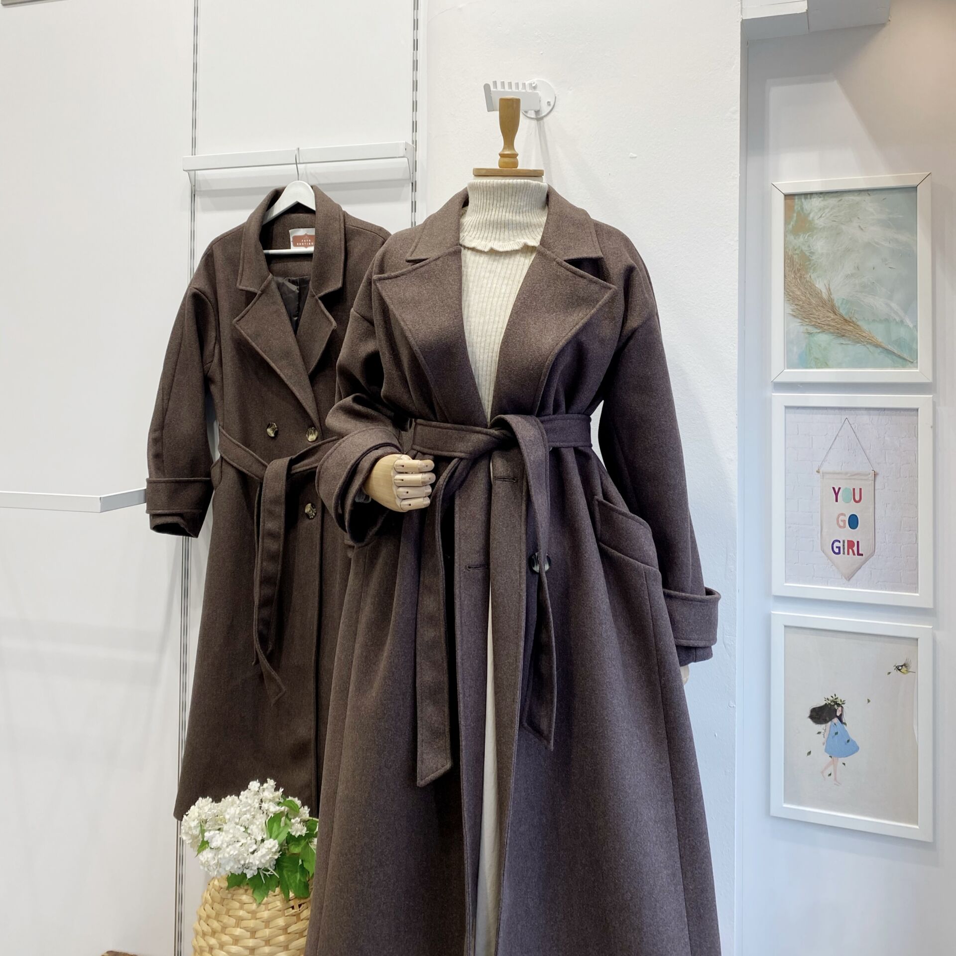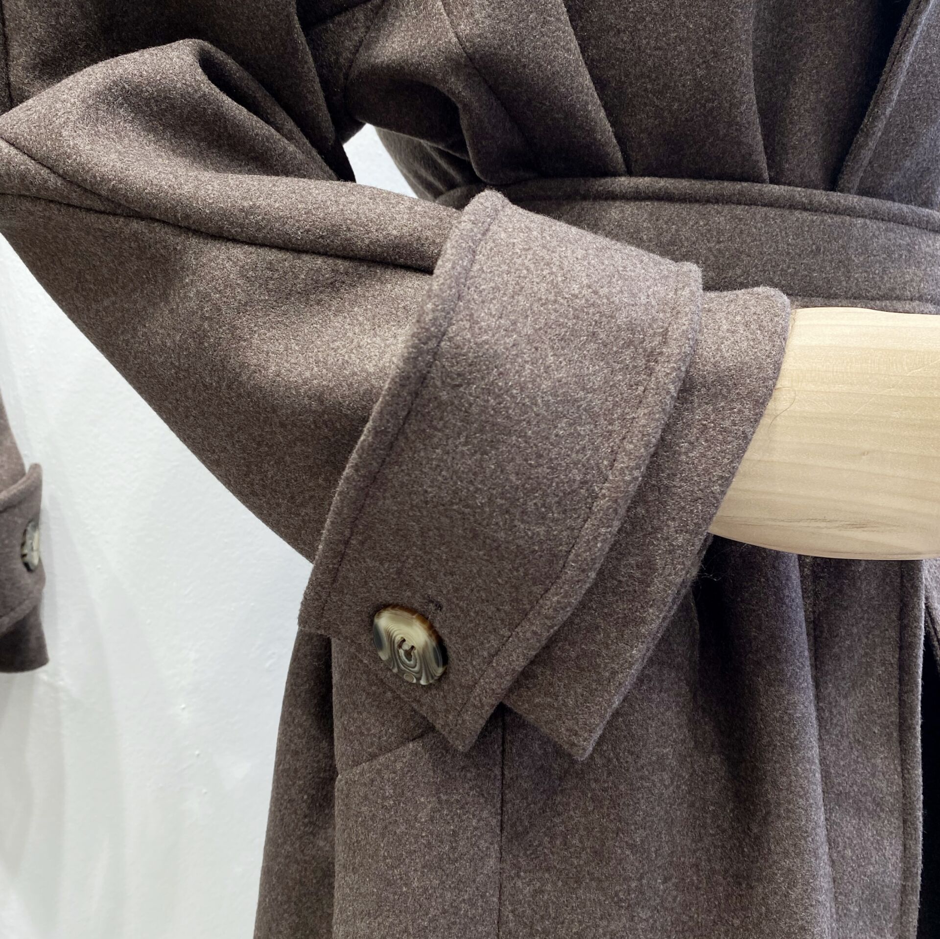Kahverengi Kuşaklı Kaşe Kaban