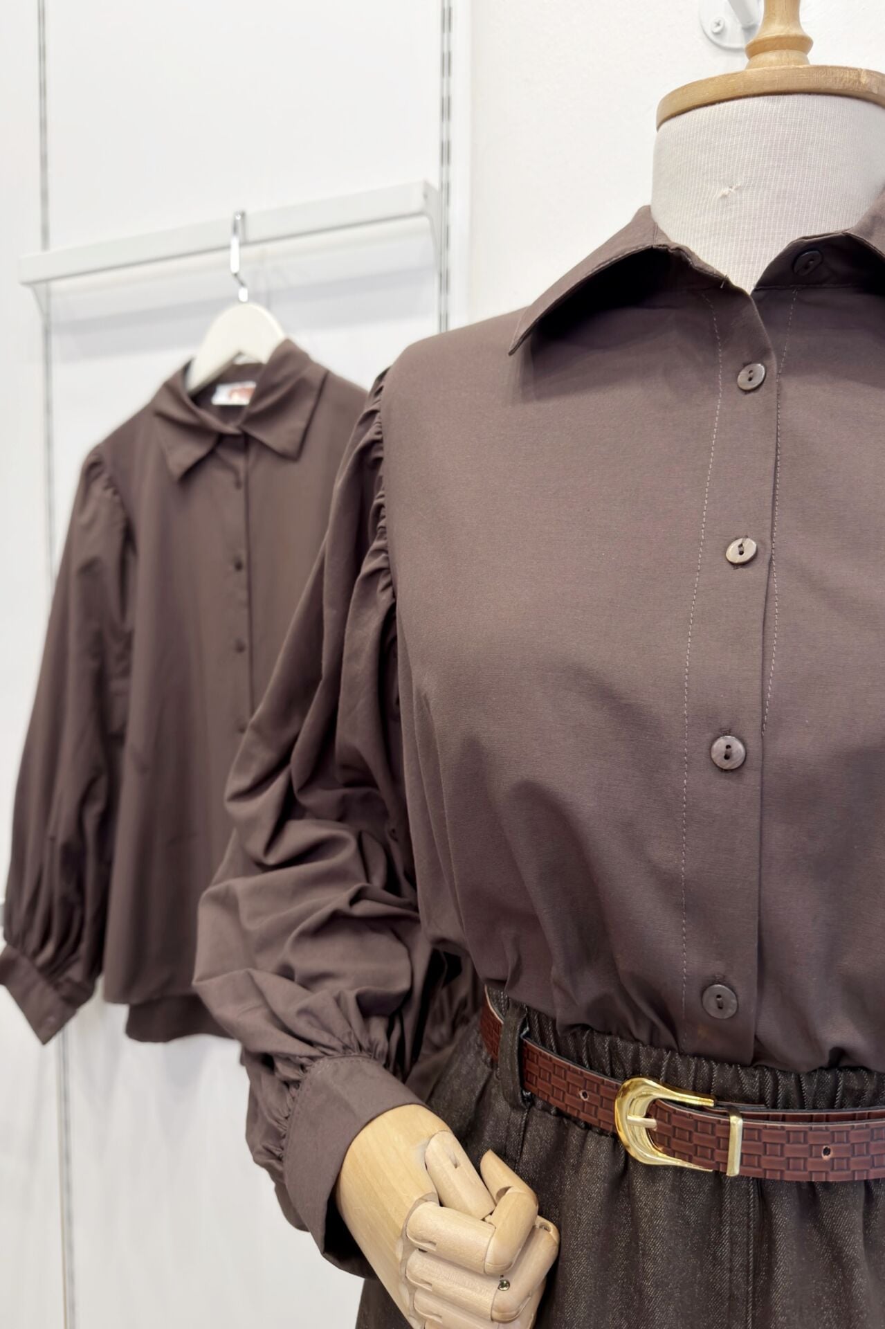Kahverengi Lily Poplin Gömlek