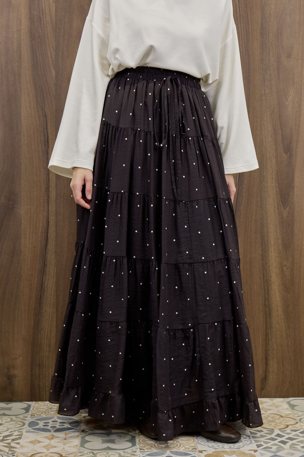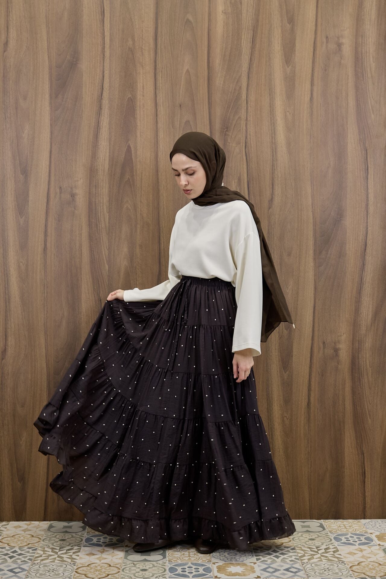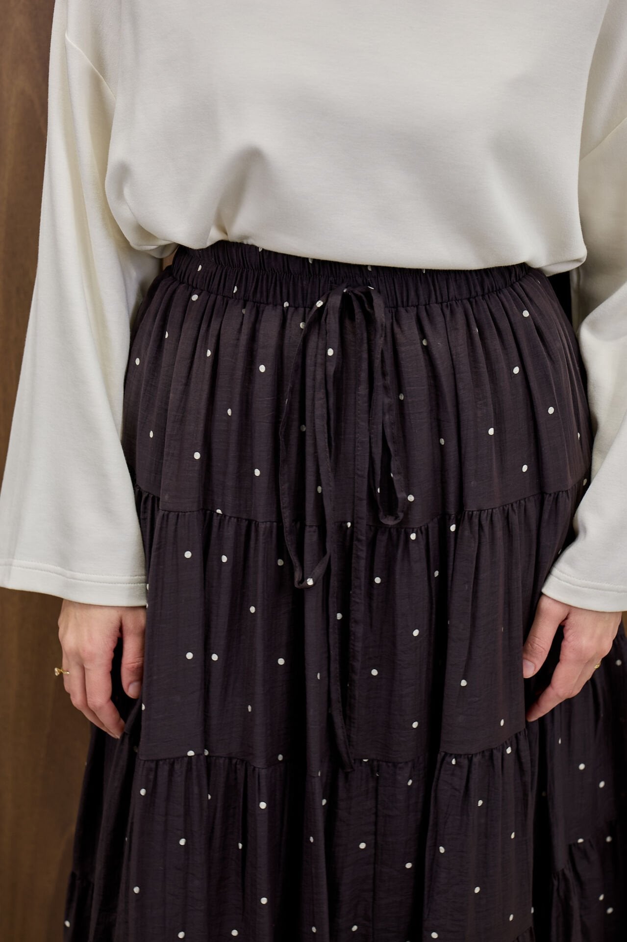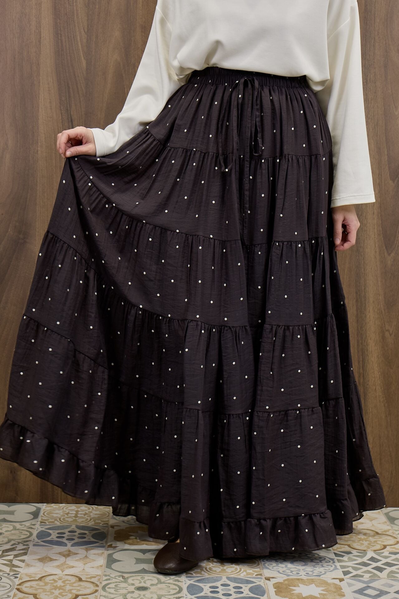 Acı Kahve Polka Puantiye Desenli Şifon Etek