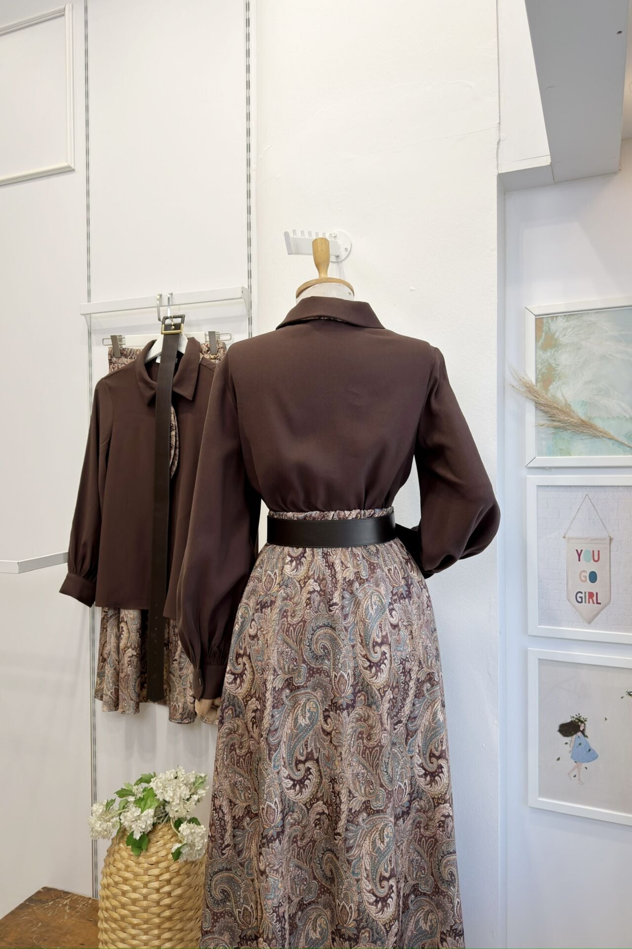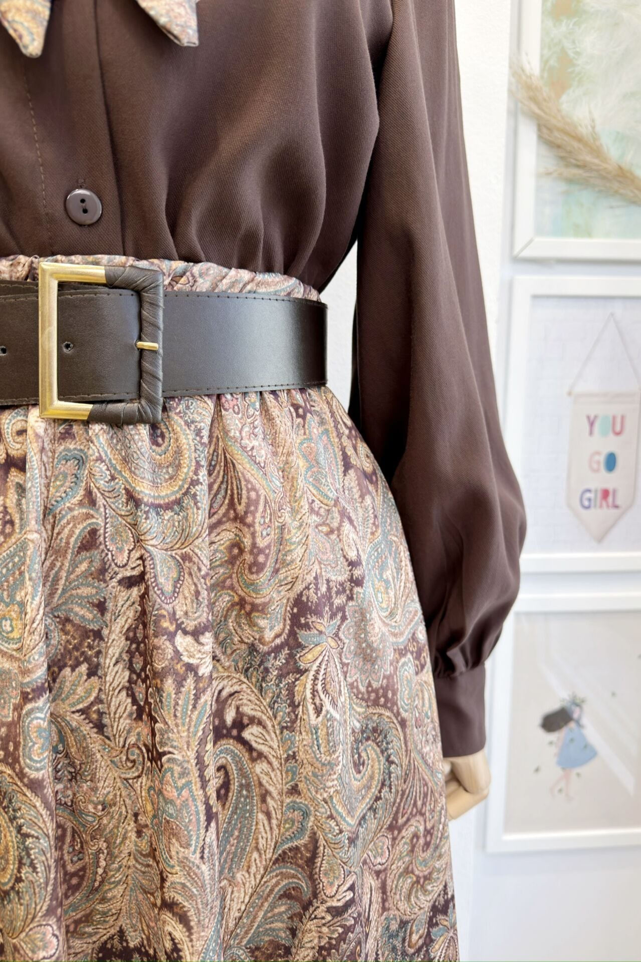 Kahverengi Saten Desenli Etekli Clemence Takım