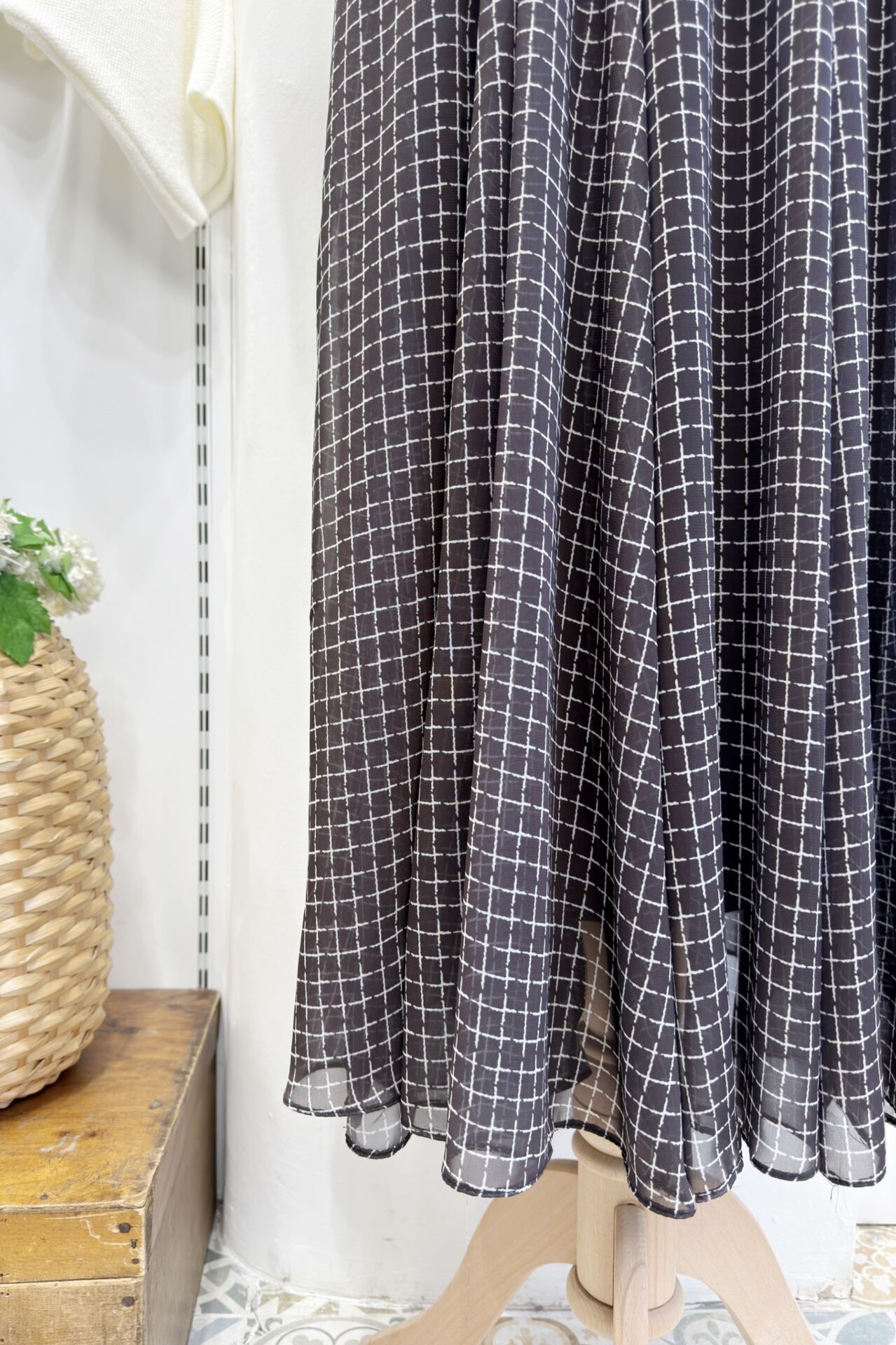 Kahverengi Şifon Kare Çizgili Etek