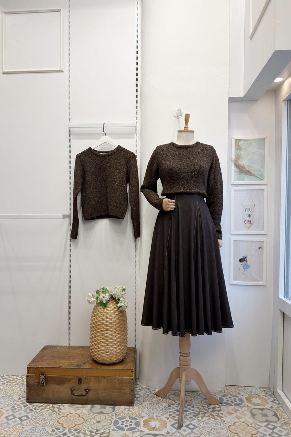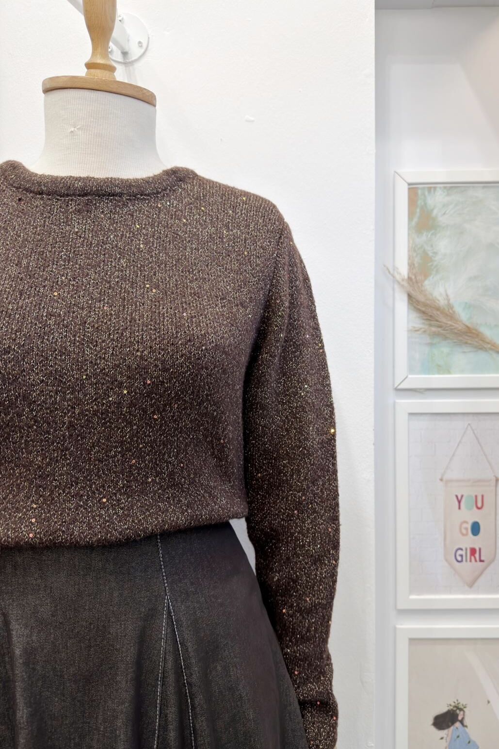 Kahverengi Sim İpli Triko Kazak