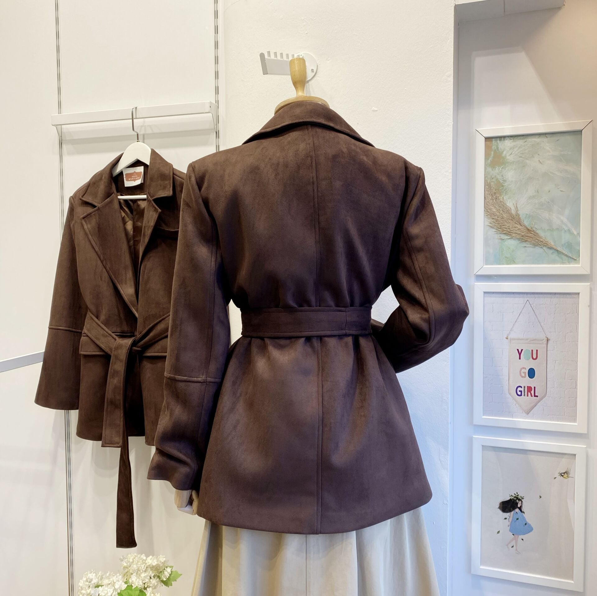 Kahverengi Svala Cep Detaylı Süet Ceket