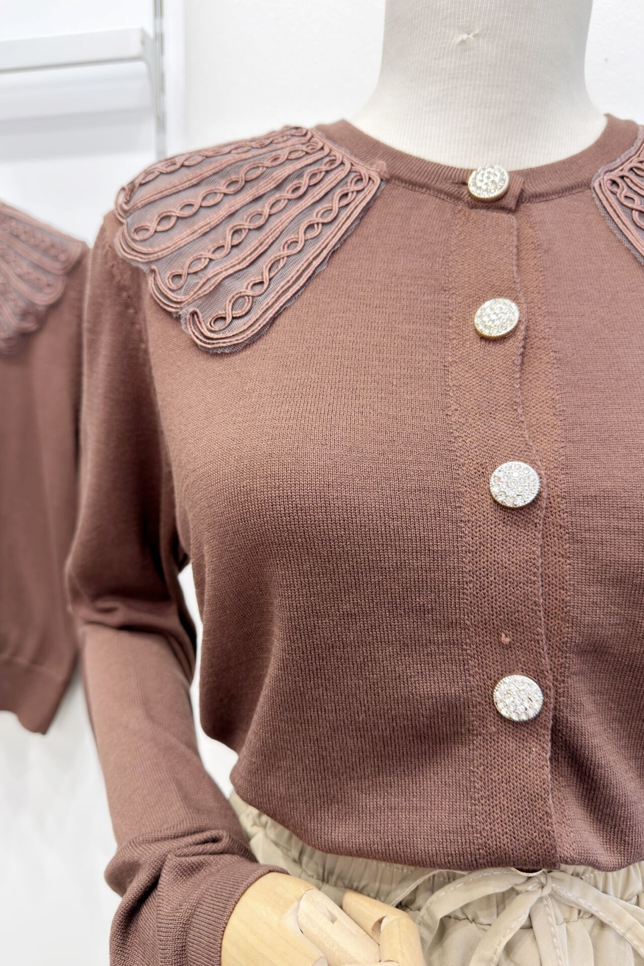 Kahverengi Taş Düğmeli Plior Hırka