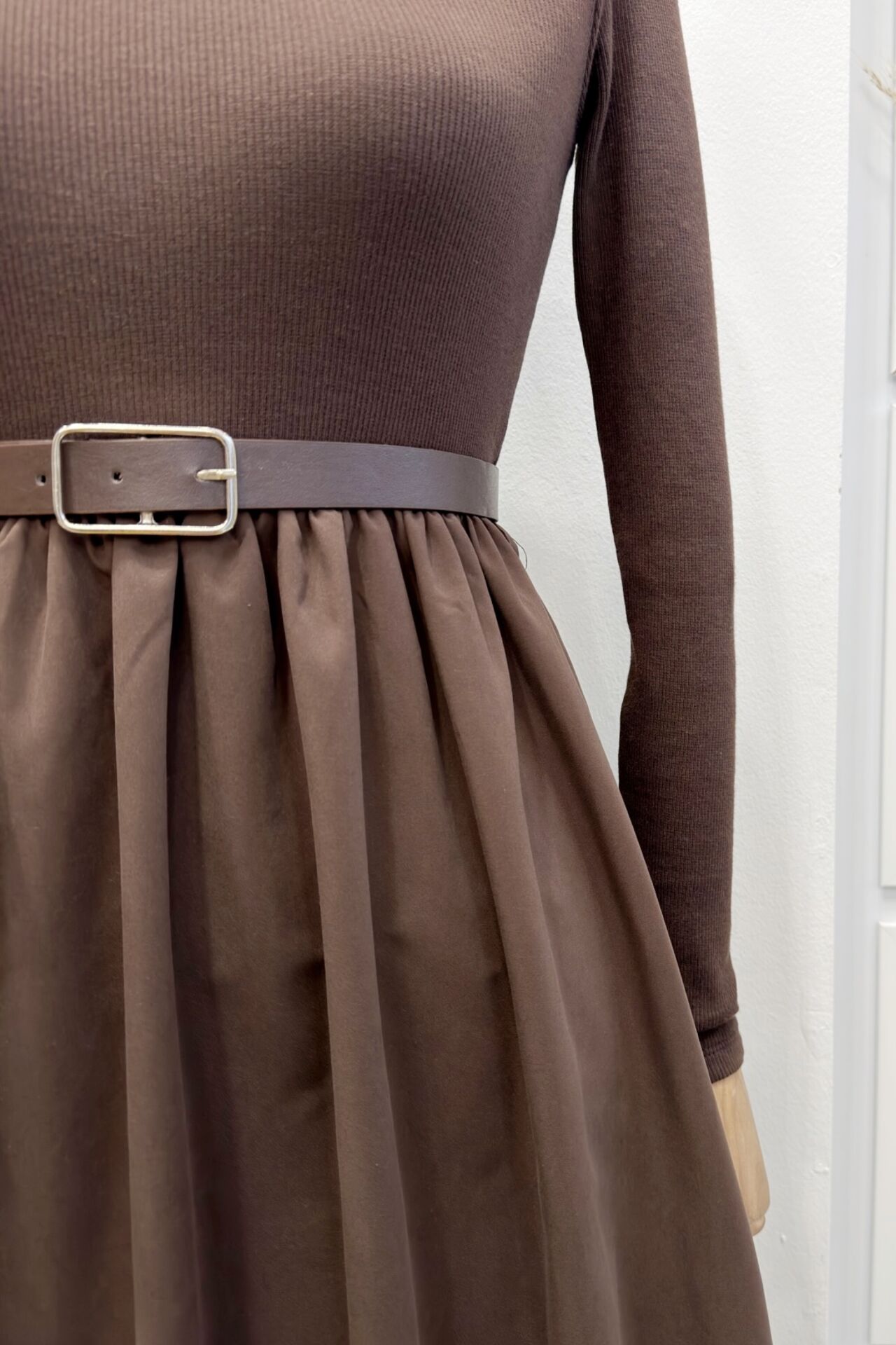 Kahverengi Triko Detaylı Sorella Elbise