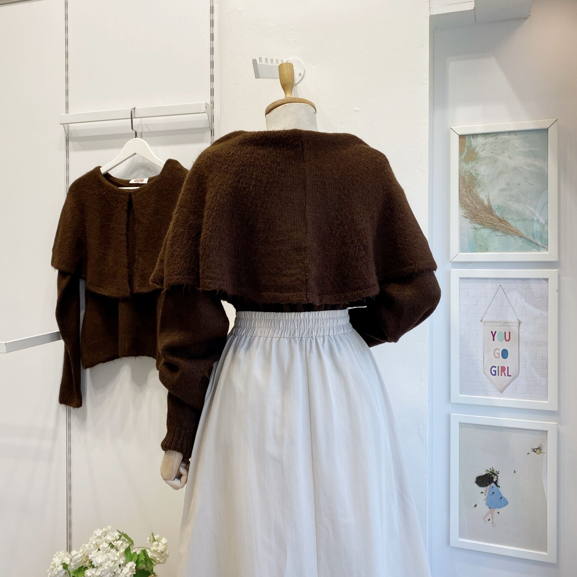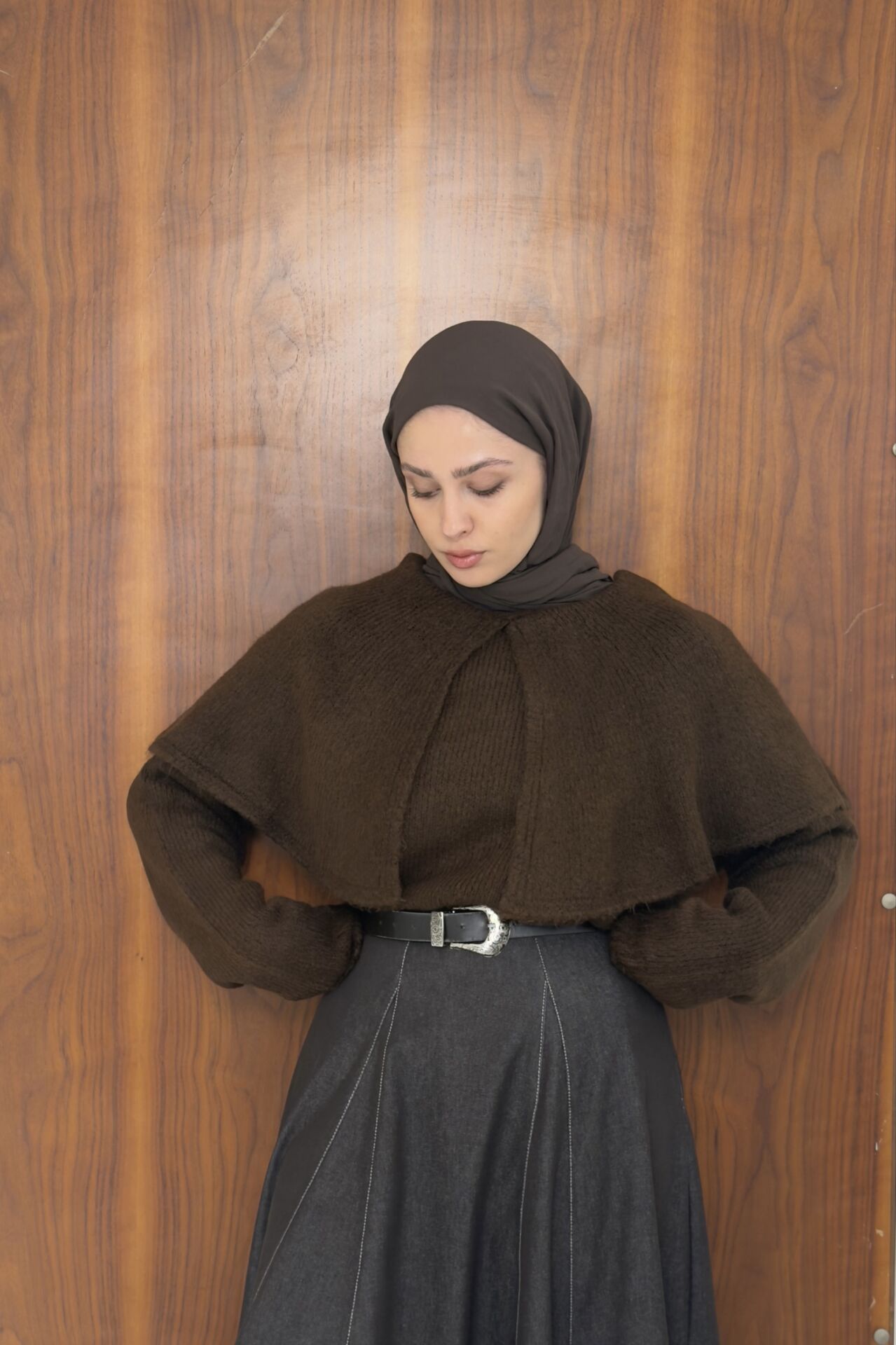 Kahverengi Yaka Detaylı Triko Kazak