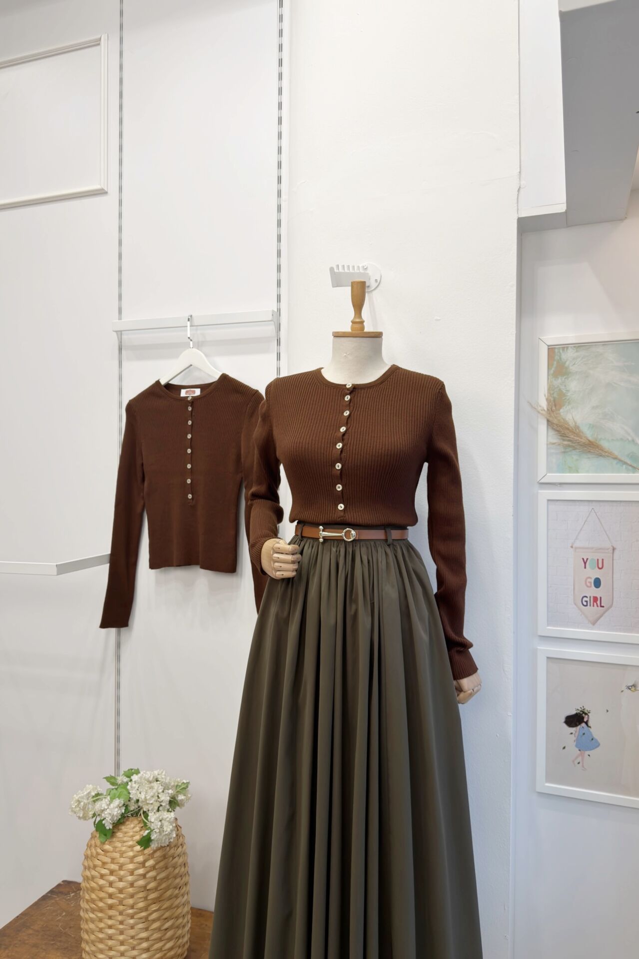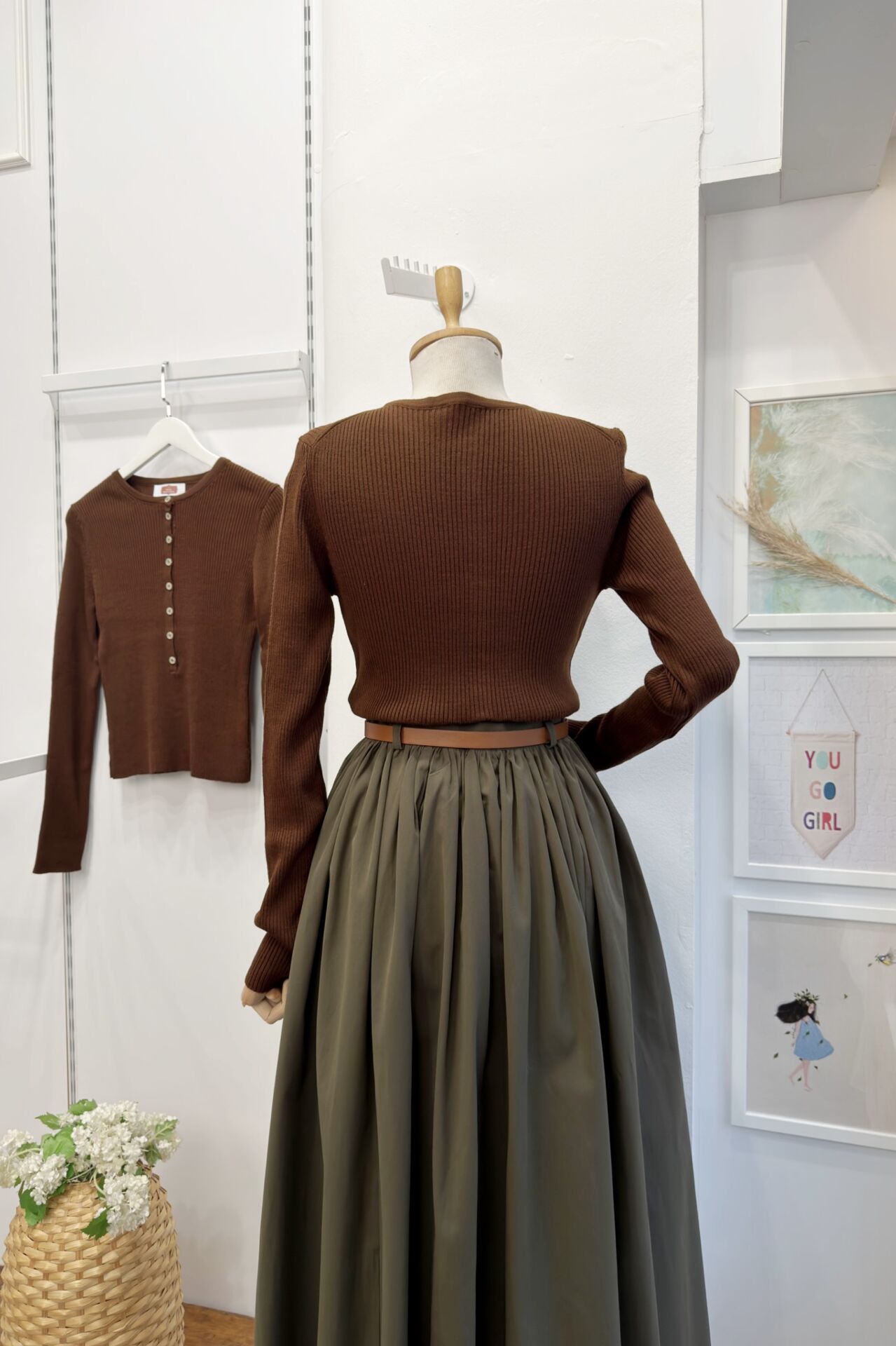 Kahverengi Yünlü Düğmeli Triko Kazak