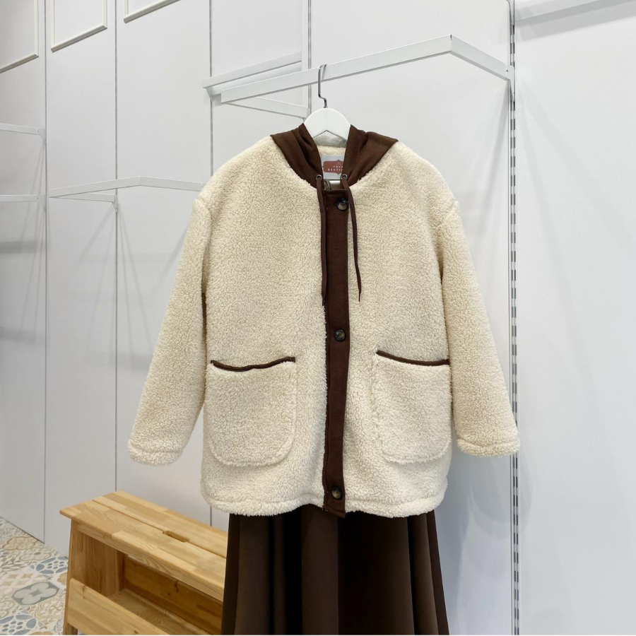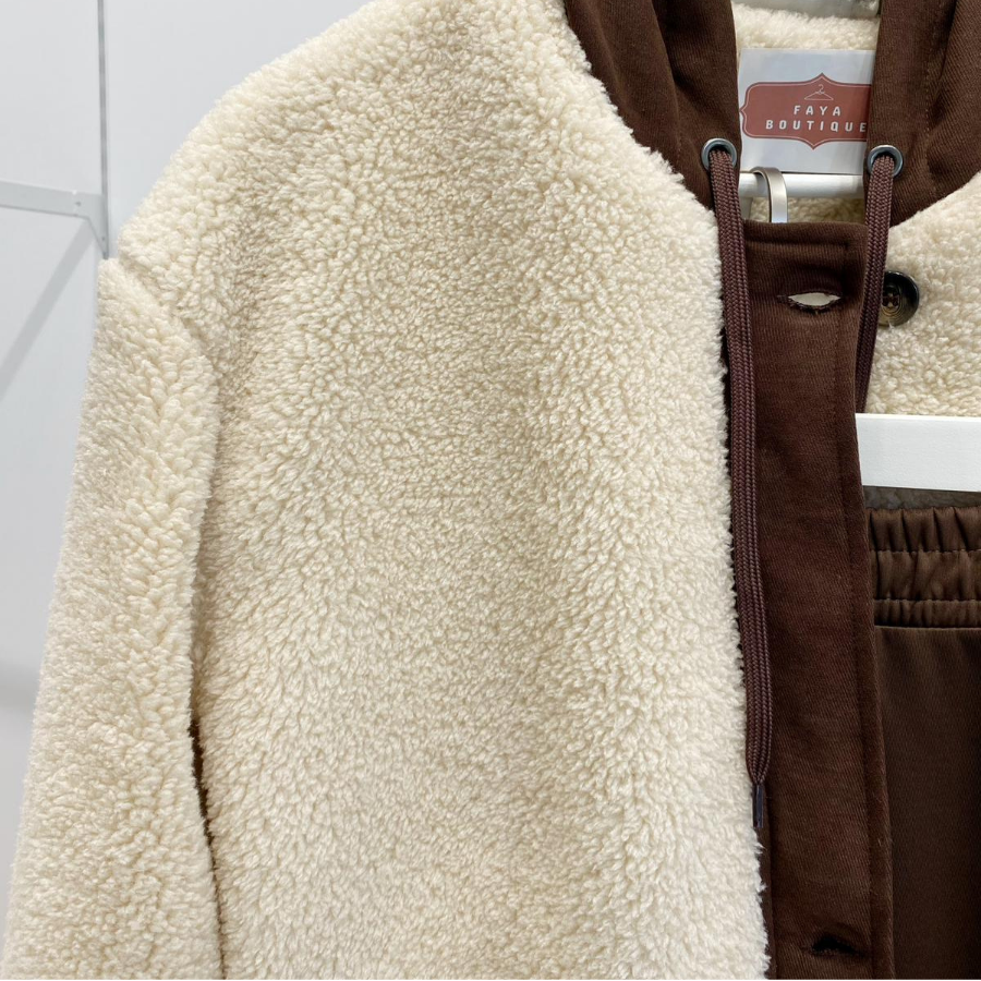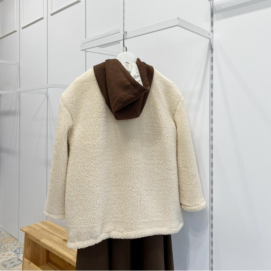 Kapüşonlu Krem Peluş Mont