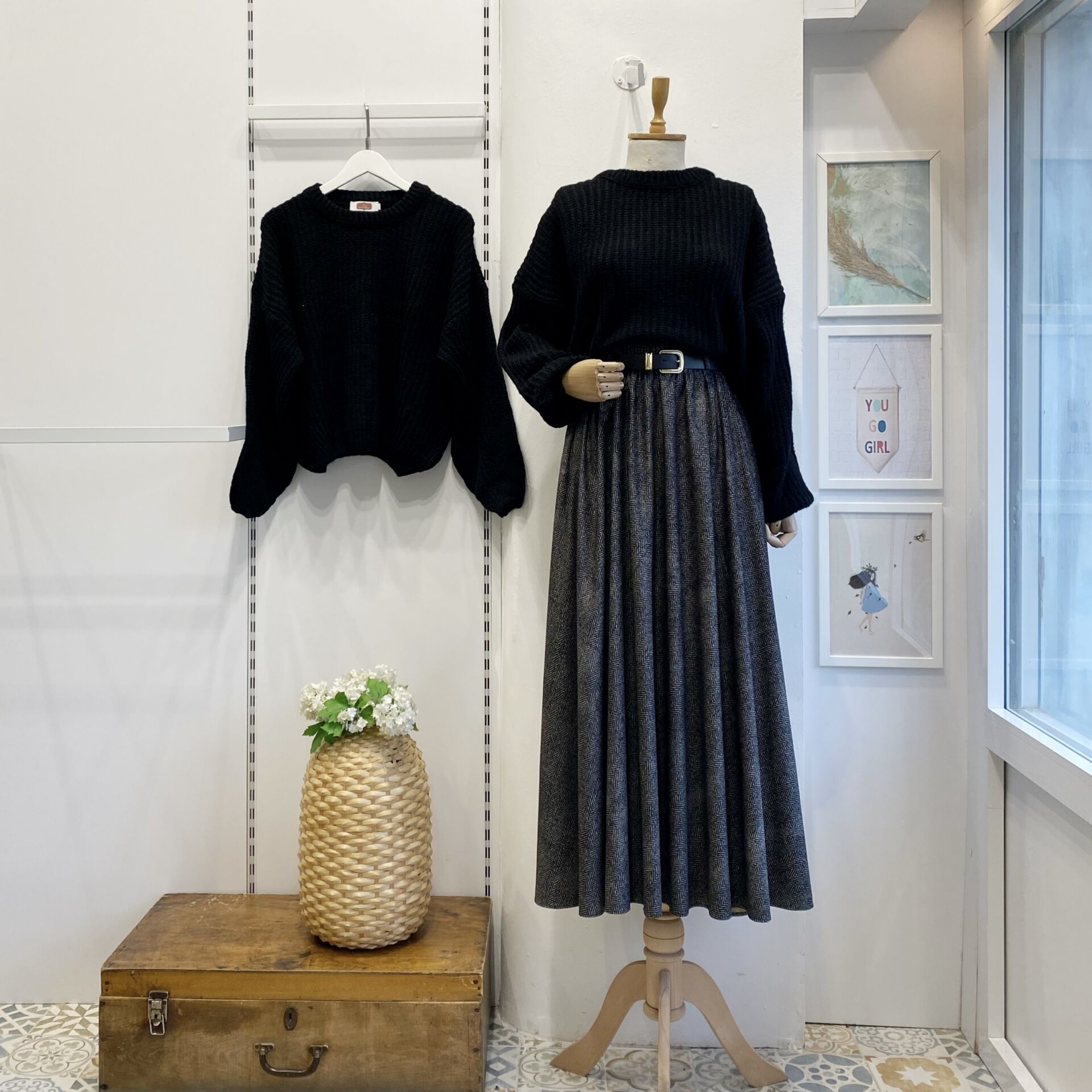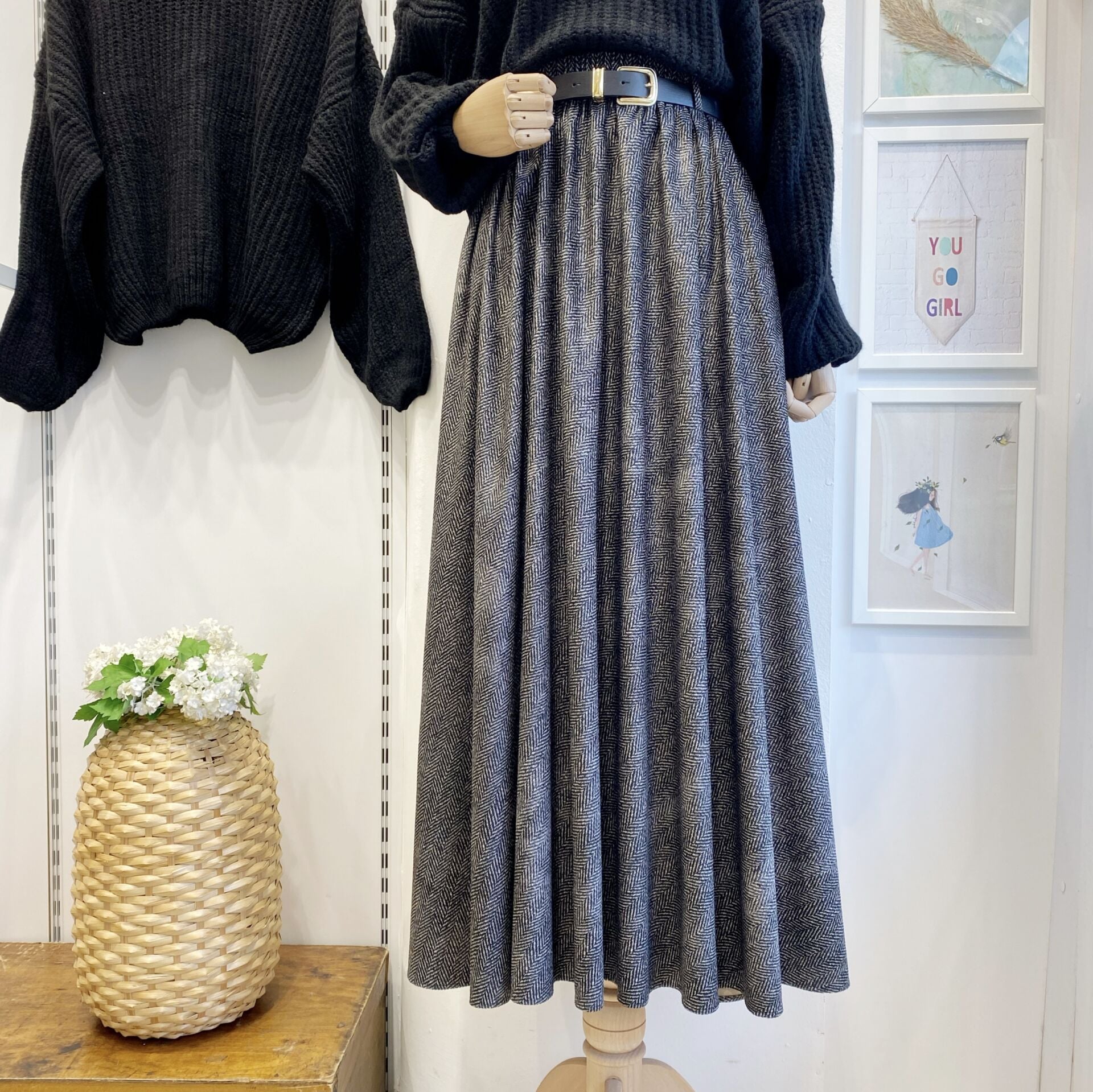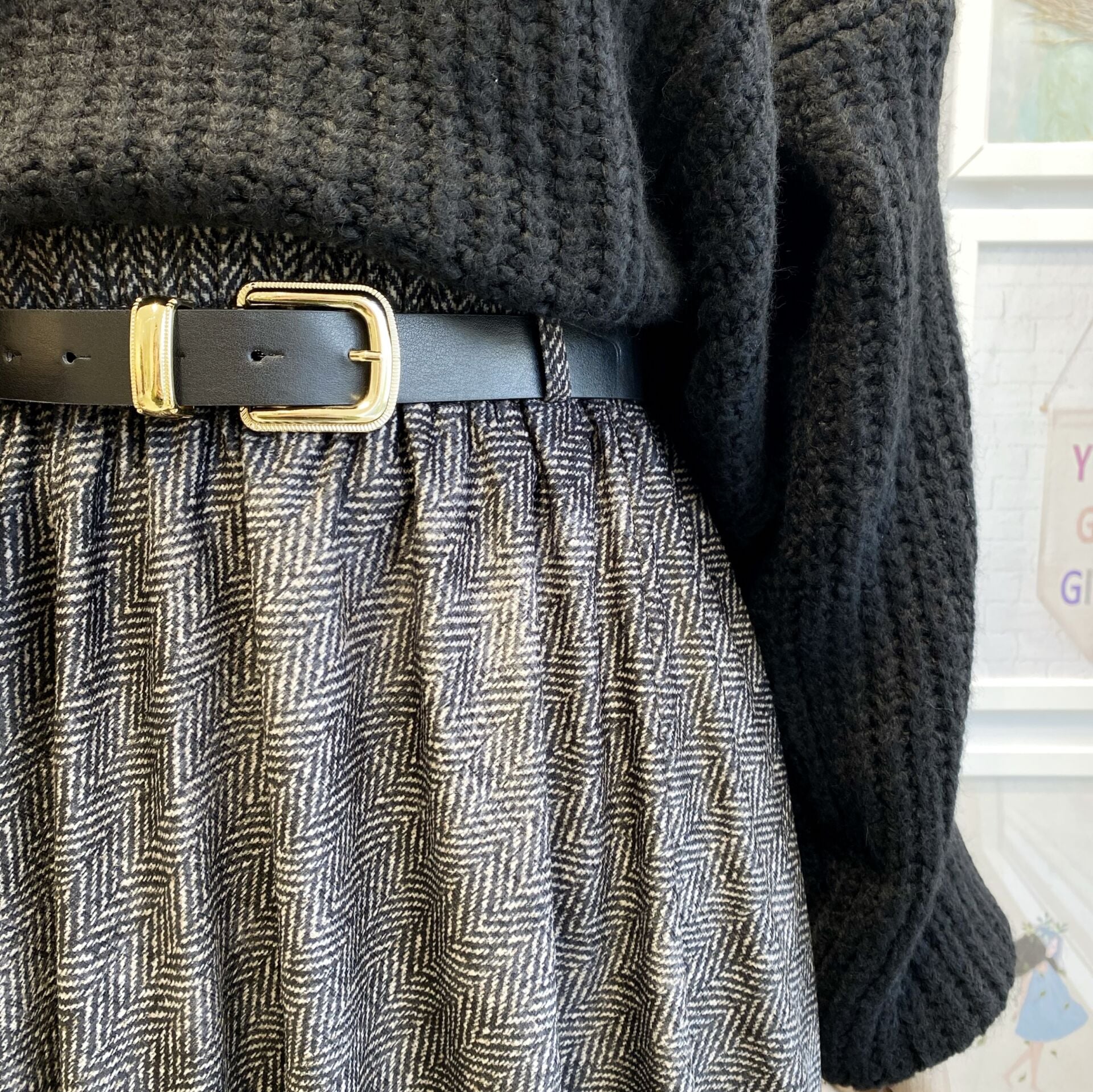 Kazayağı Desenli Siyah Kemerli Etek