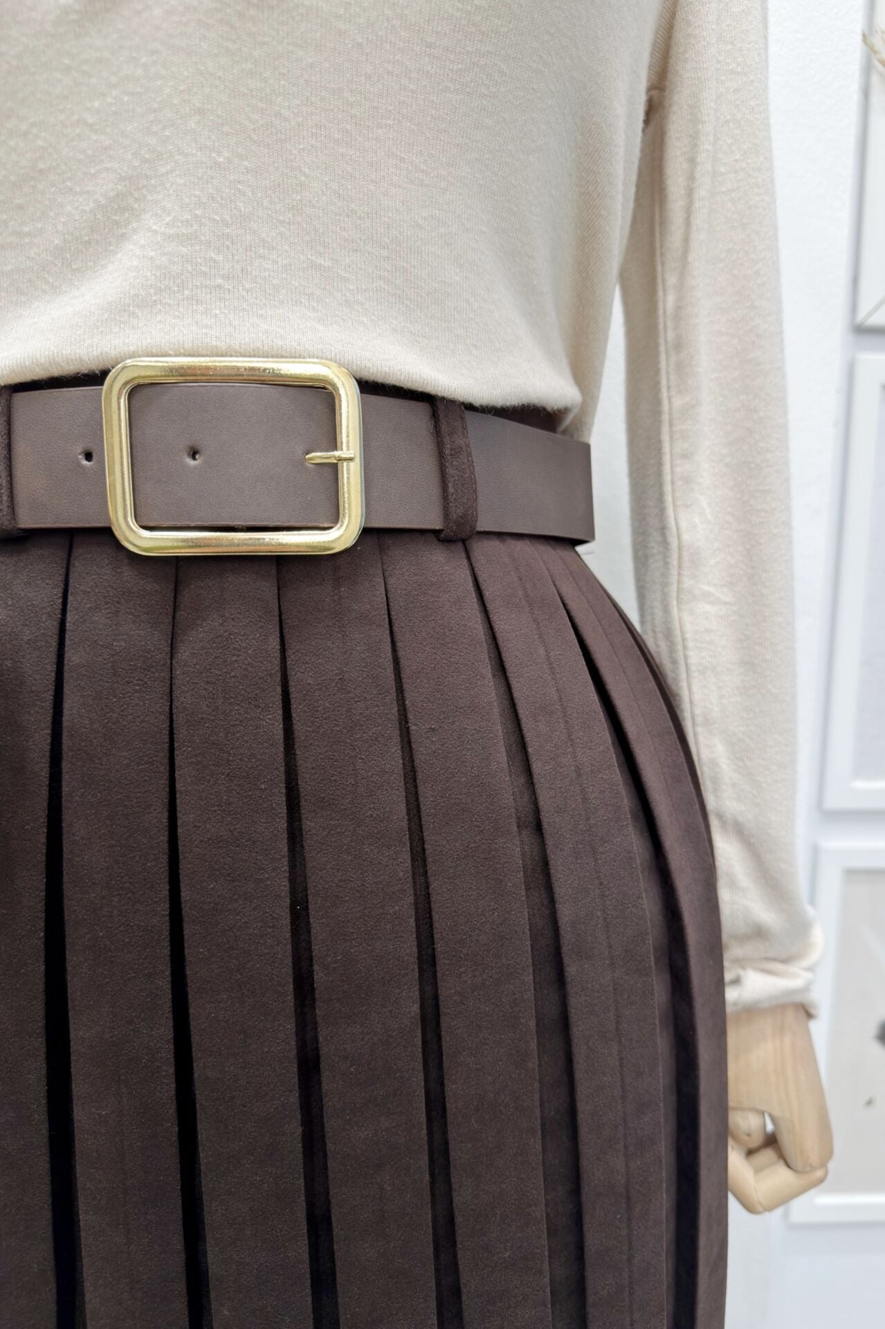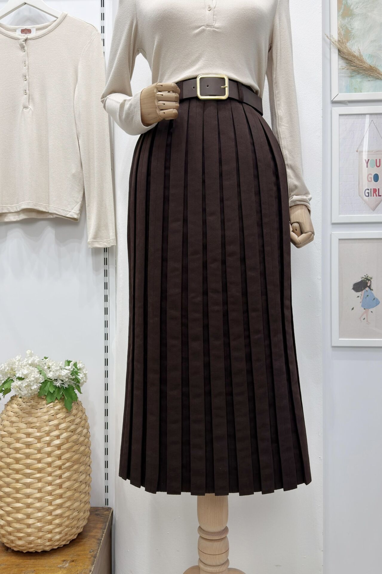 Kemer Detaylı Acı Kahve Fallow Pileli Etek