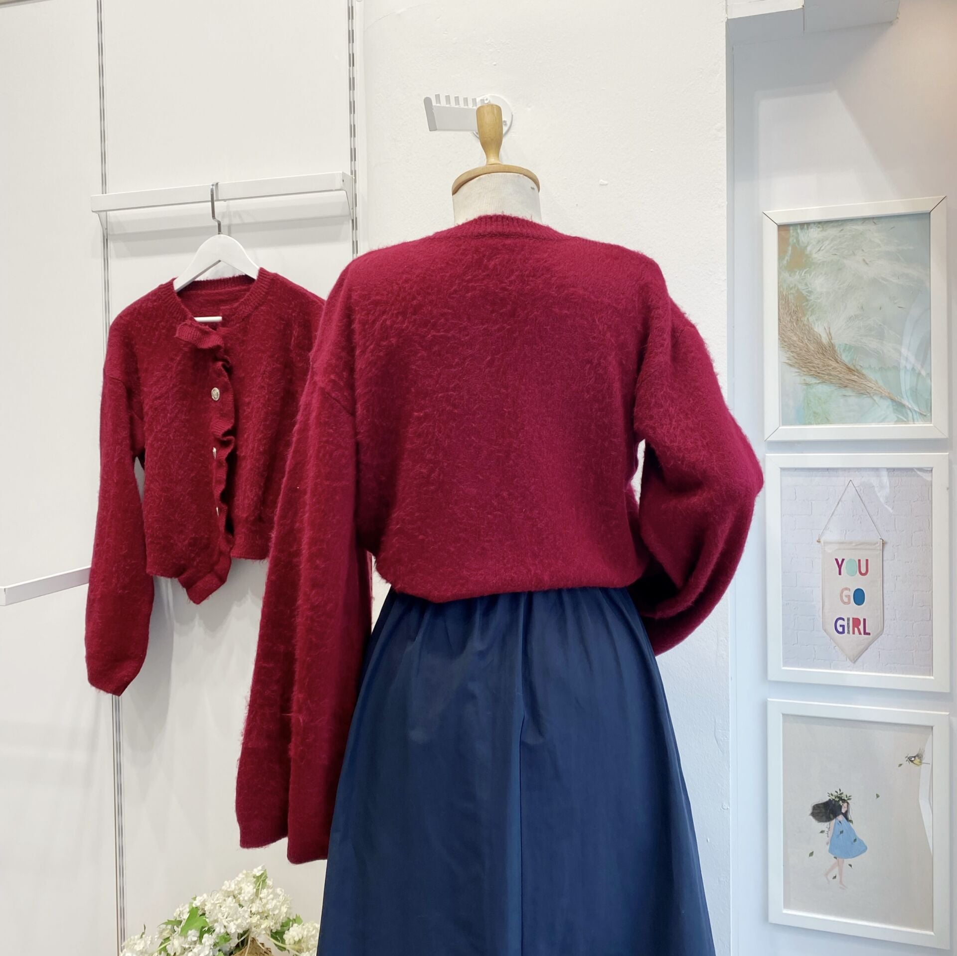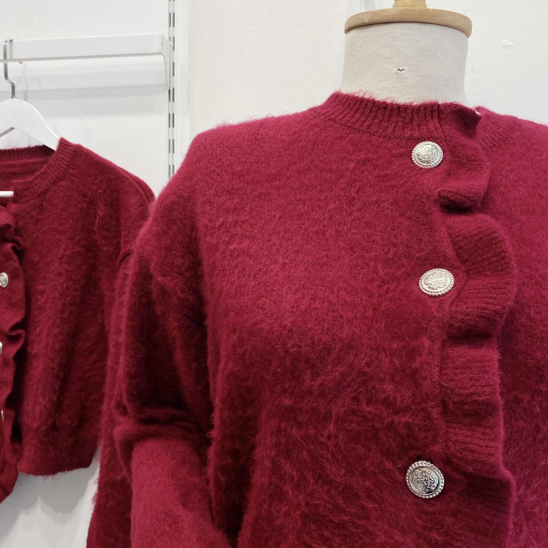 Kırmızı Silver Düğmeli Asimetrik Hırka