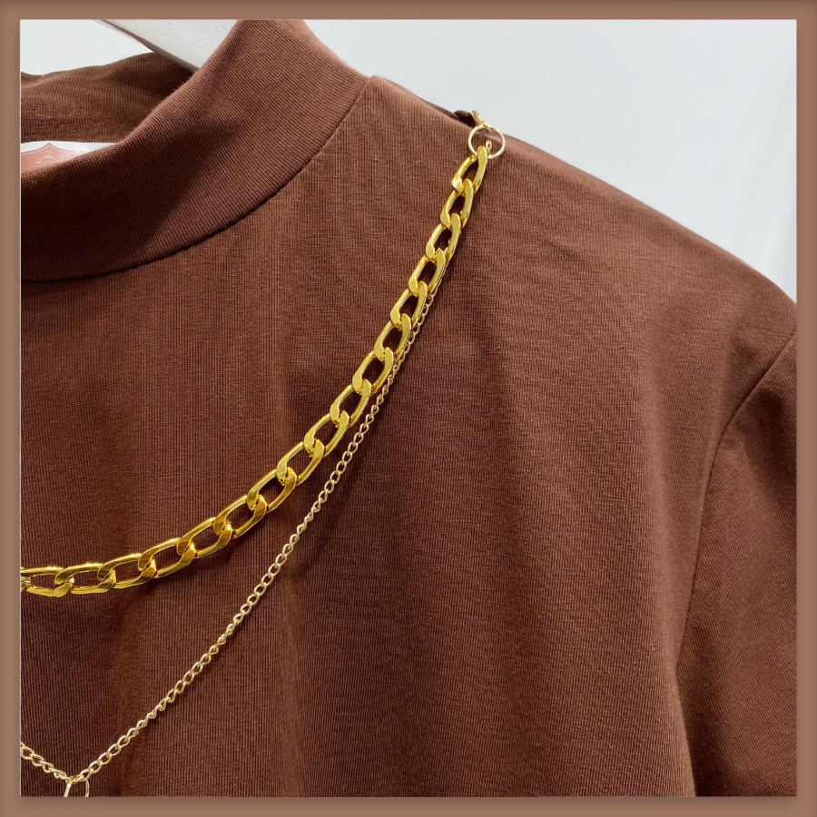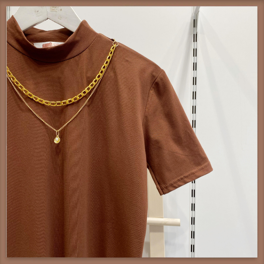 Kolye Detaylı Kahverengi Kısa Kollu T-Shirt