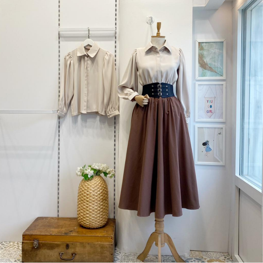 Korse Kemerli Kahverengi Victoria Etek