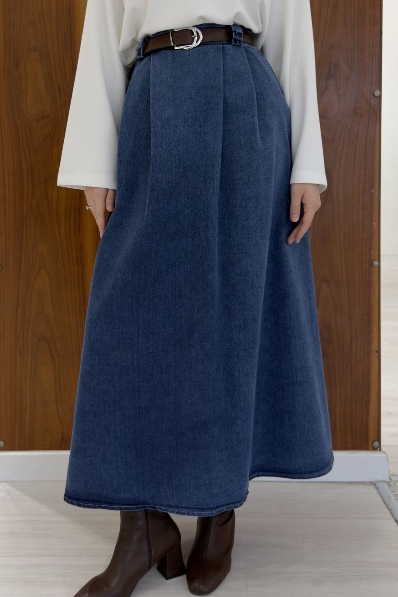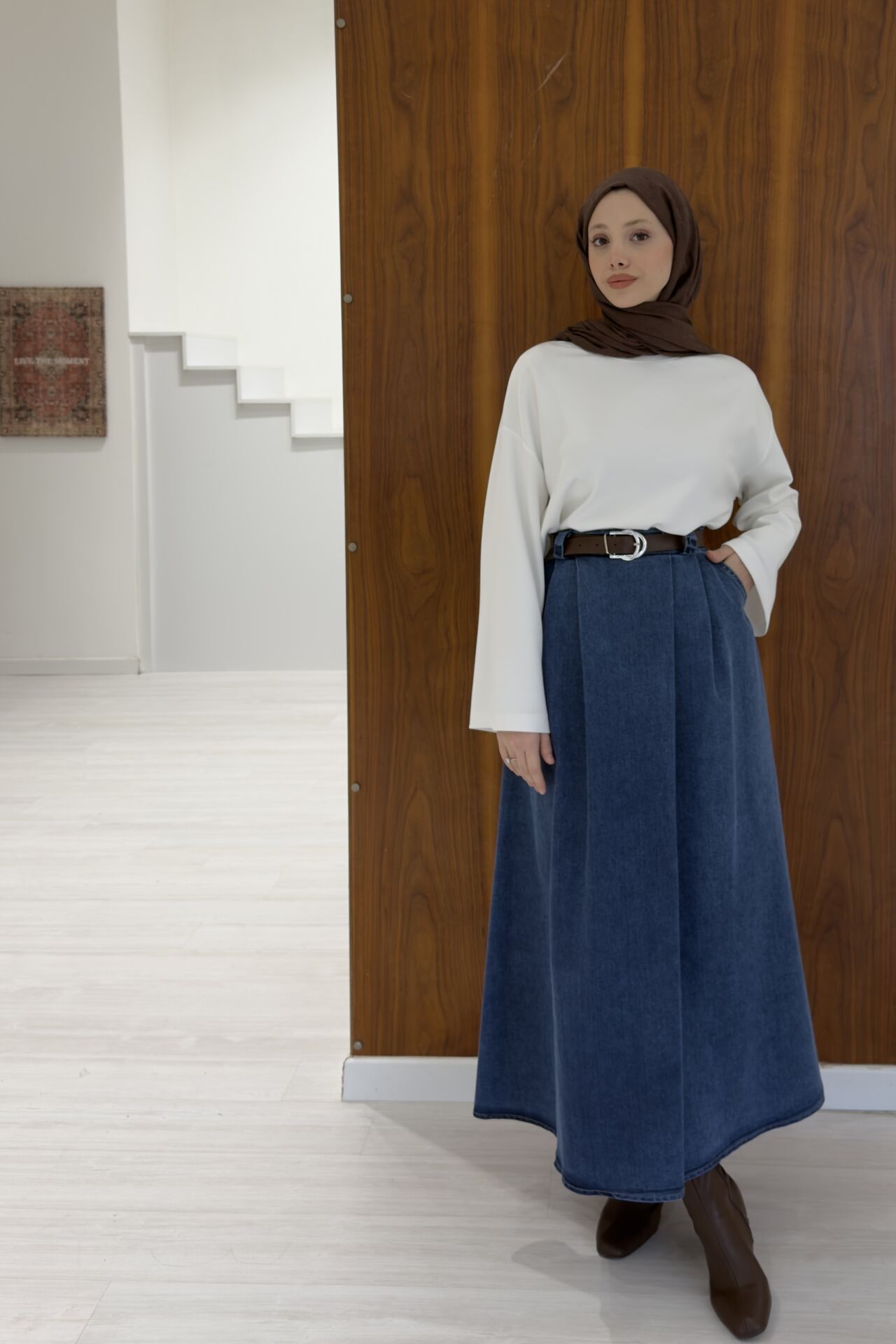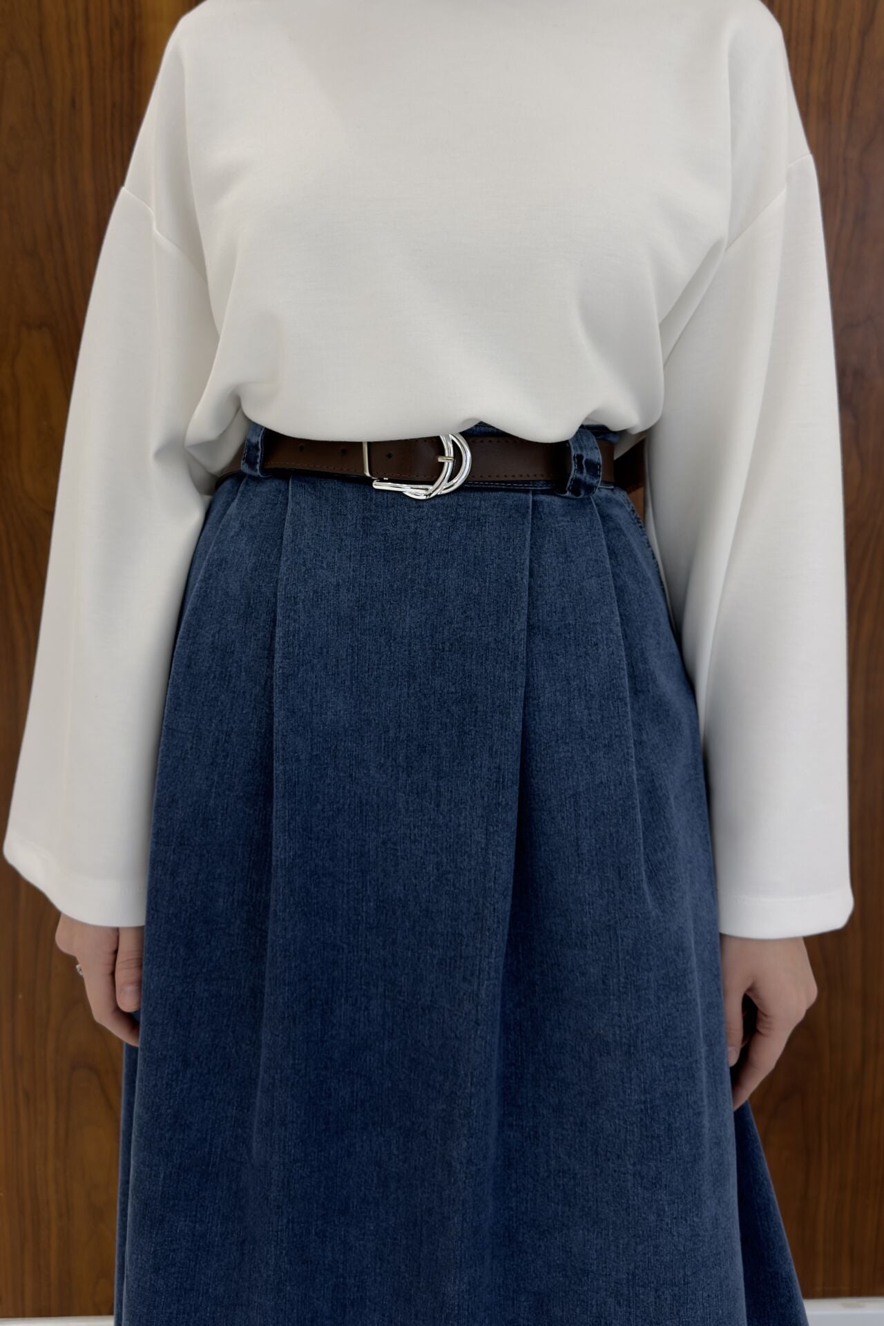 Koyu Renk Kot Kumaş Kemerli Arain Etek