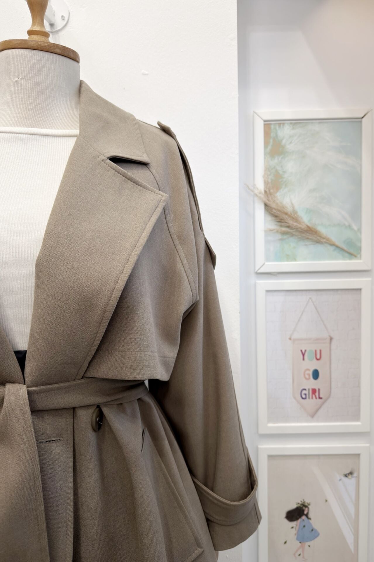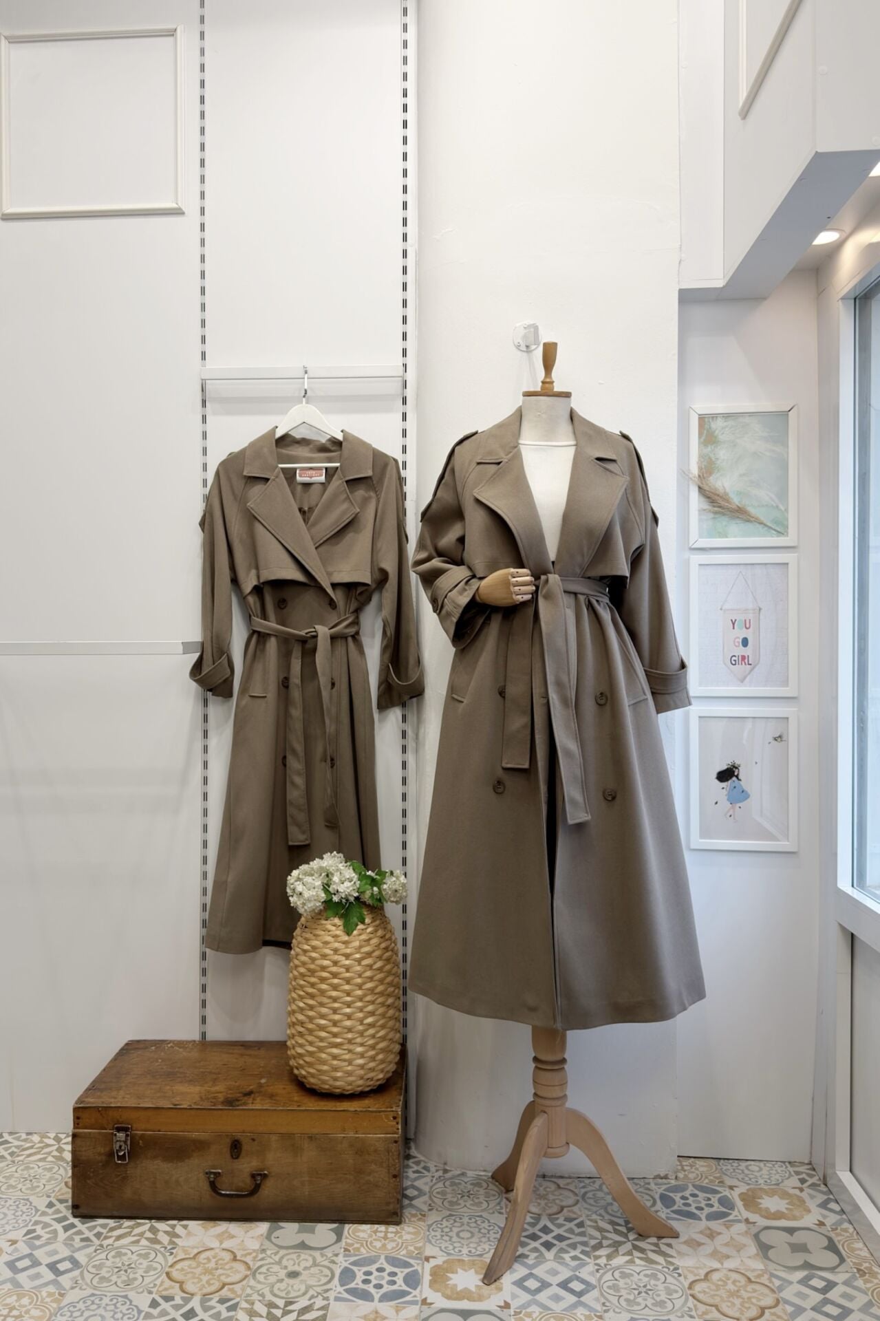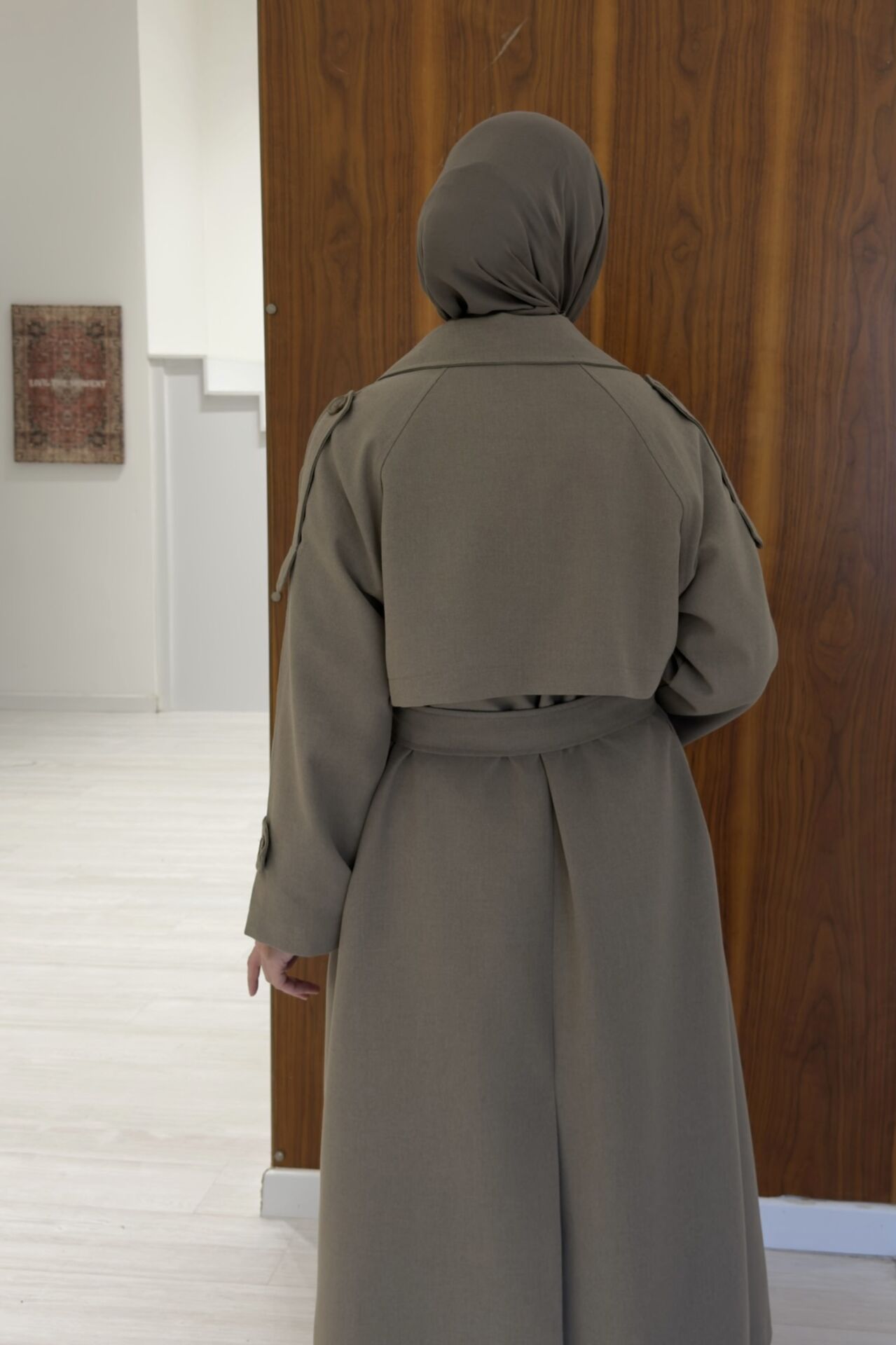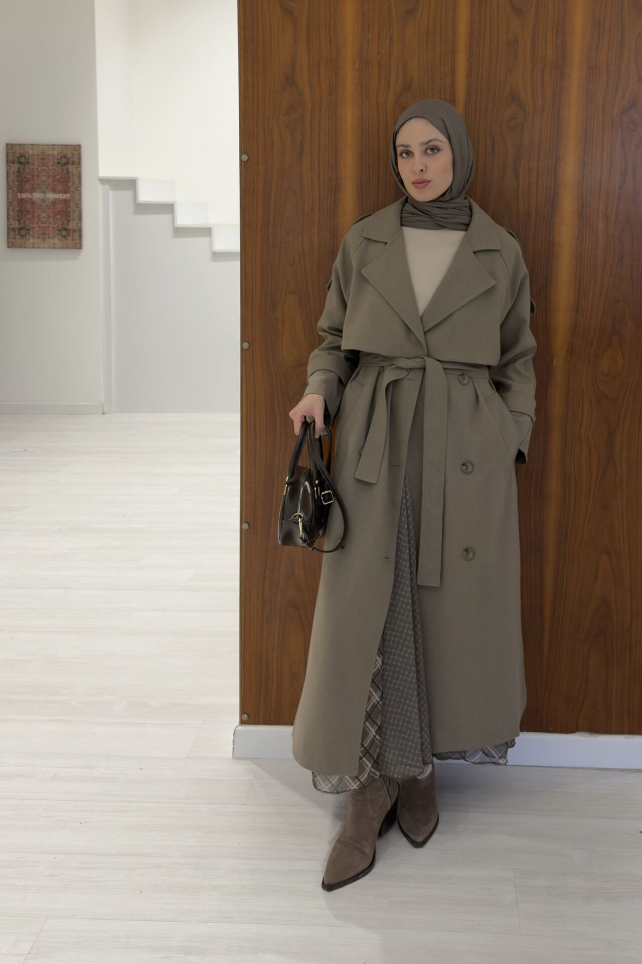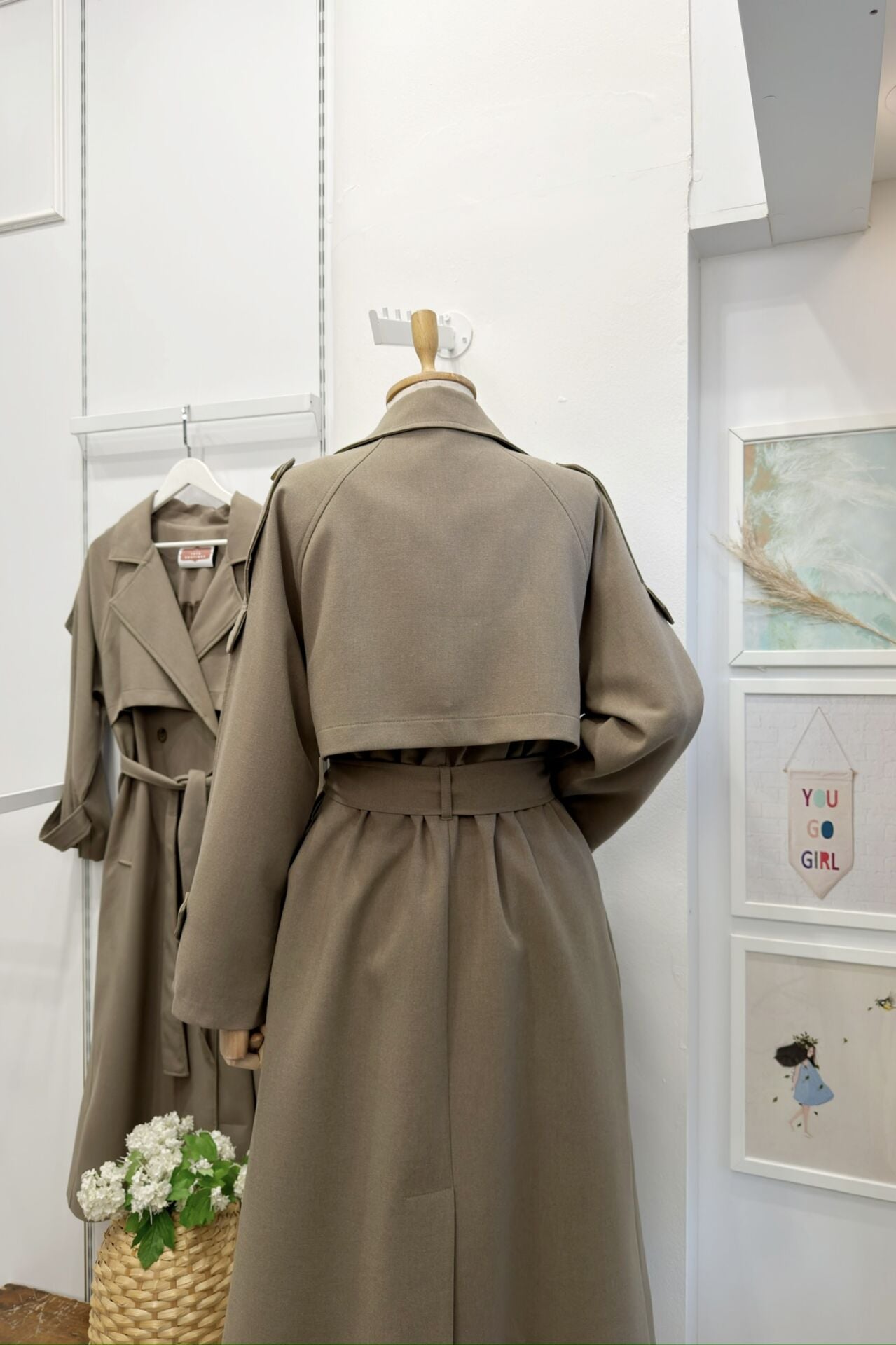Koyu Vizon Atlas Kumaş Opaline Trençkot