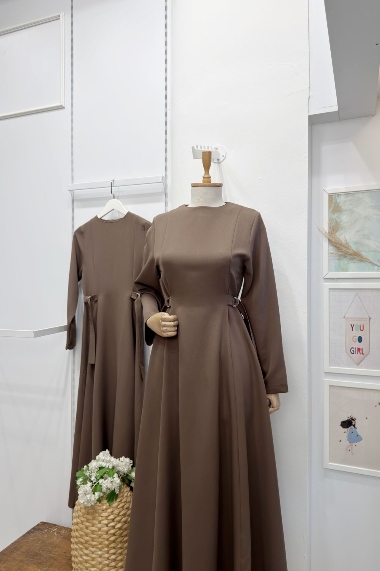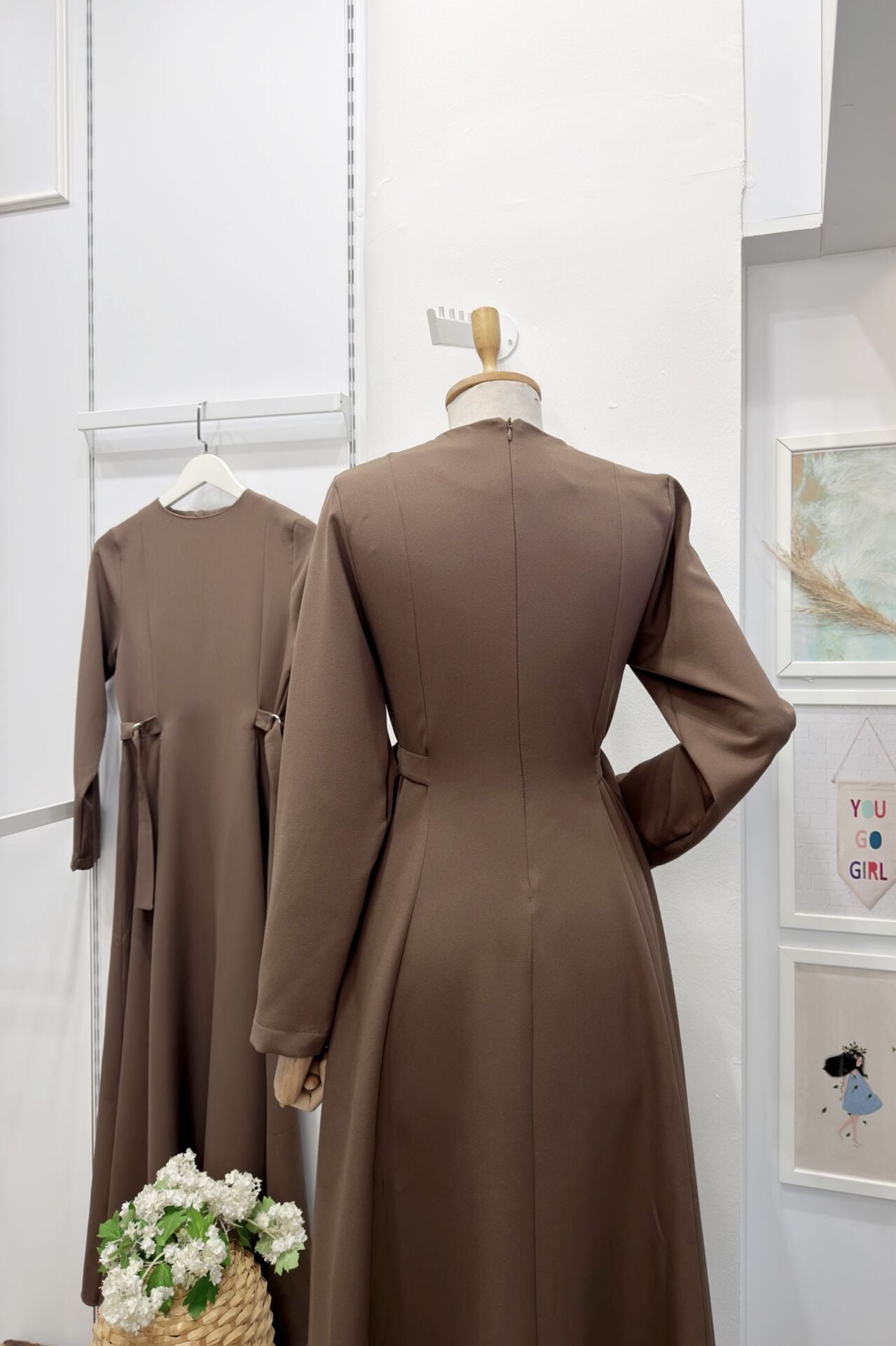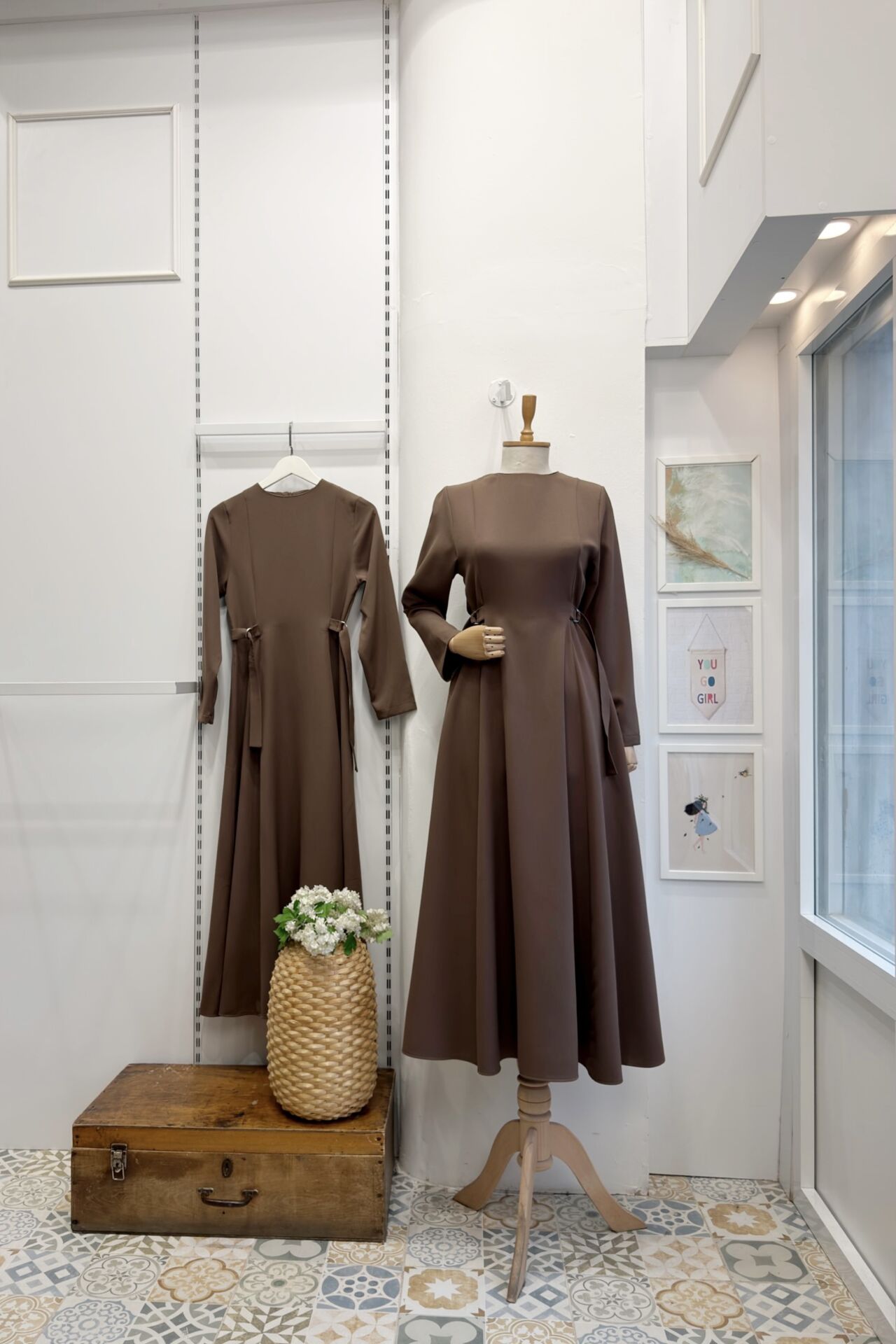 Koyu Vizon Beli Toka Detaylı Bruna Elbise