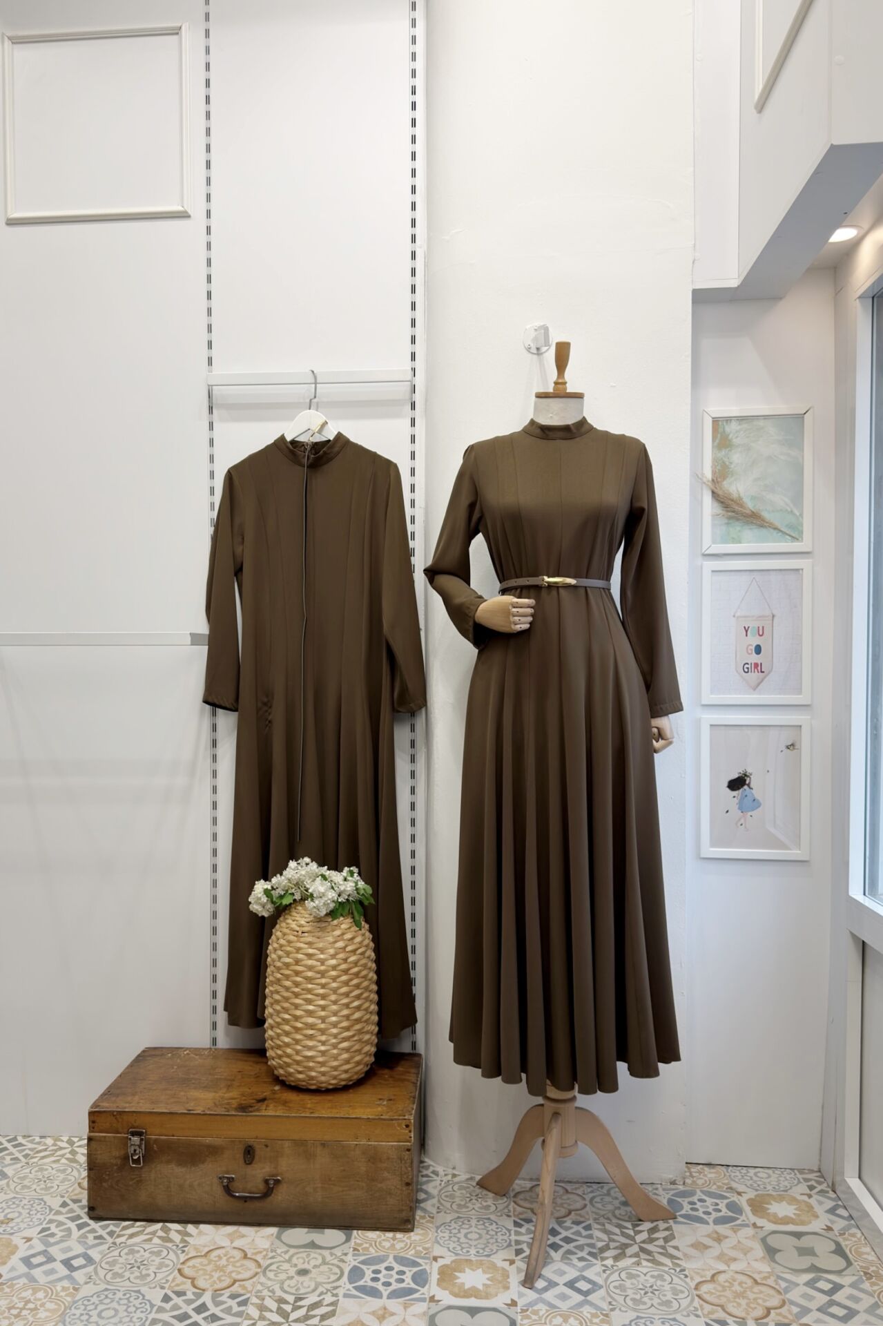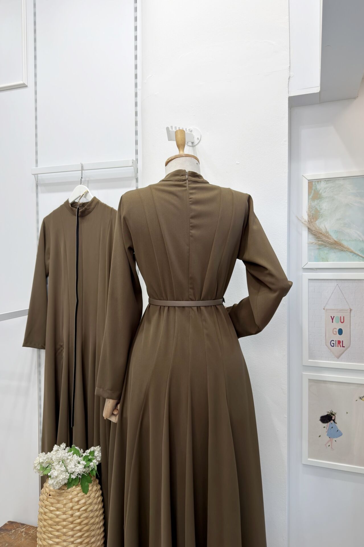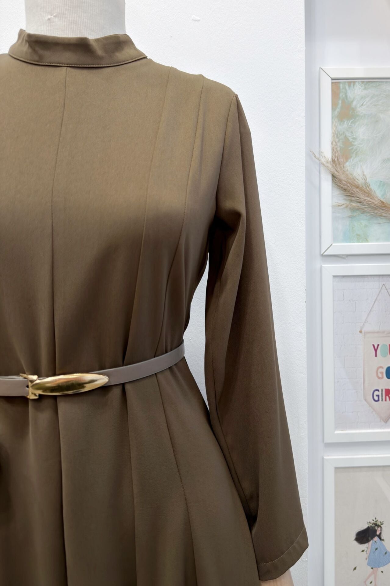 Koyu Vizon Kemer Detaylı Elvira Elbise