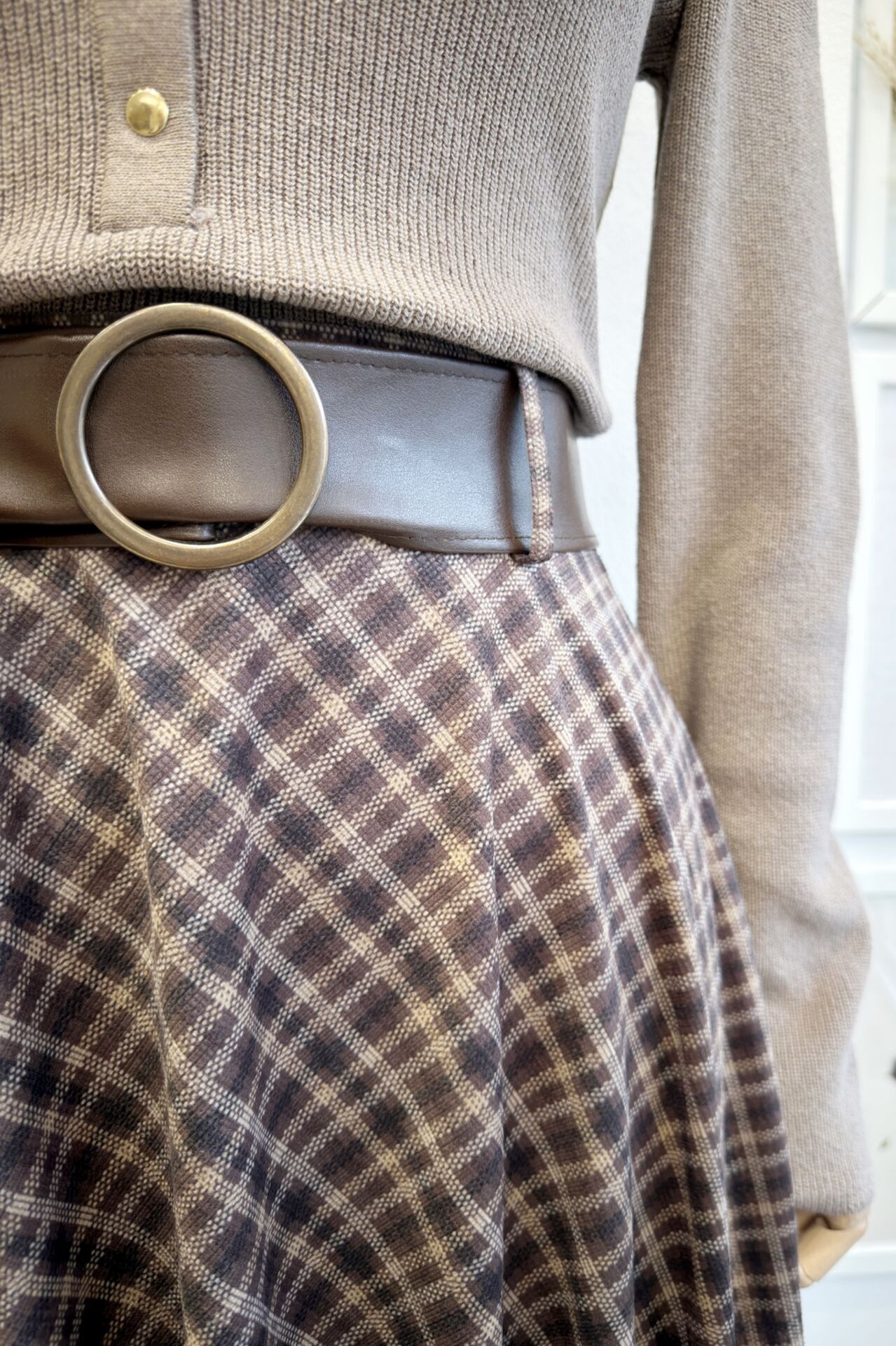 Koyu Vizon Yuvarlak Tokalı Velata Kadife Etek