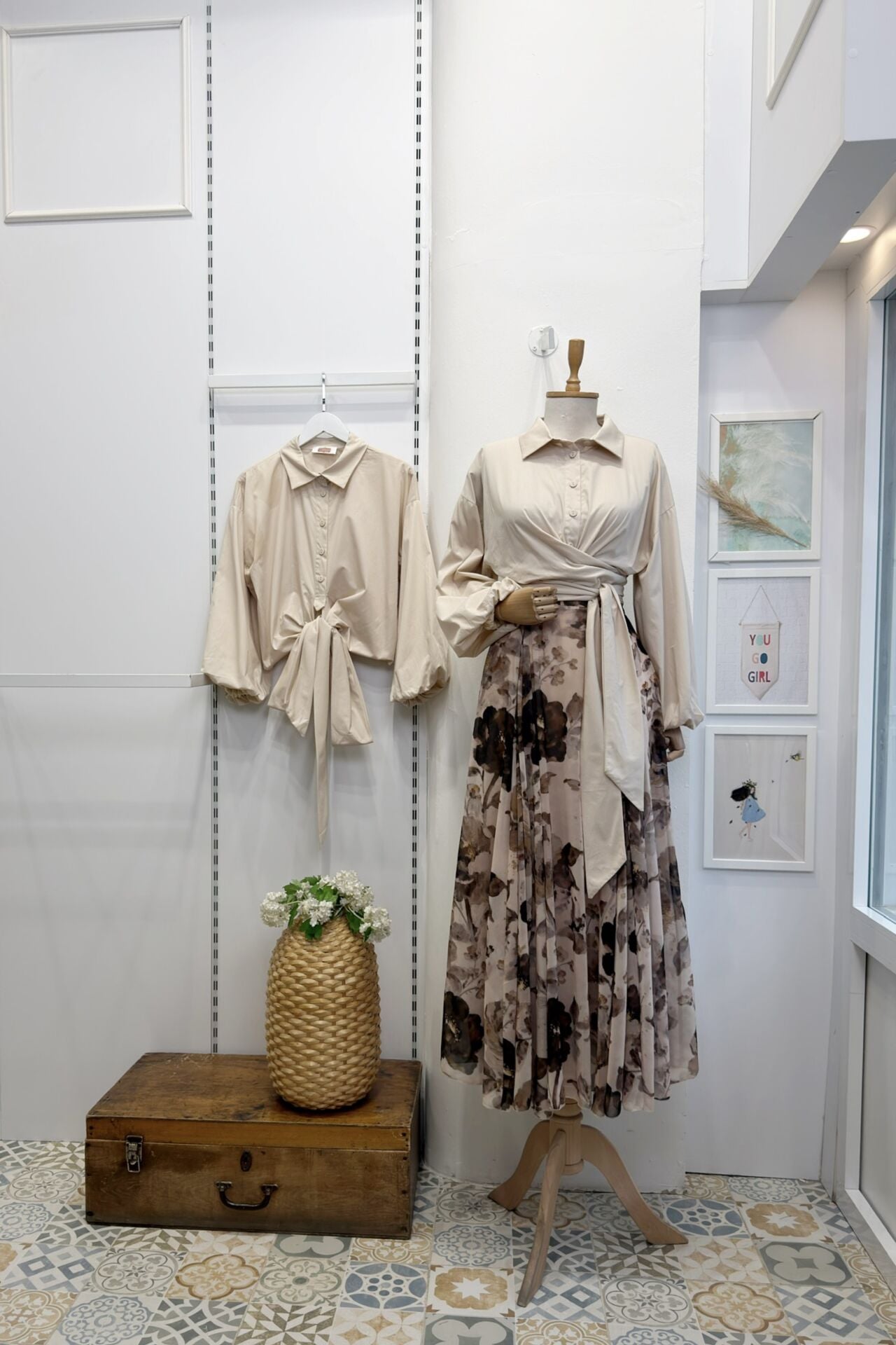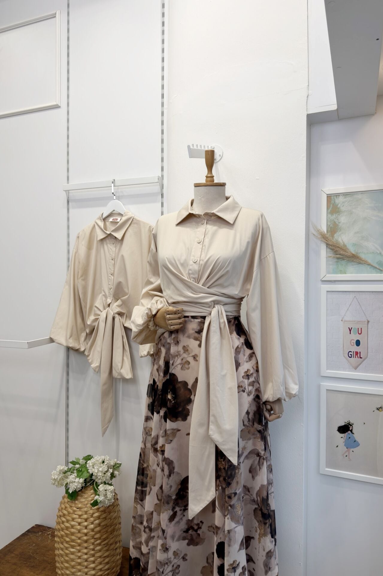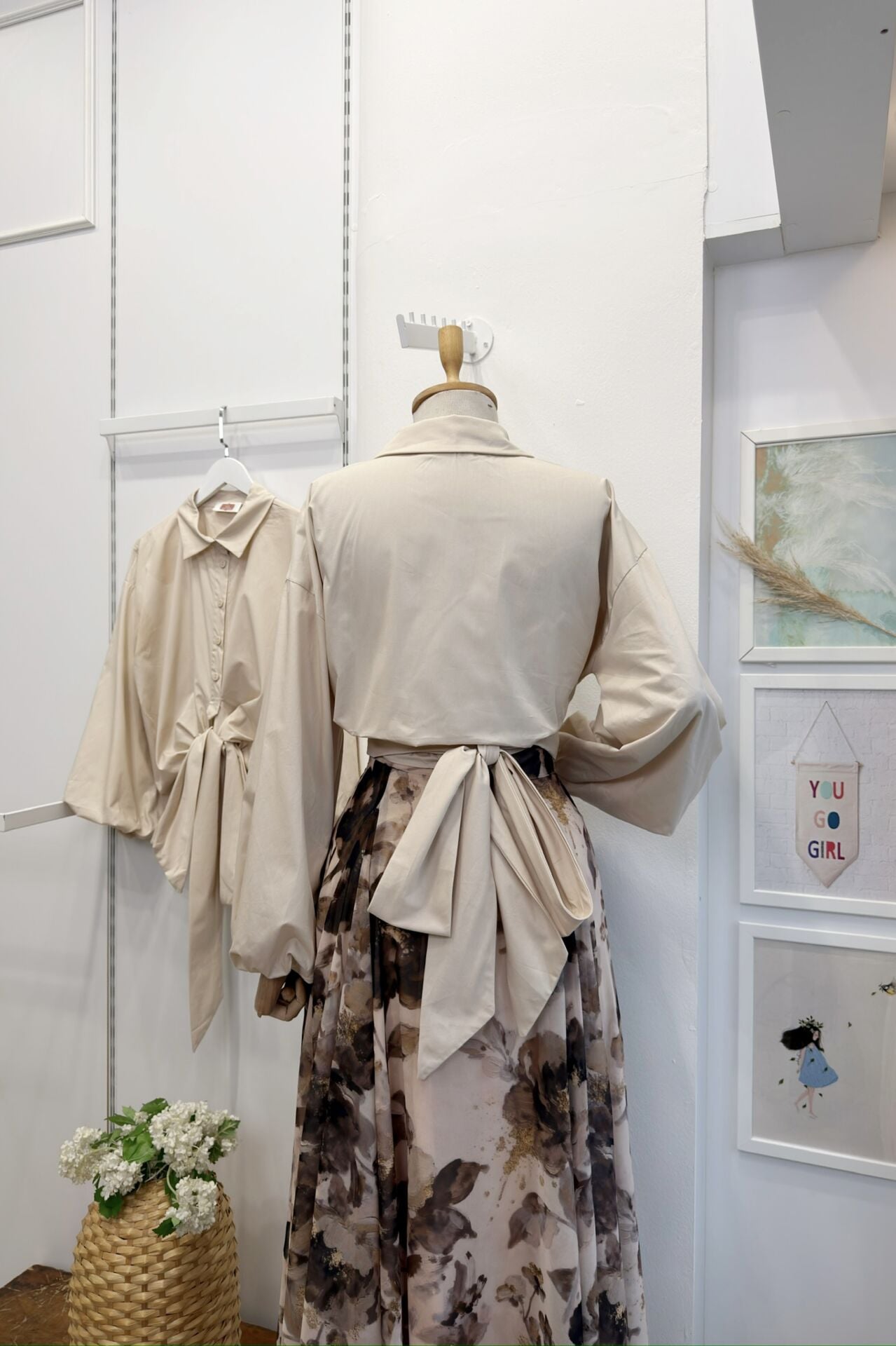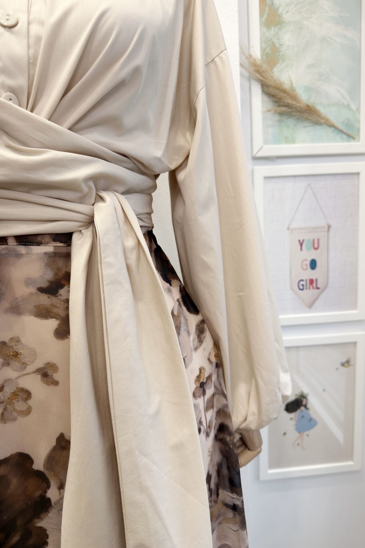Krem Bağlamalı Balon Kol Gömlek