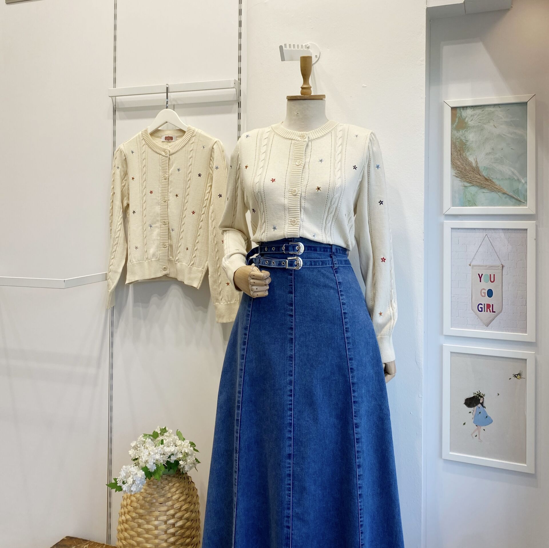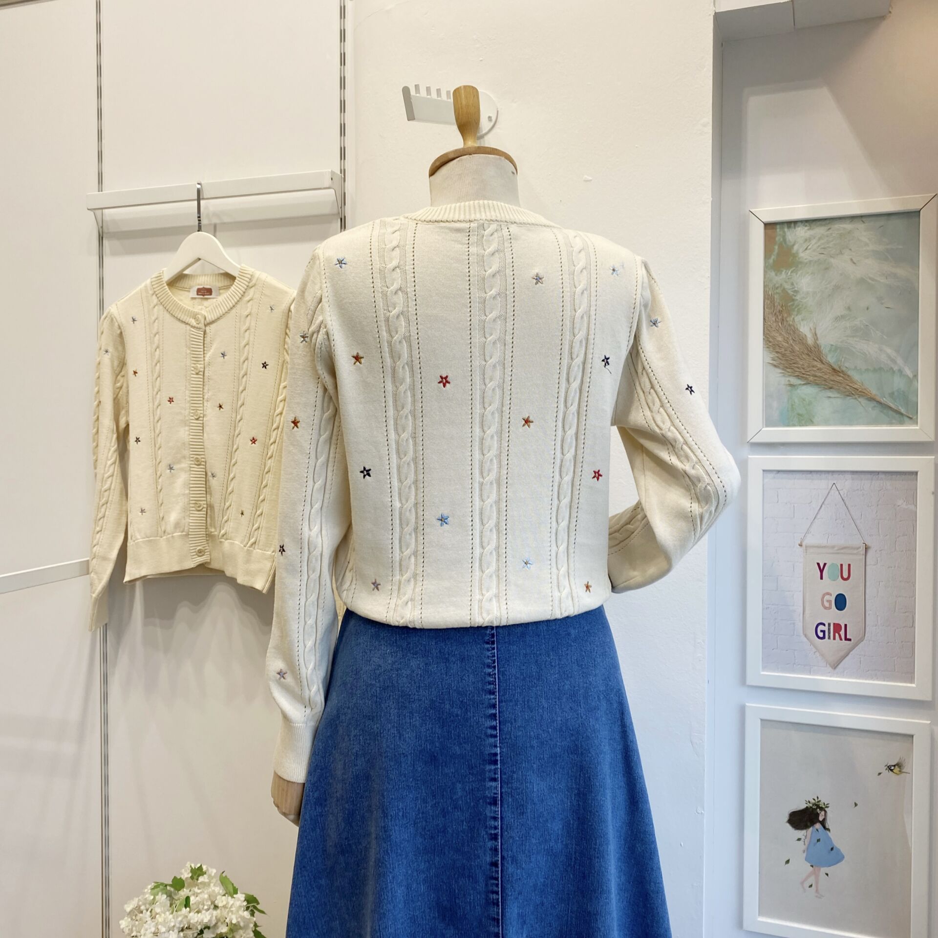 Krem Çiçek İşlemeli Auton Hırka