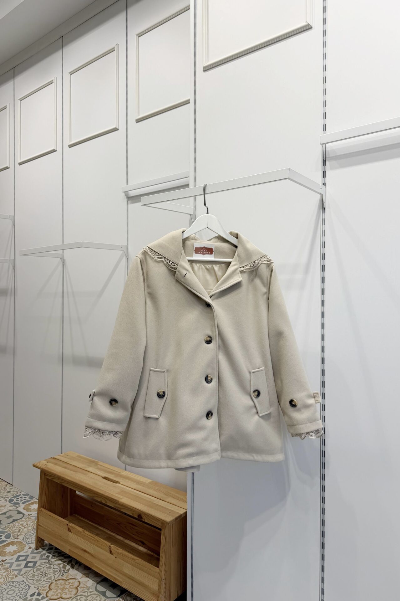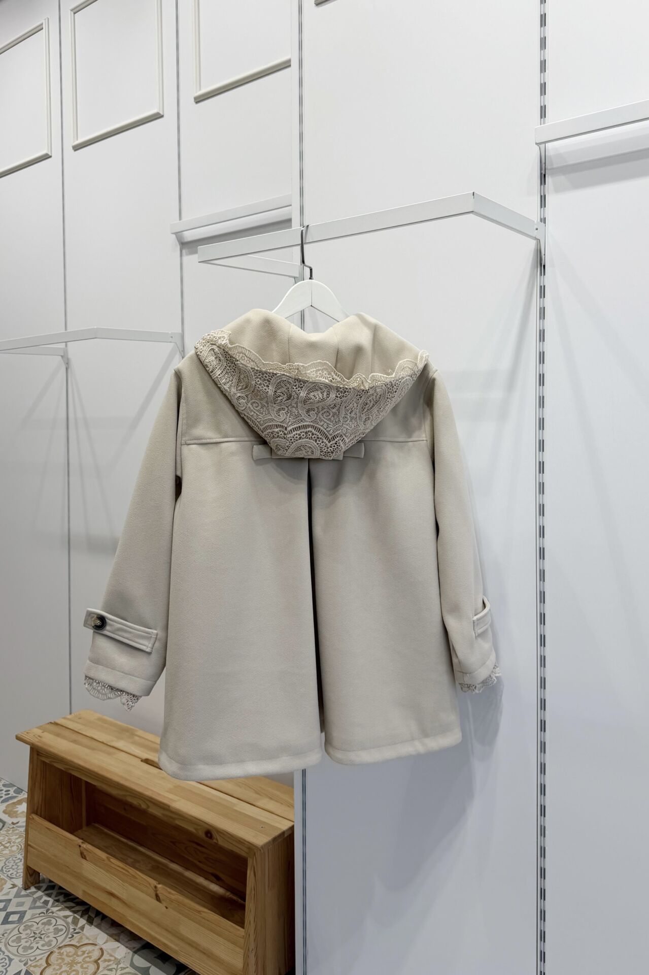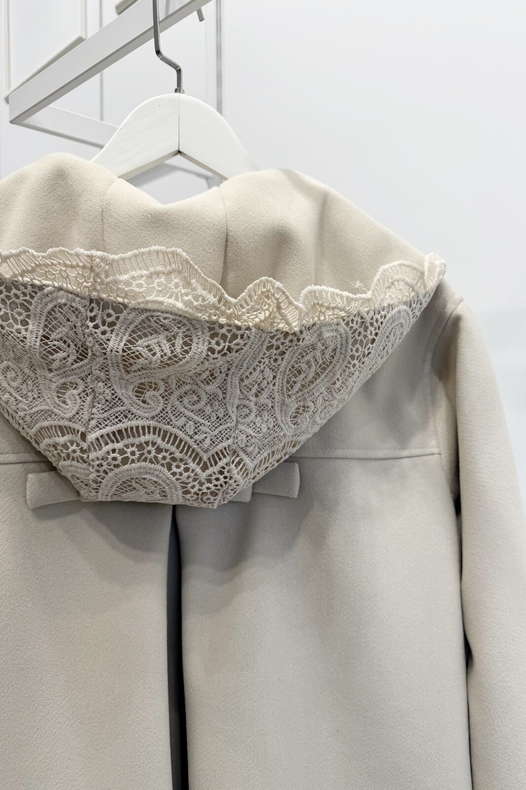 Krem Dantel Kapüşonlu Kısa Kaşe Kaban