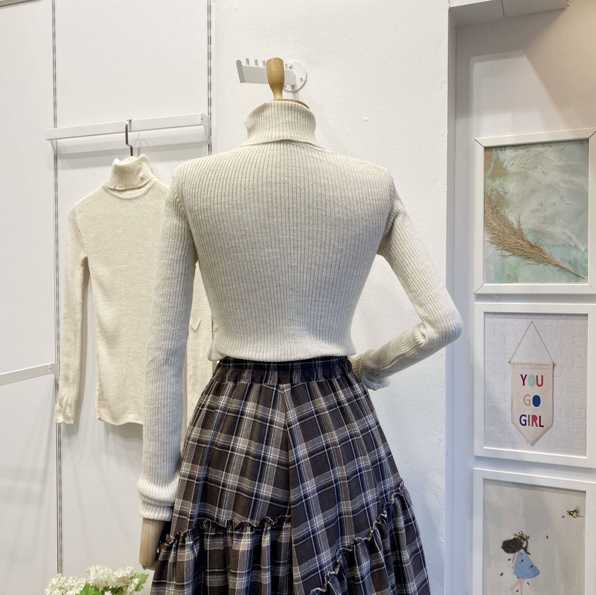 Krem Düz Yakalı Triko İçlik