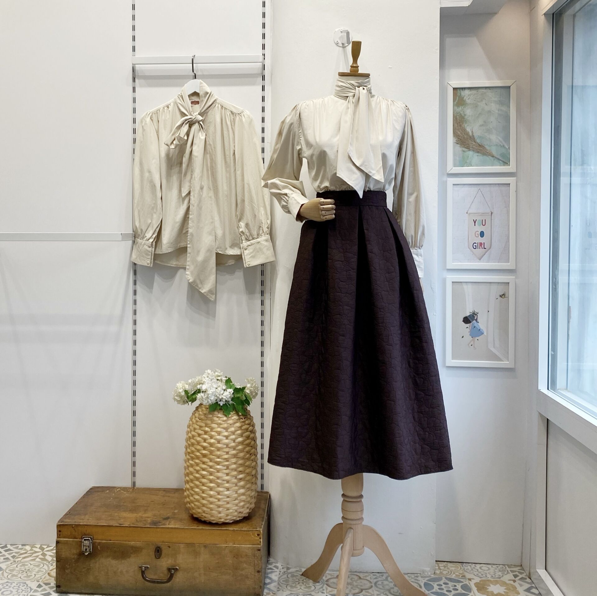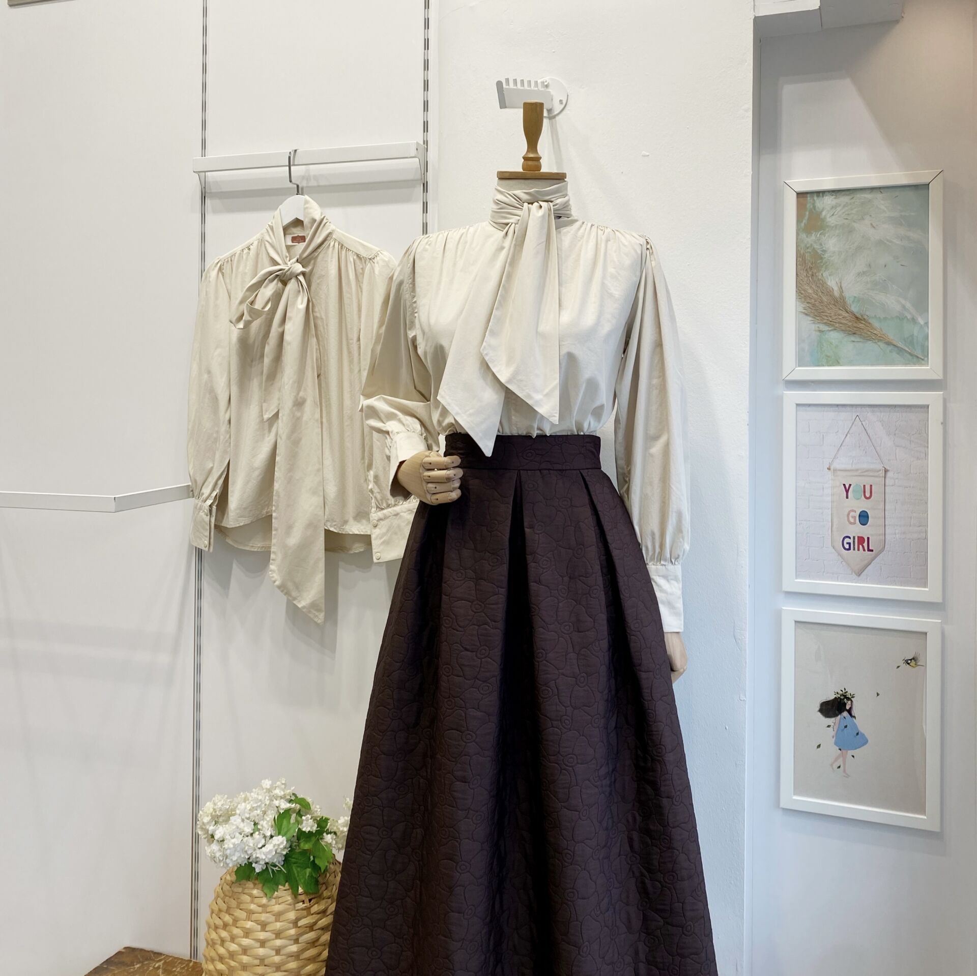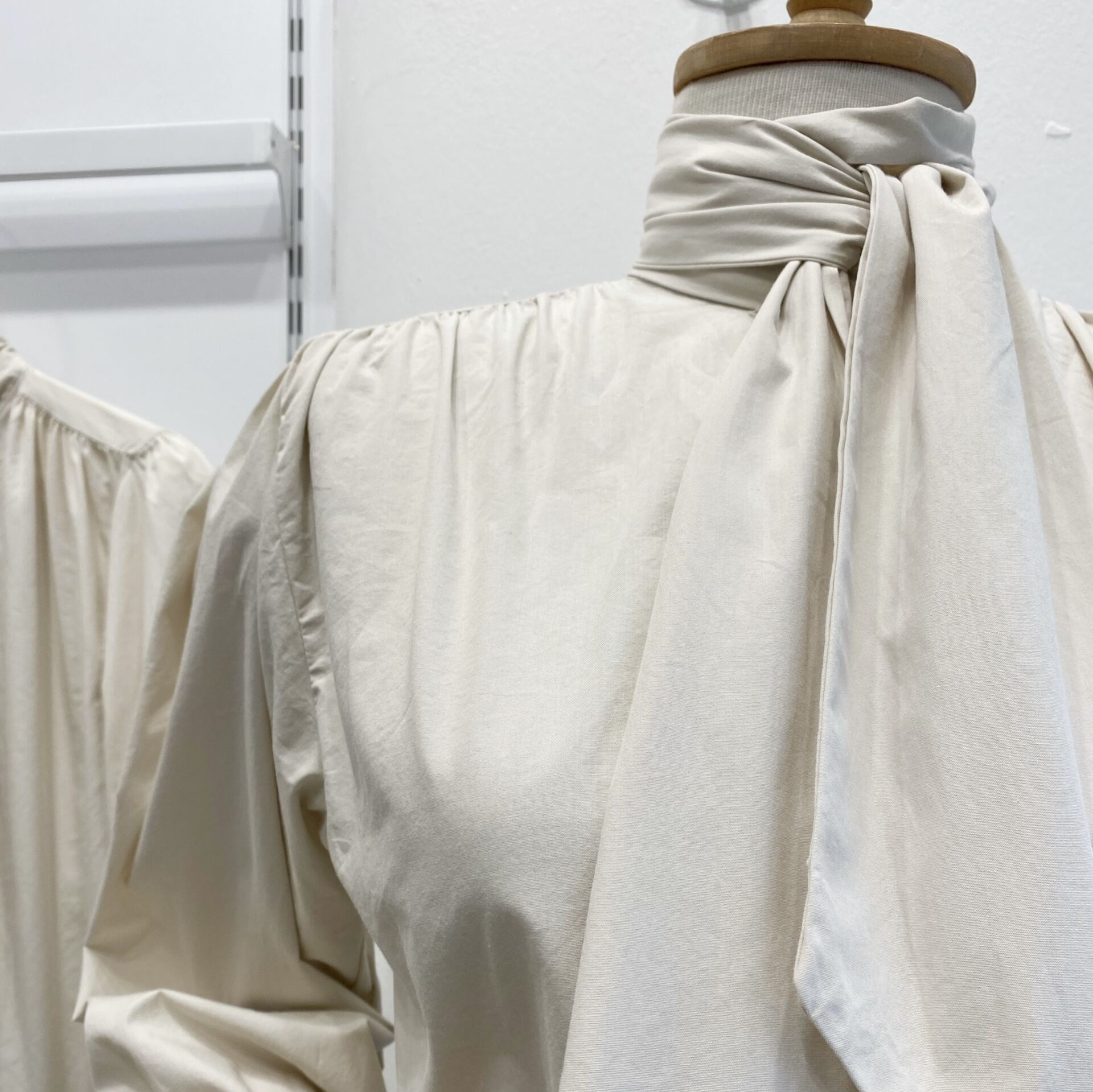 Krem Fular Detaylı Poplin Gömlek