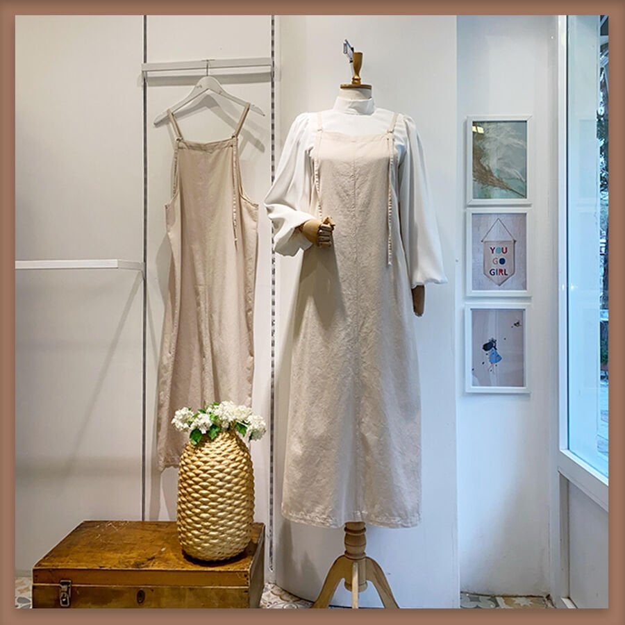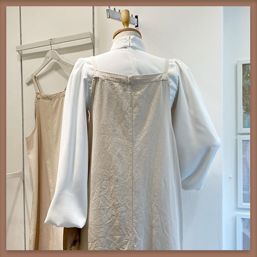 Krem İnce Gabardin Askı Detaylı Jile