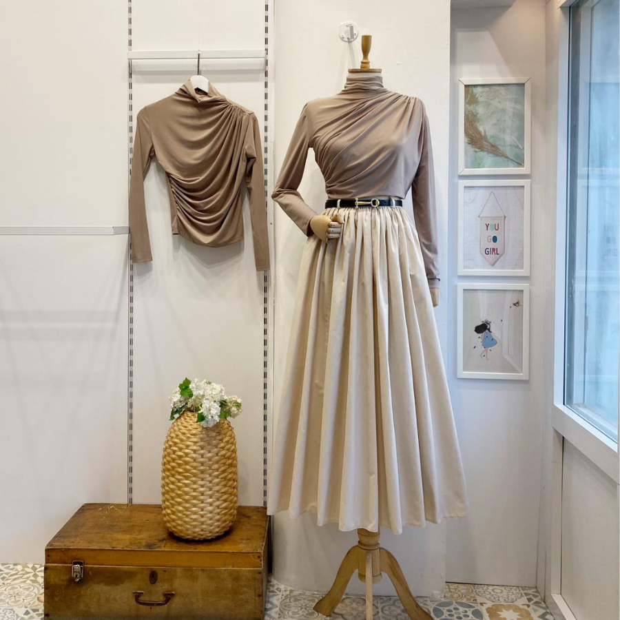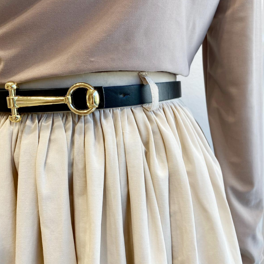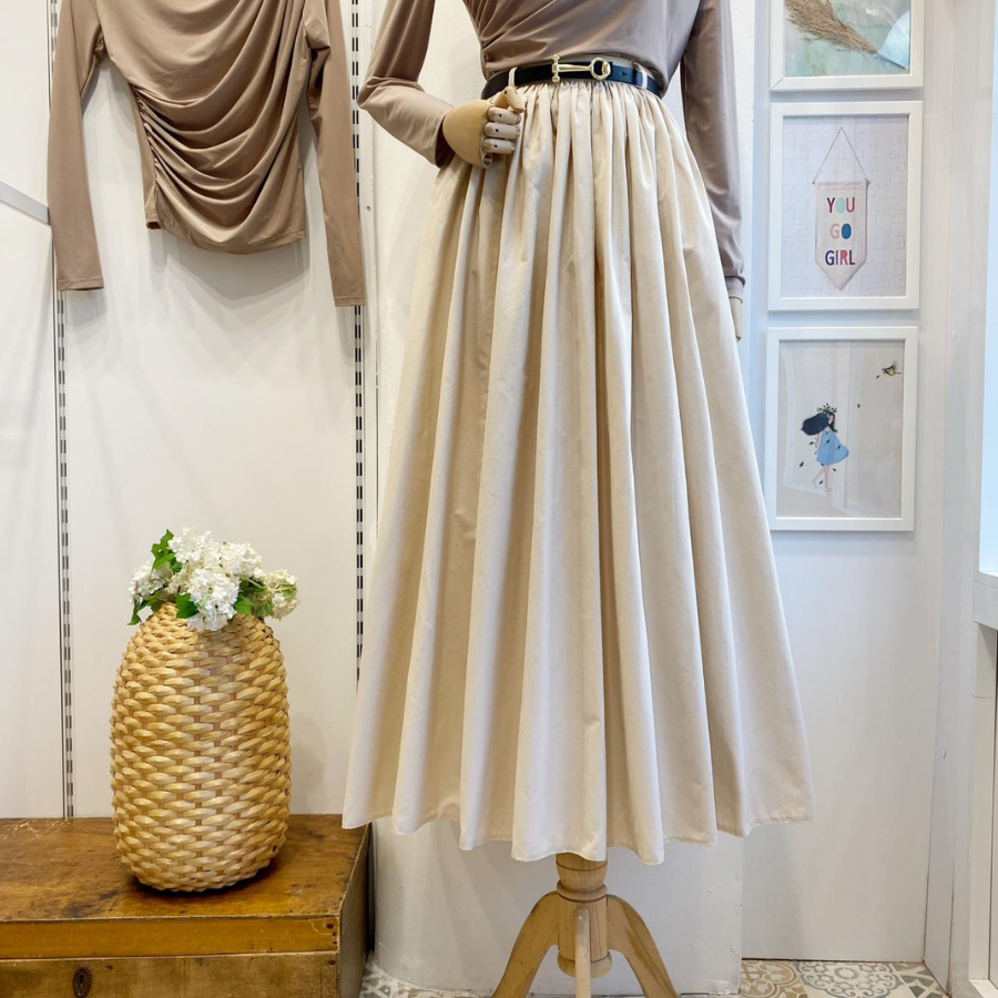 Krem Kemerli Sık Pileli Etek