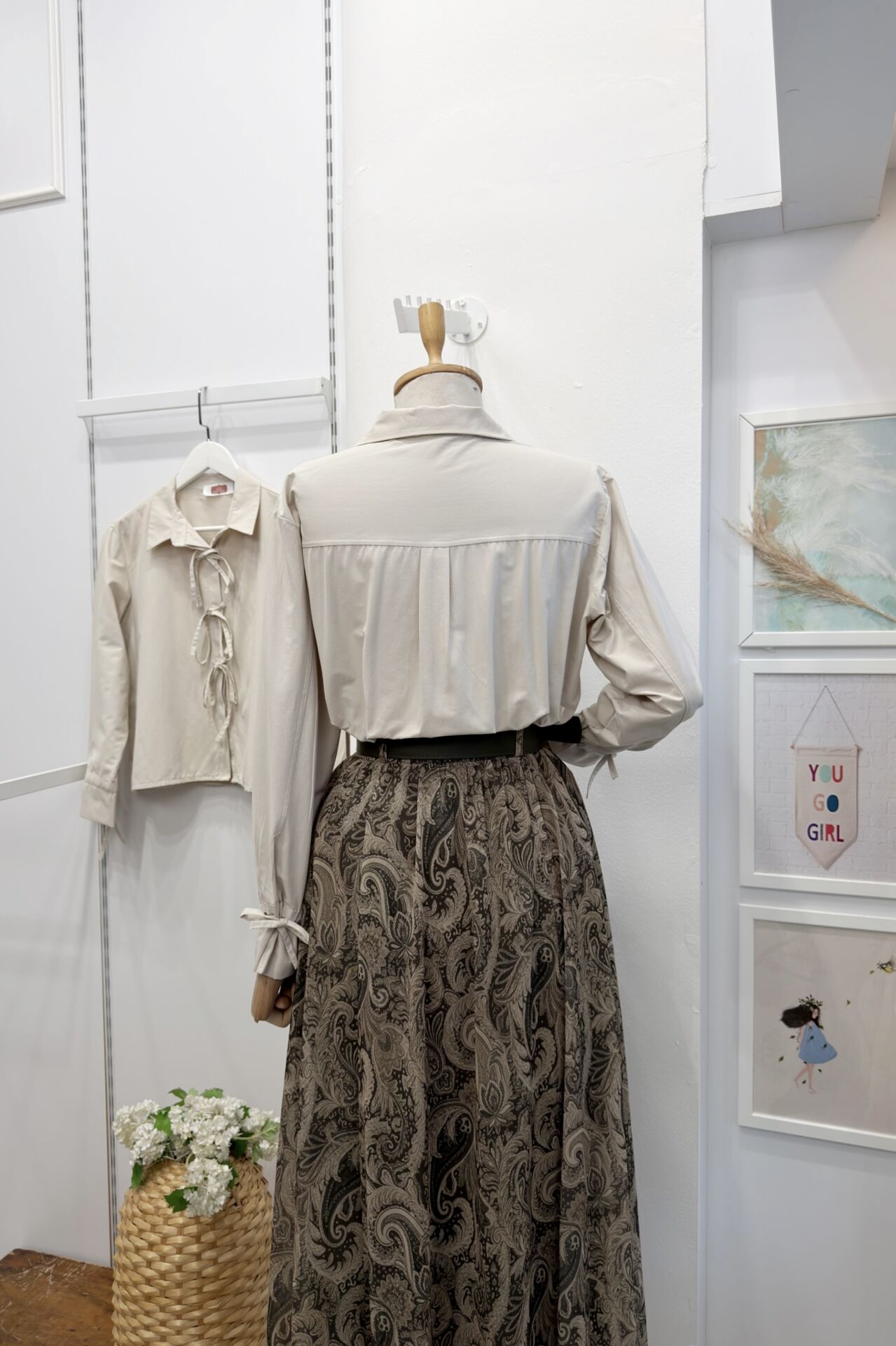 Krem Kurdele Detaylı Poplin Gömlek