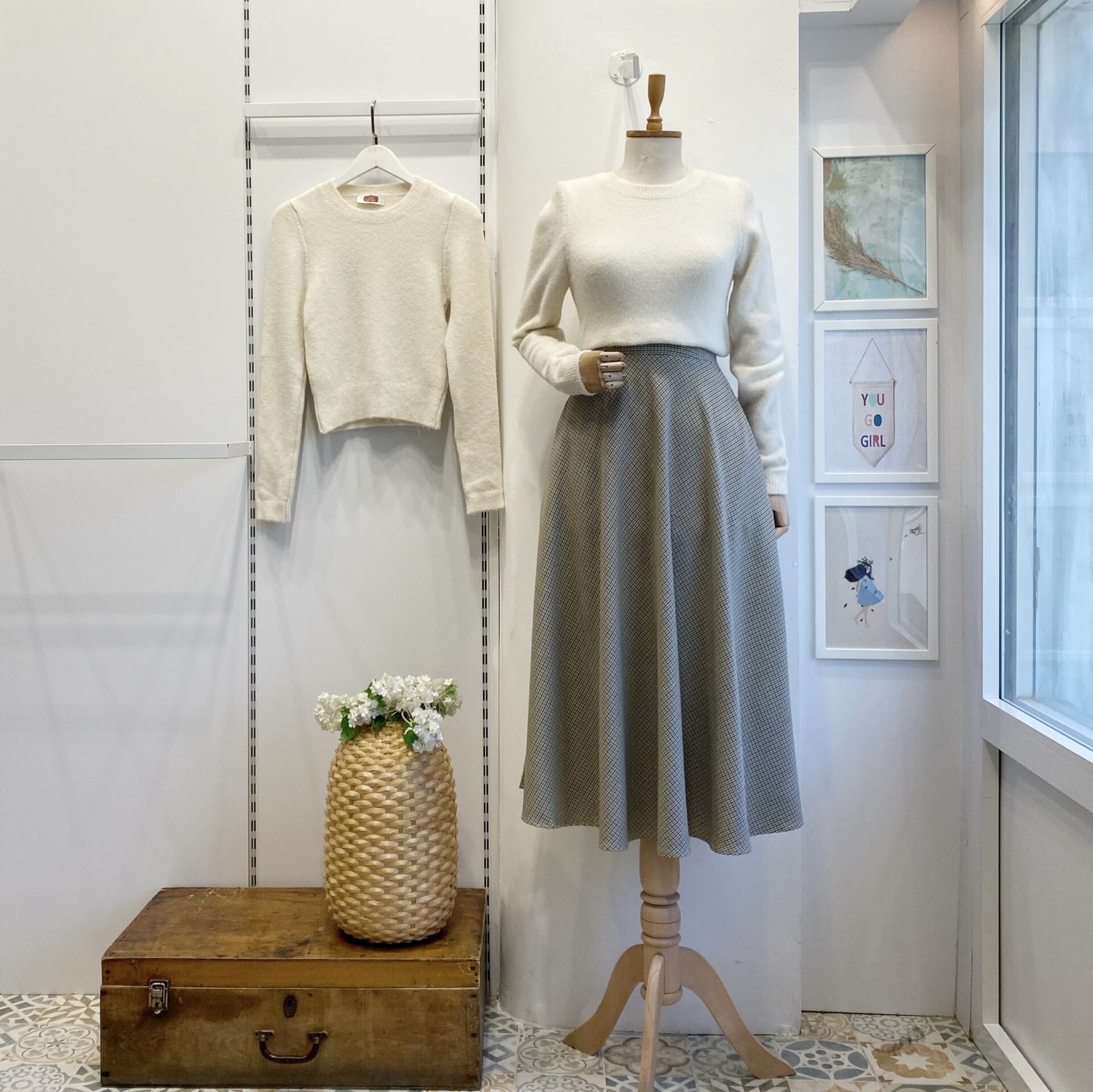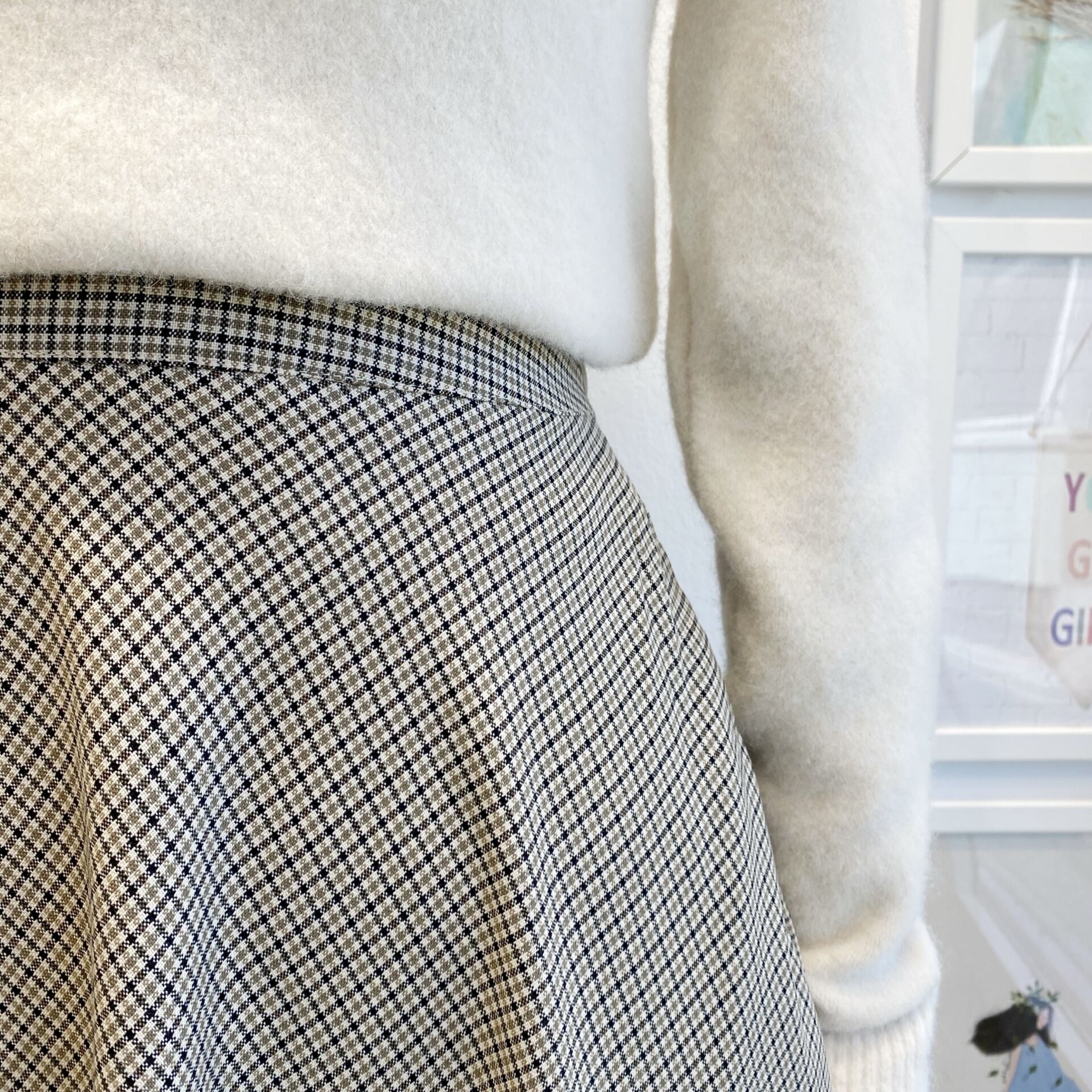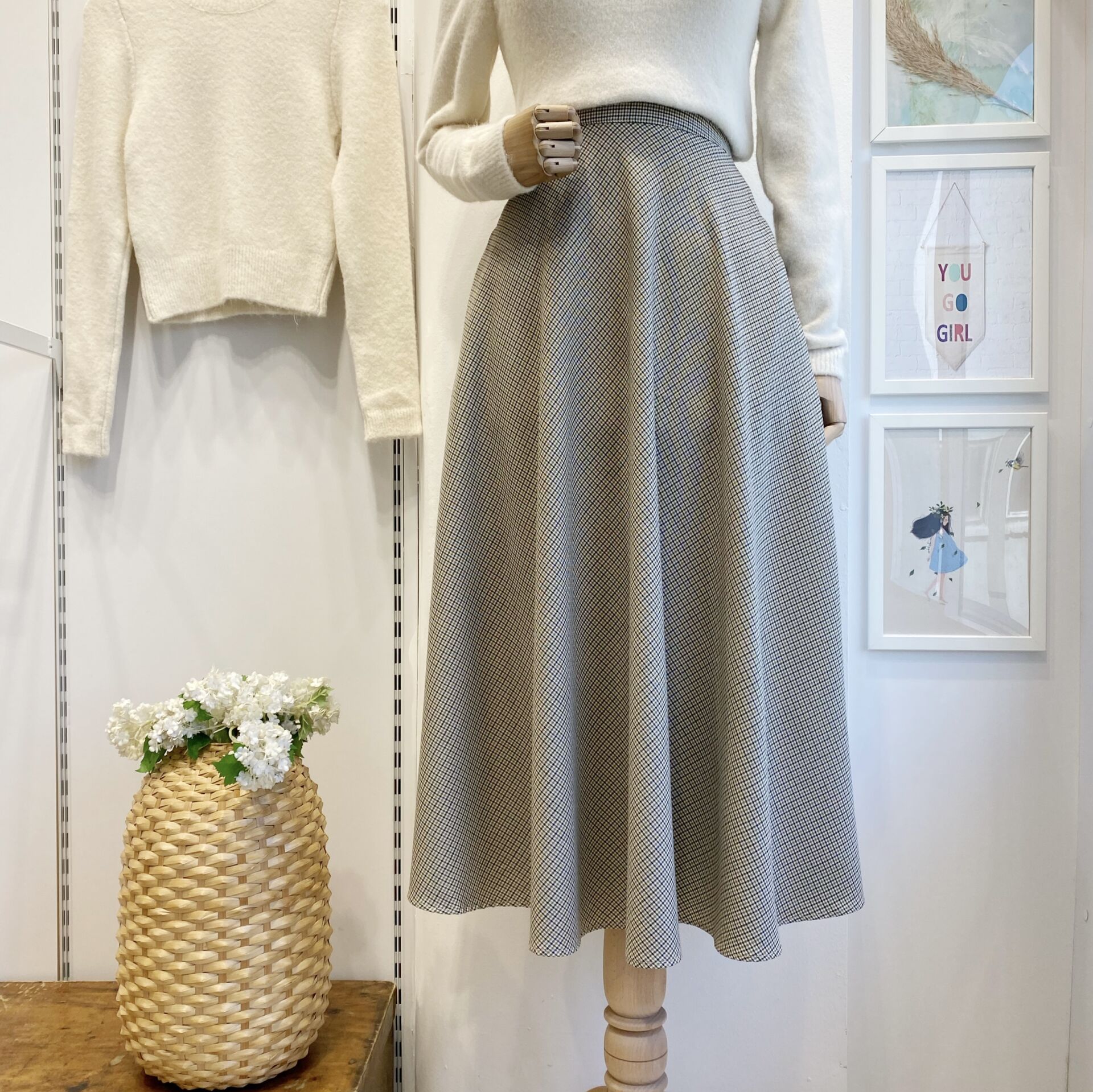 Krem Minik Ekoseli Kloş Model Etek