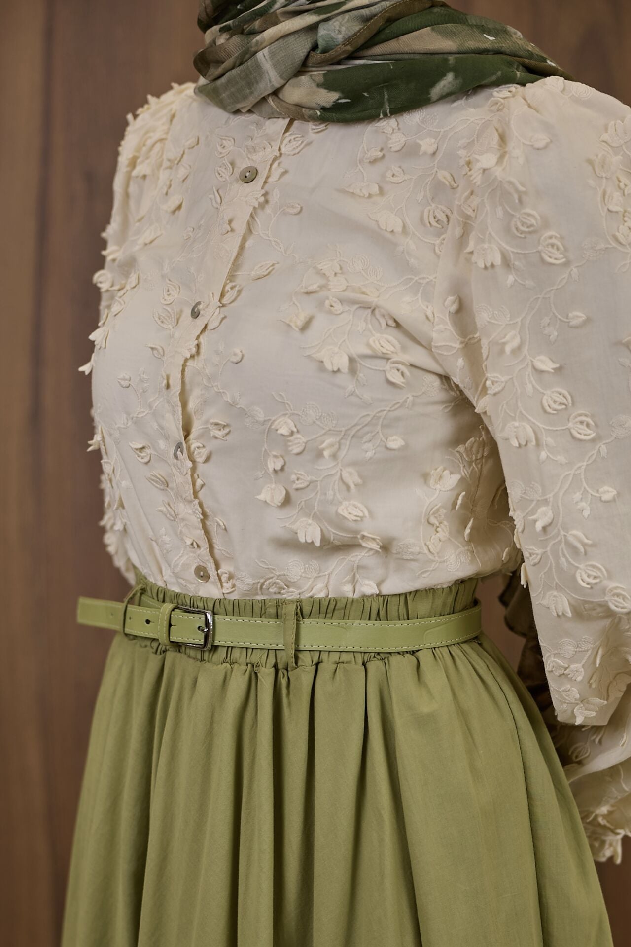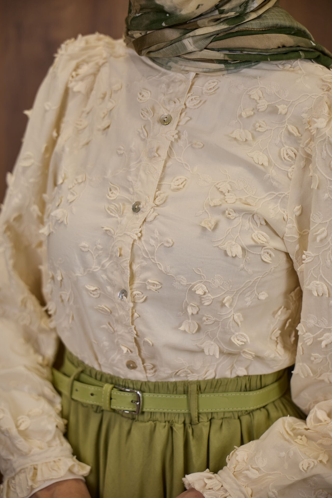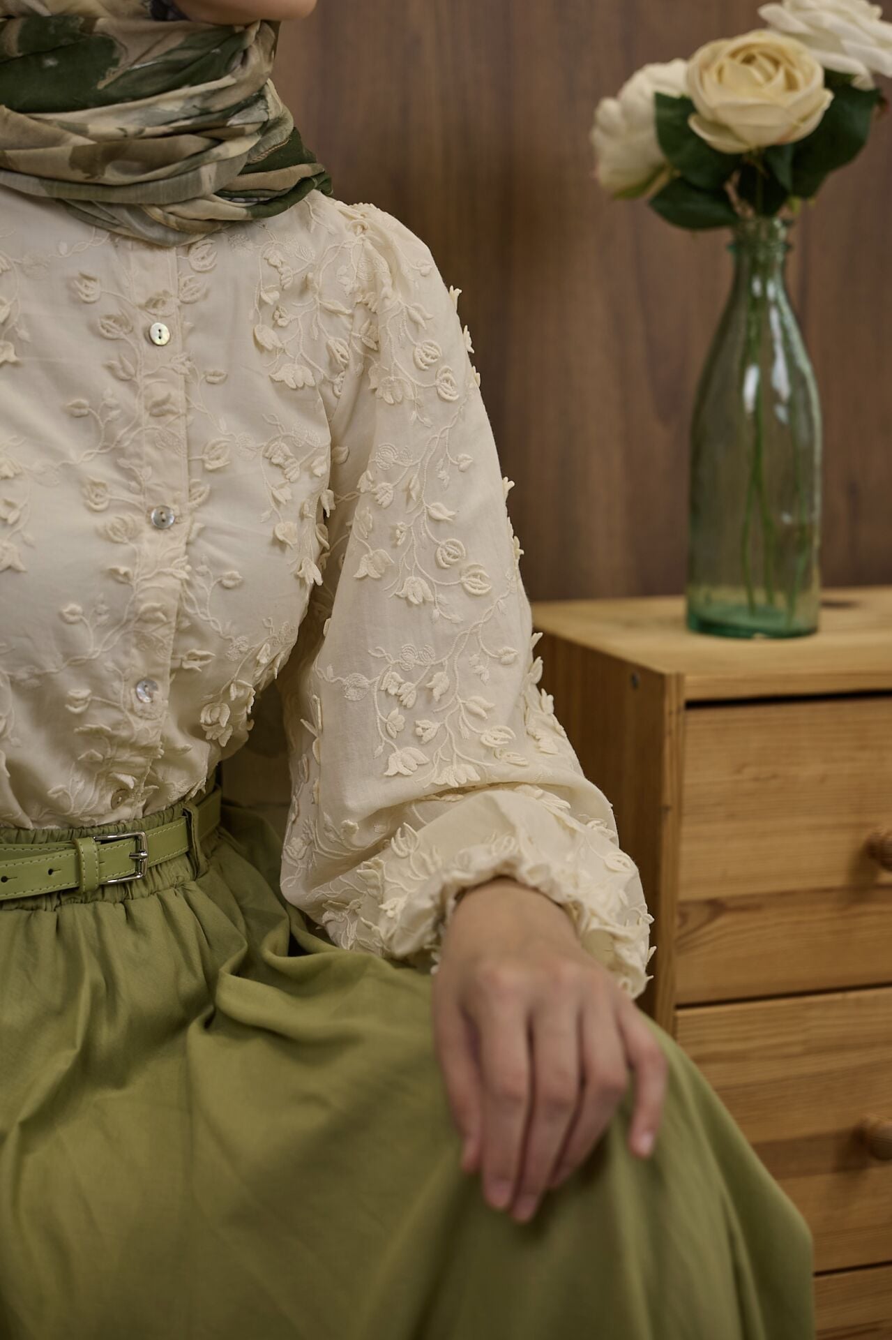 Viela Krem Üç Boyutlu Yapraklı Gömlek