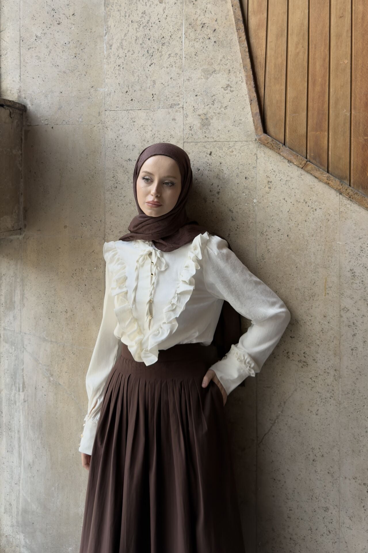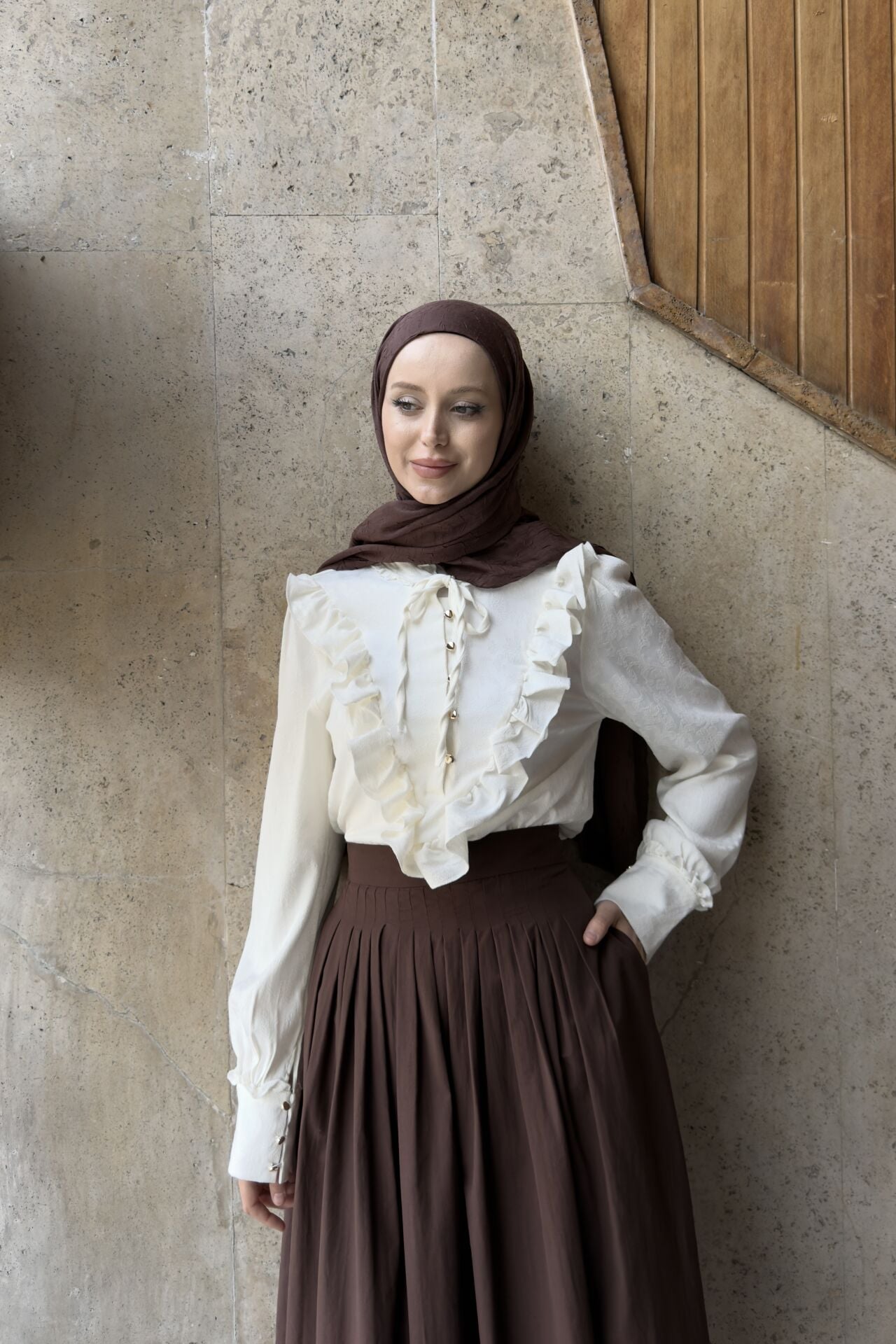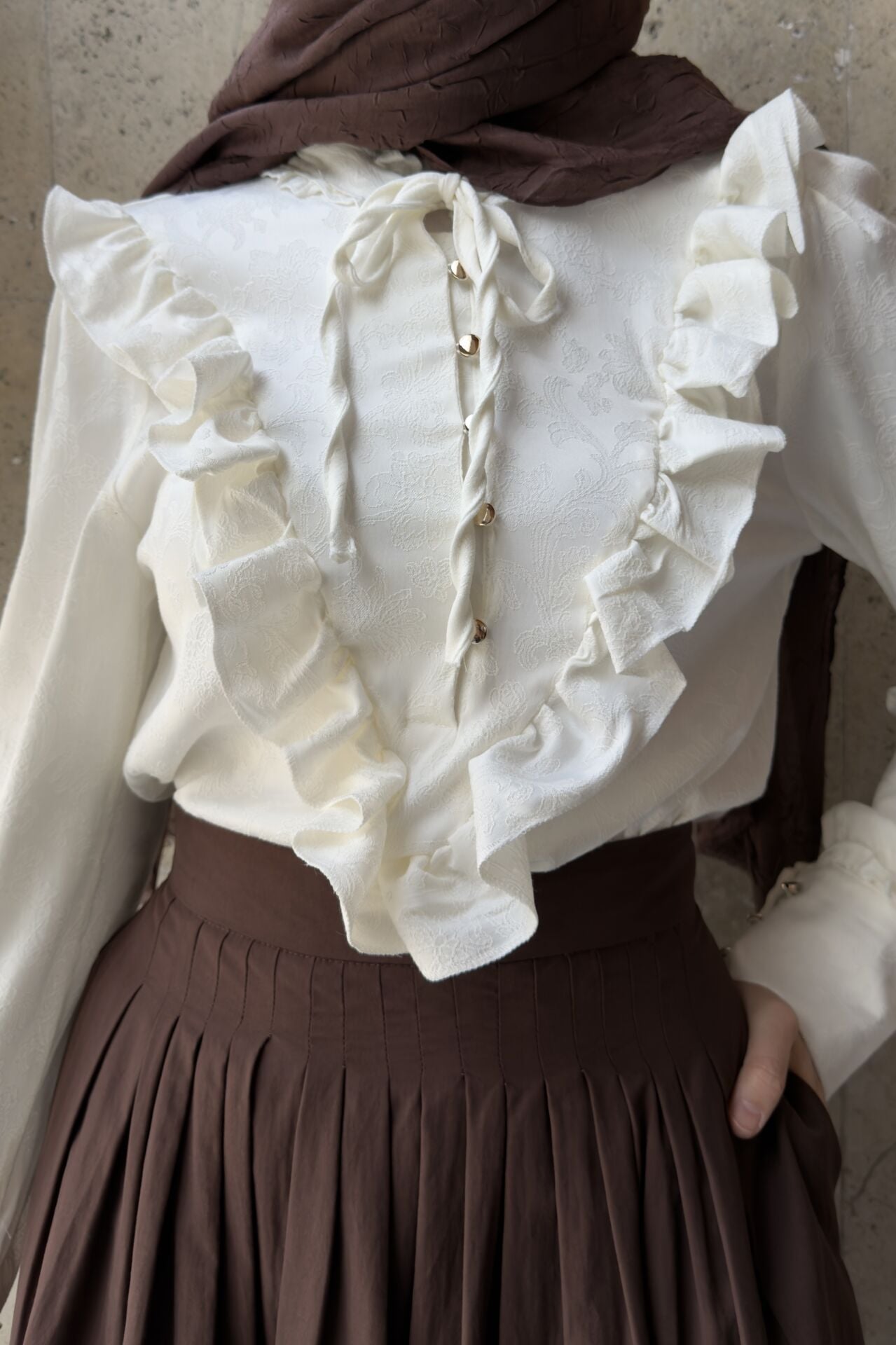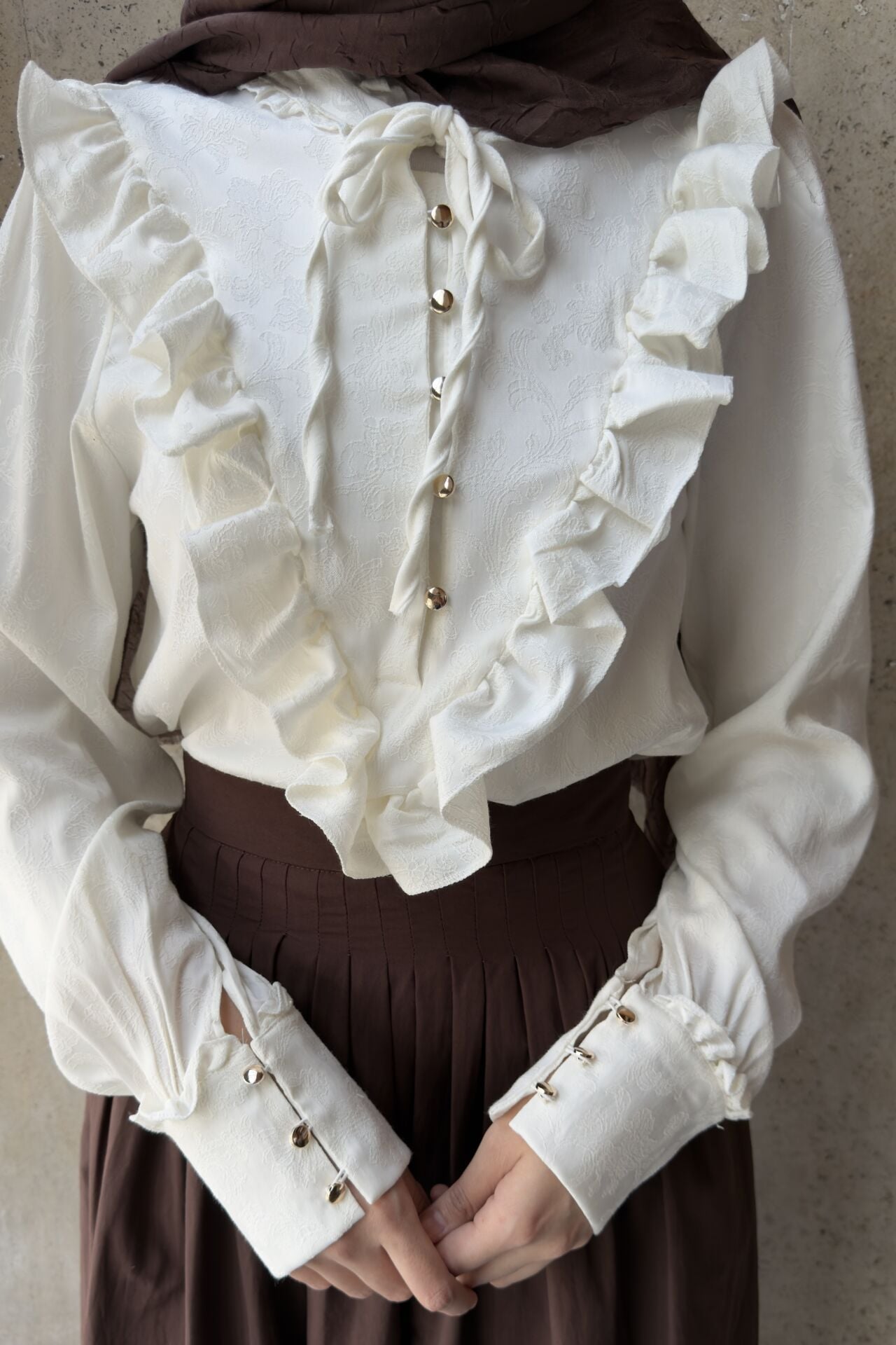Krem Volanlı Lucienne Saten Gömlek