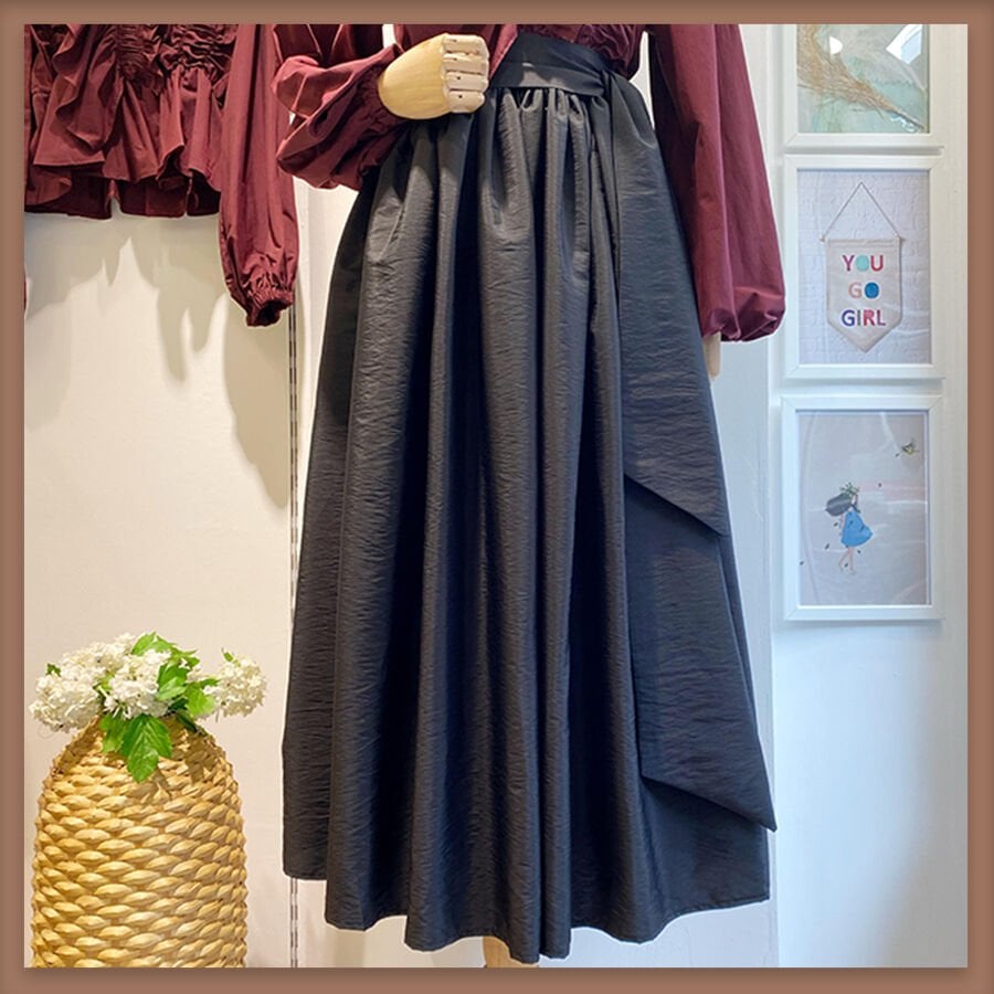 Kuşak detaylı sık piliseli paraşüt kumaş siyah etek
