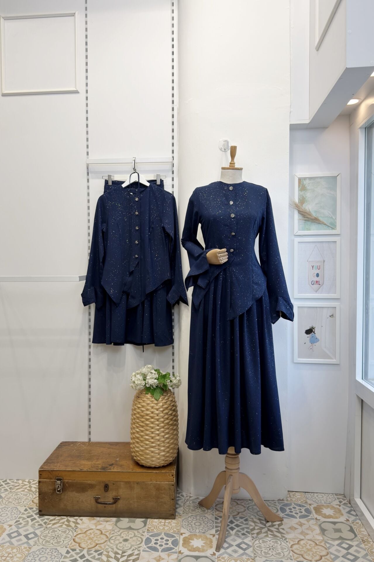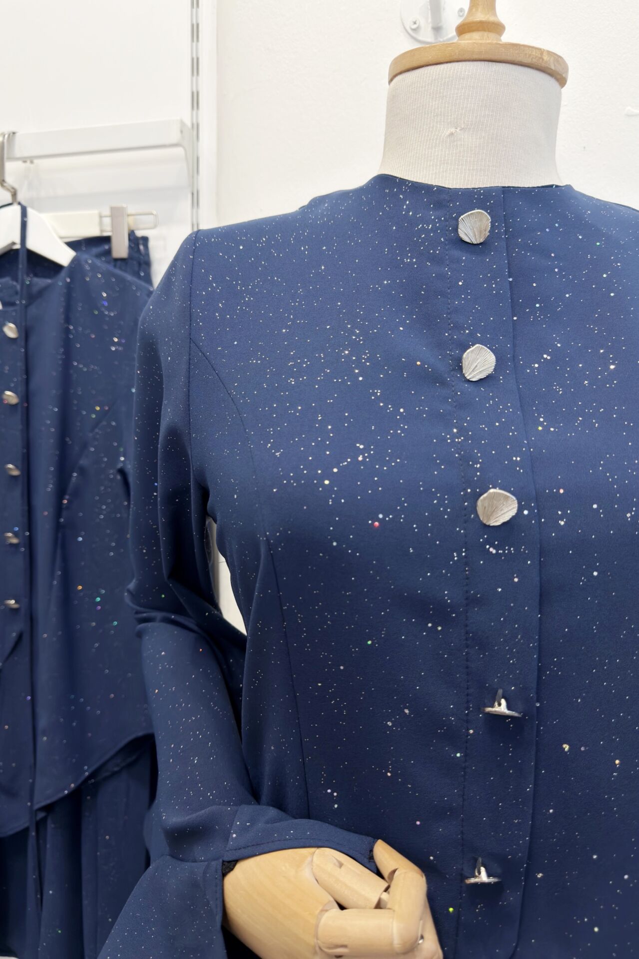 Lacivert Asimetrik Kesim Sim Detaylı Takım